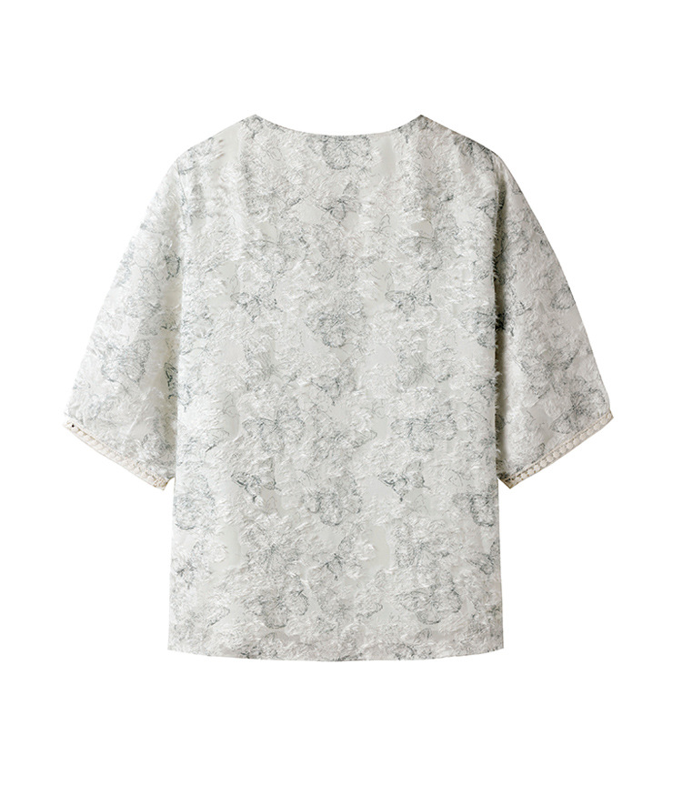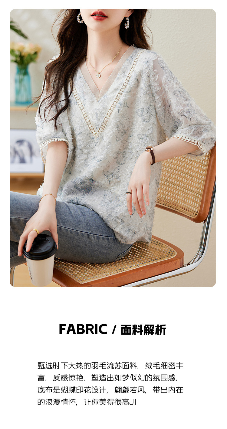 실제 샷 스팟 기질 v 넥 컷 플라워 프린트 쉬폰 반팔 셔츠 여성 여름 2025 새로운 루즈 대형 탑