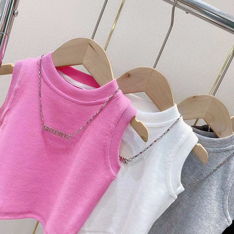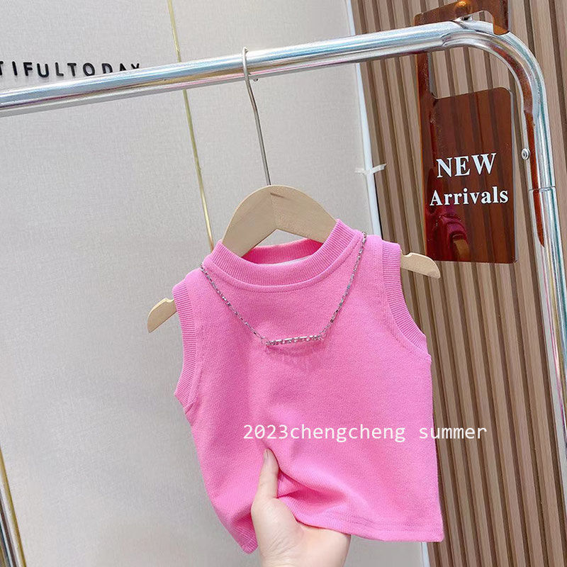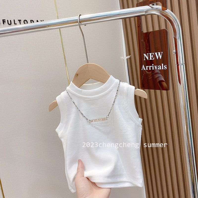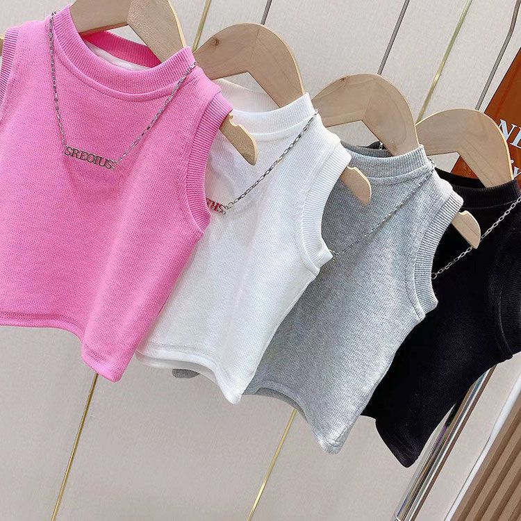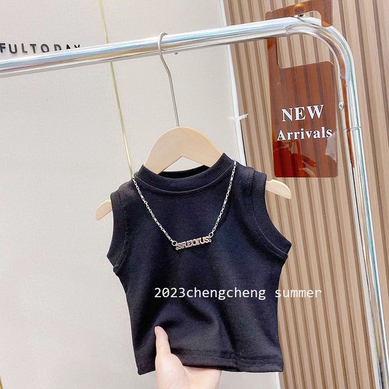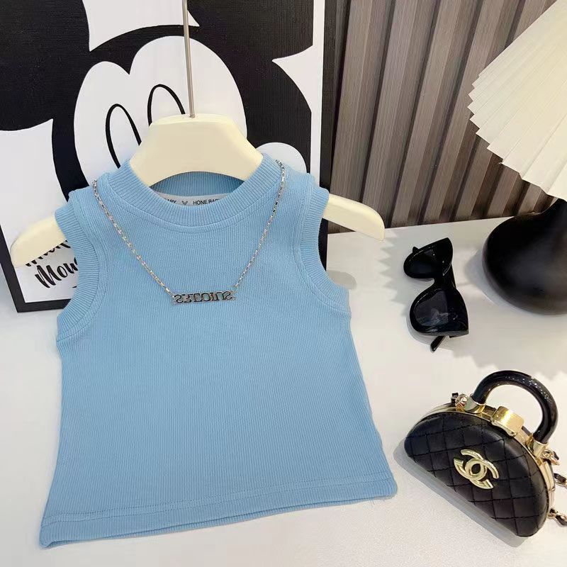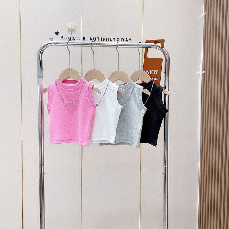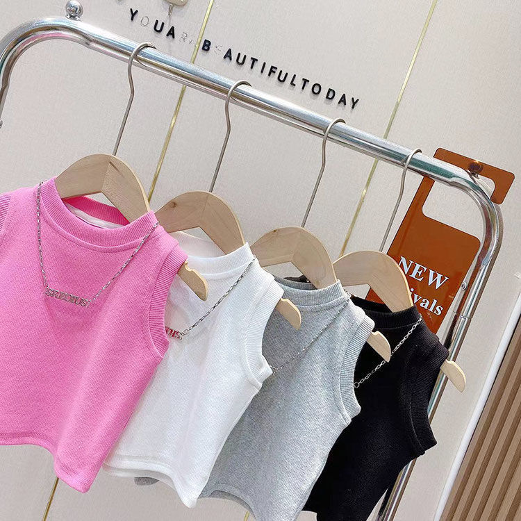 여름 소녀 조끼 아기의 서양식 어린이 맞춤형 트렌디 브랜드 한국 목걸이 단색 인터넷 기념 유행 민소매 탑스토어 가기
