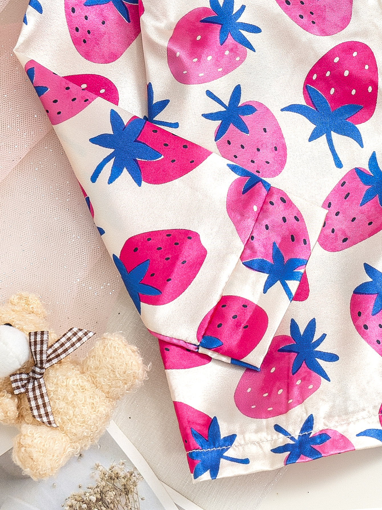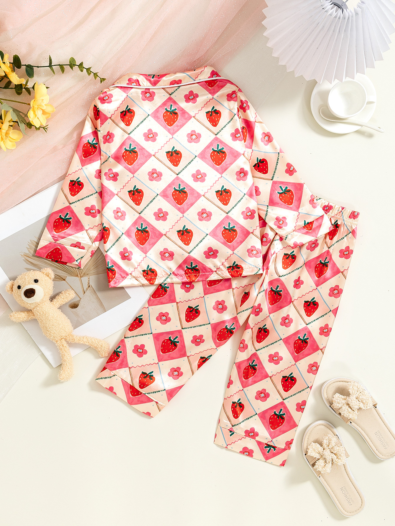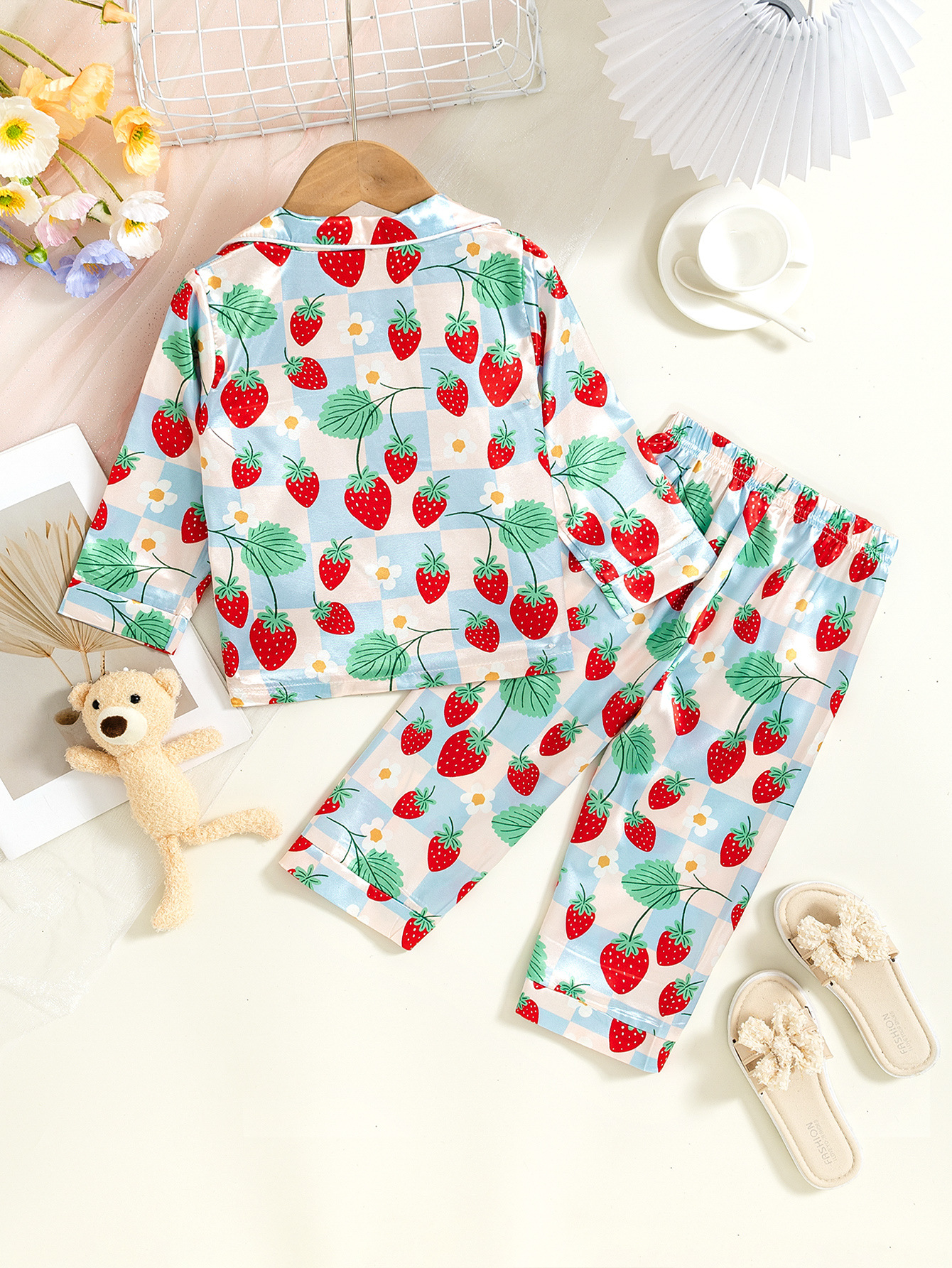 국경 간 소녀 잠옷 봄과 가을 아기 딸기 인쇄 긴팔 카디건 홈 의류 세트 어린이 잠옷스토어 가기