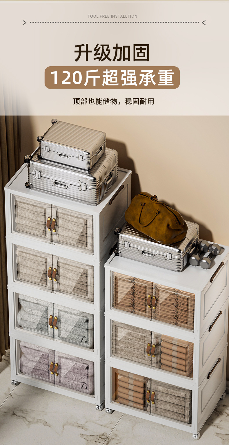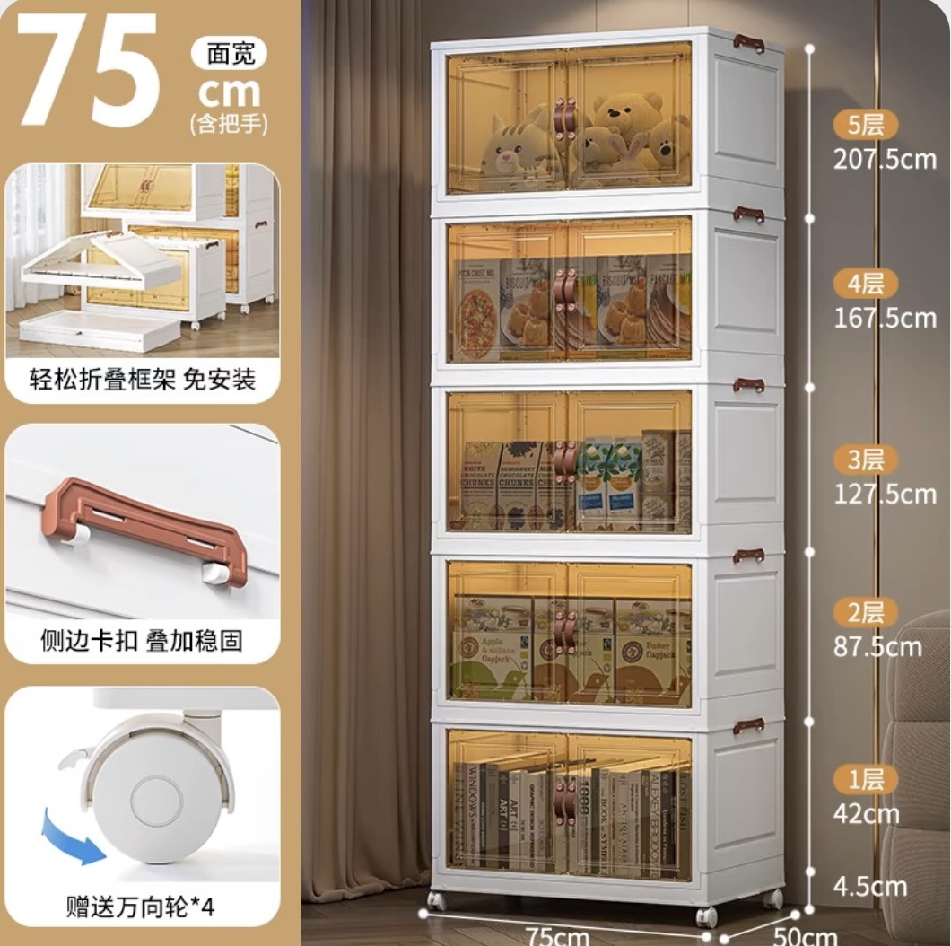 접이식 상자, 다층으로 쌓을 수 있고 대용량, 바퀴 달린 양문형 간식 보관함, 이동식 보관함, 대용량 수납 가능스토어 가기