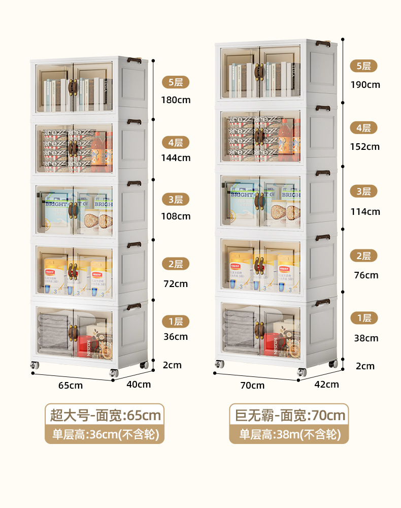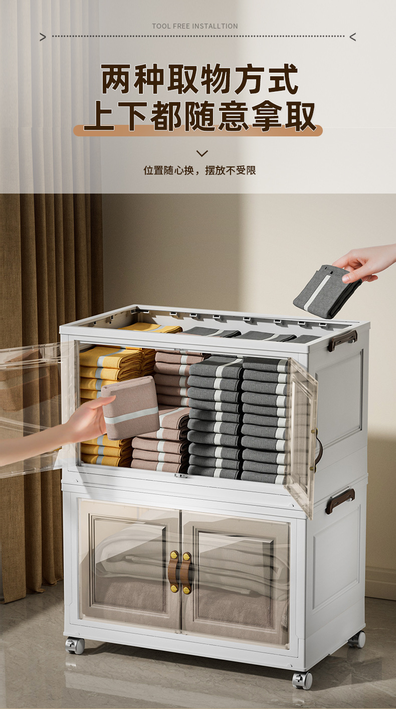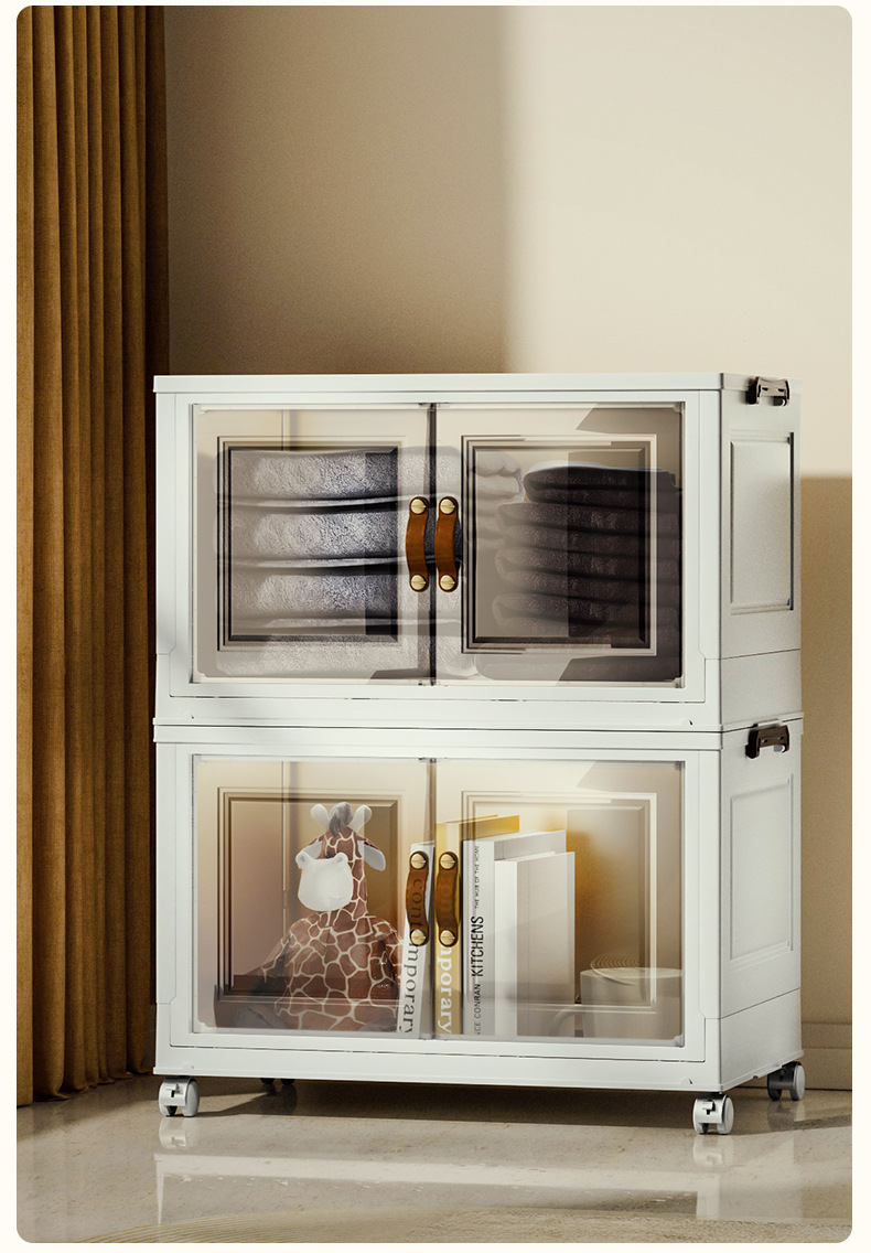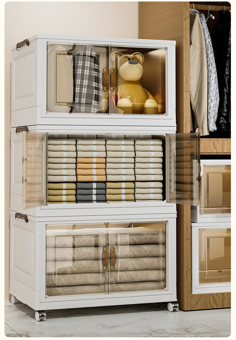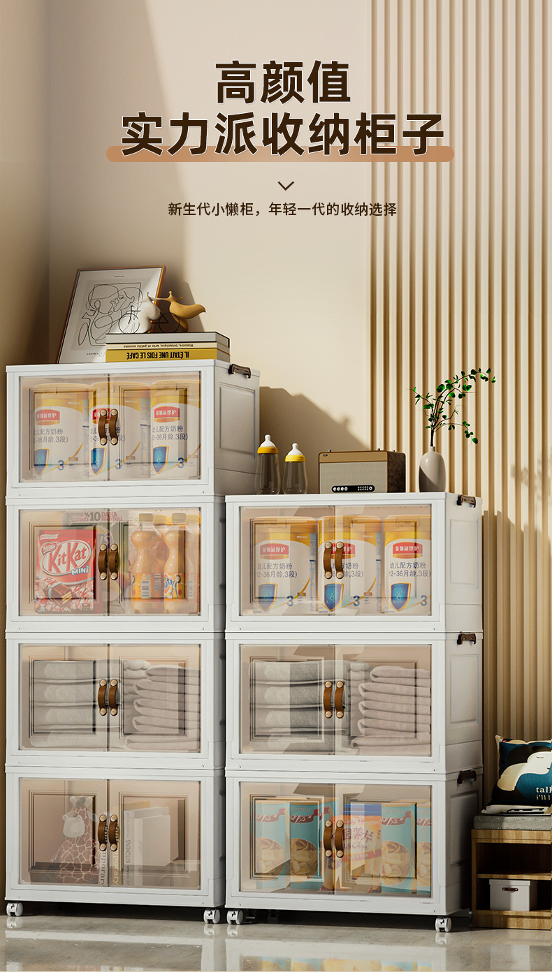 접이식 상자, 다층으로 쌓을 수 있고 대용량, 바퀴 달린 양문형 간식 보관함, 이동식 보관함, 대용량 수납 가능