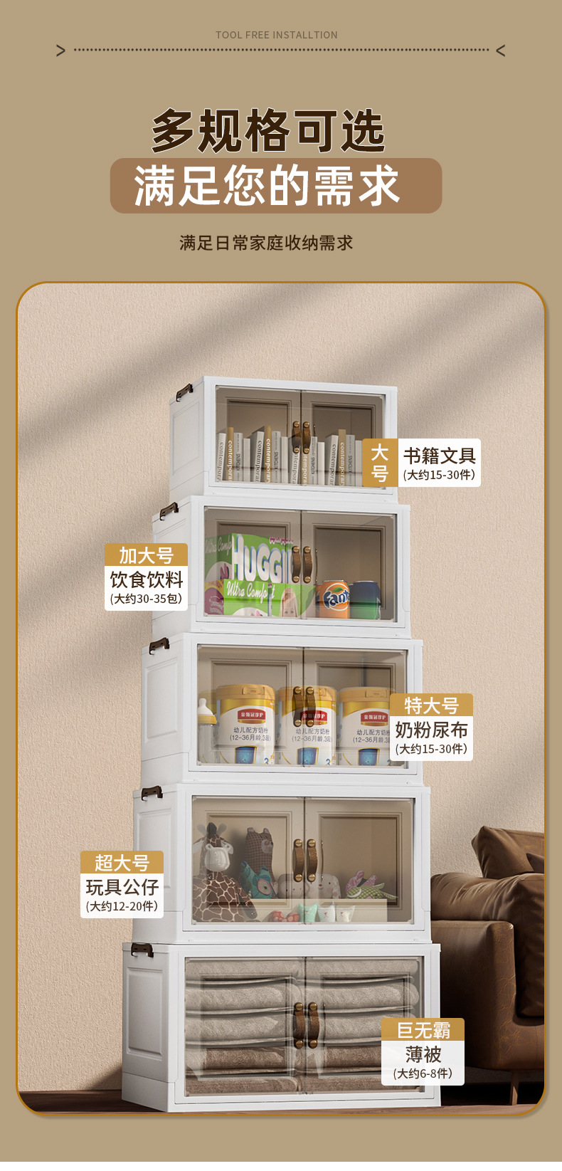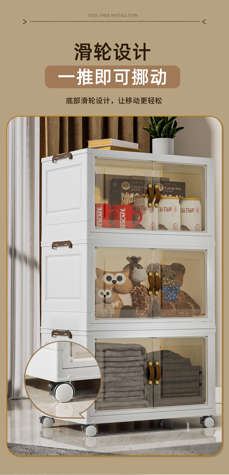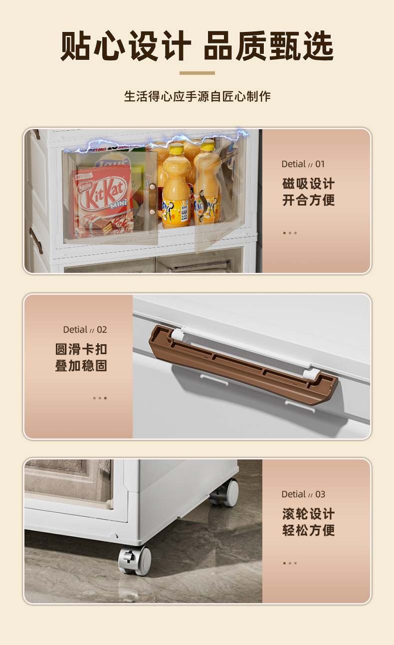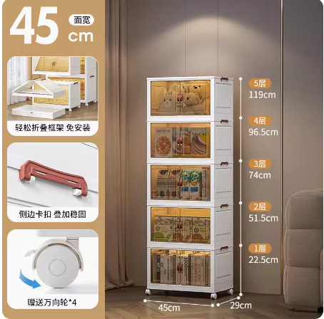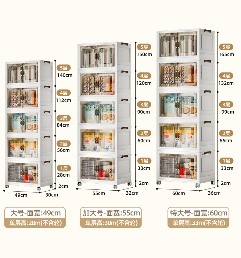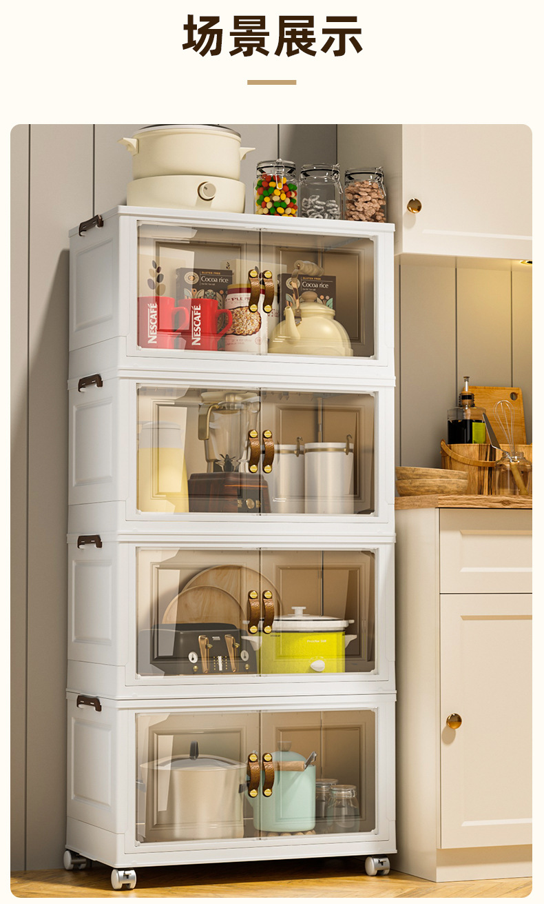 접이식 상자, 다층으로 쌓을 수 있고 대용량, 바퀴 달린 양문형 간식 보관함, 이동식 보관함, 대용량 수납 가능