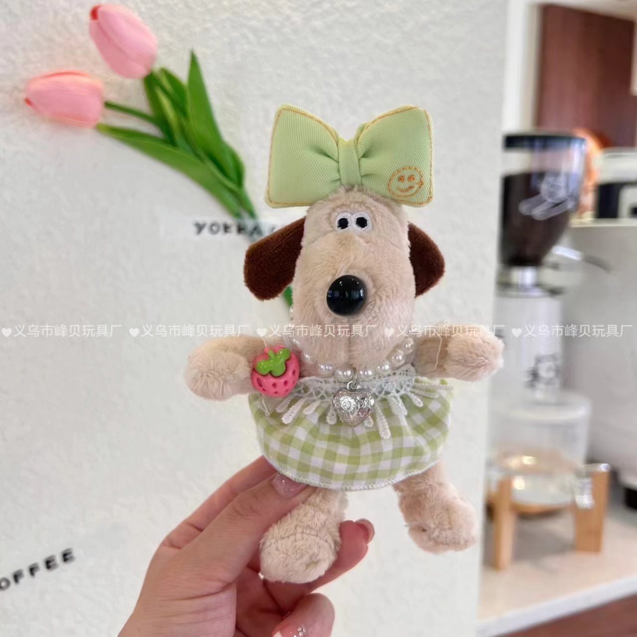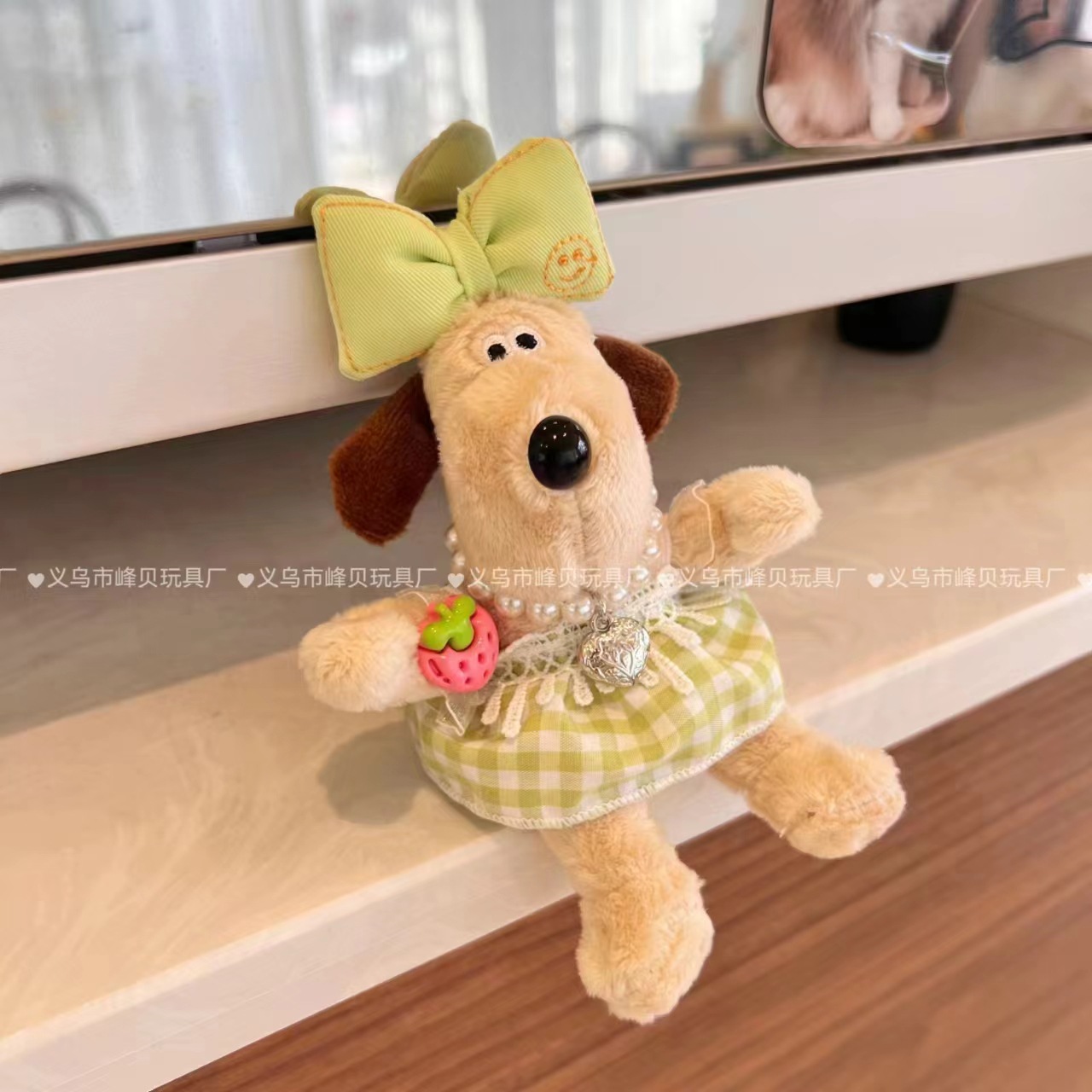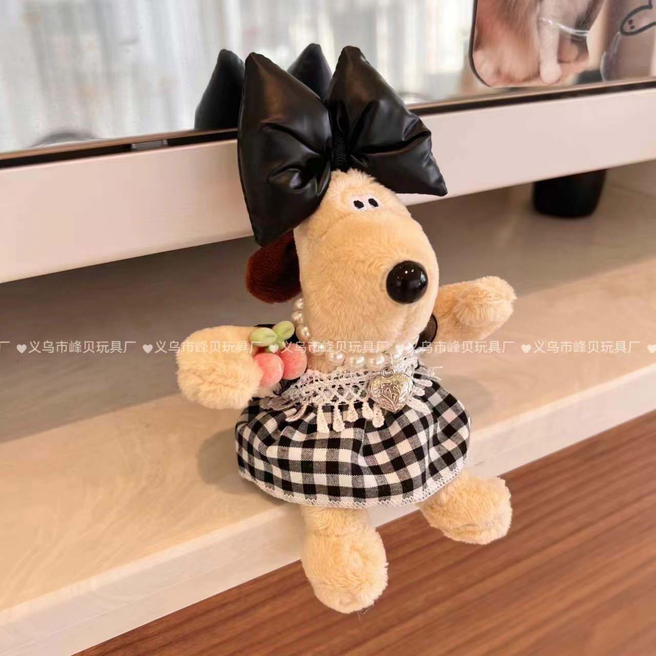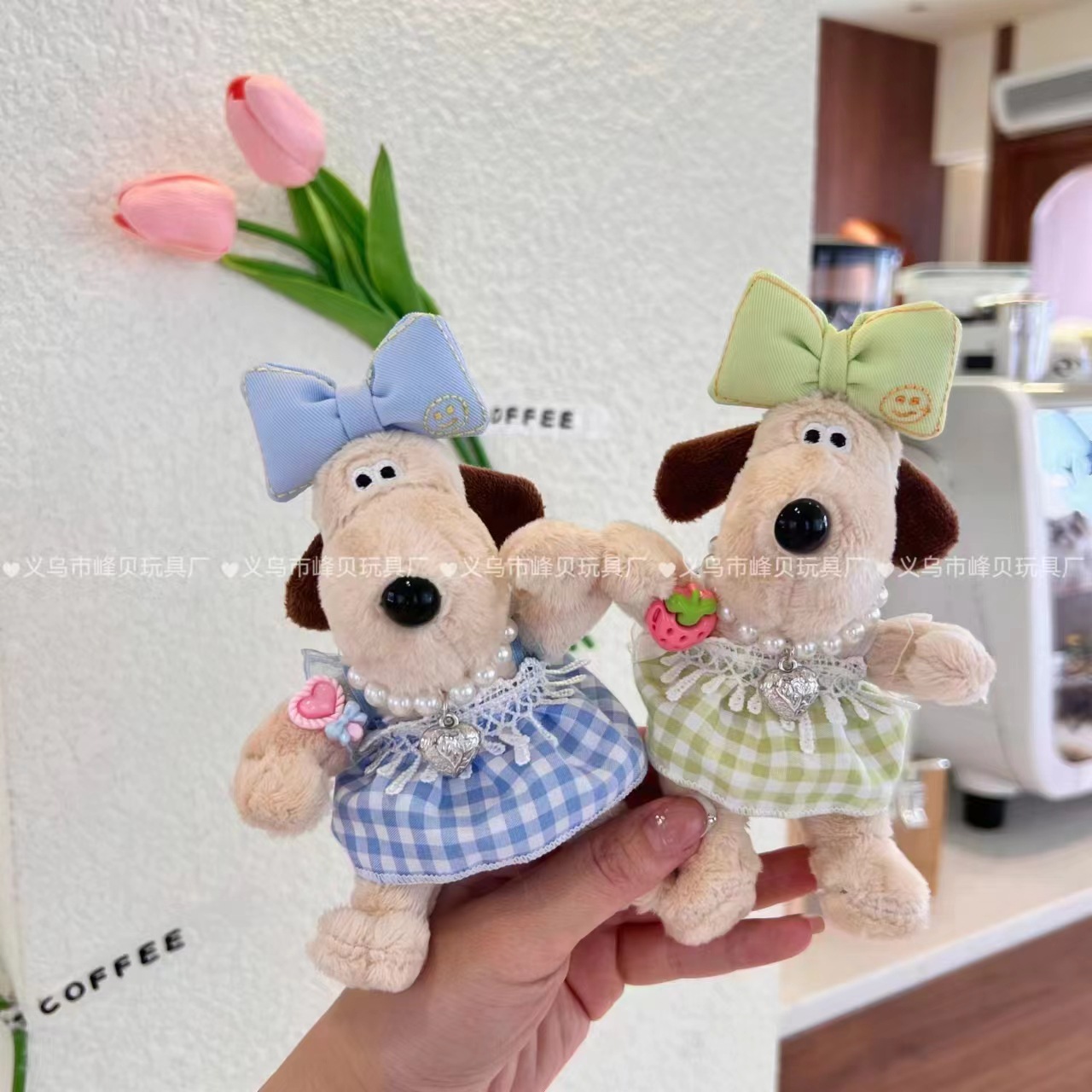 새로운 핸드독 귀여운 격자 무늬 스커트 활 키 체인 펜던트 휴대 전화 백 클립 크로스 바디 로프 그물 레드 스타일