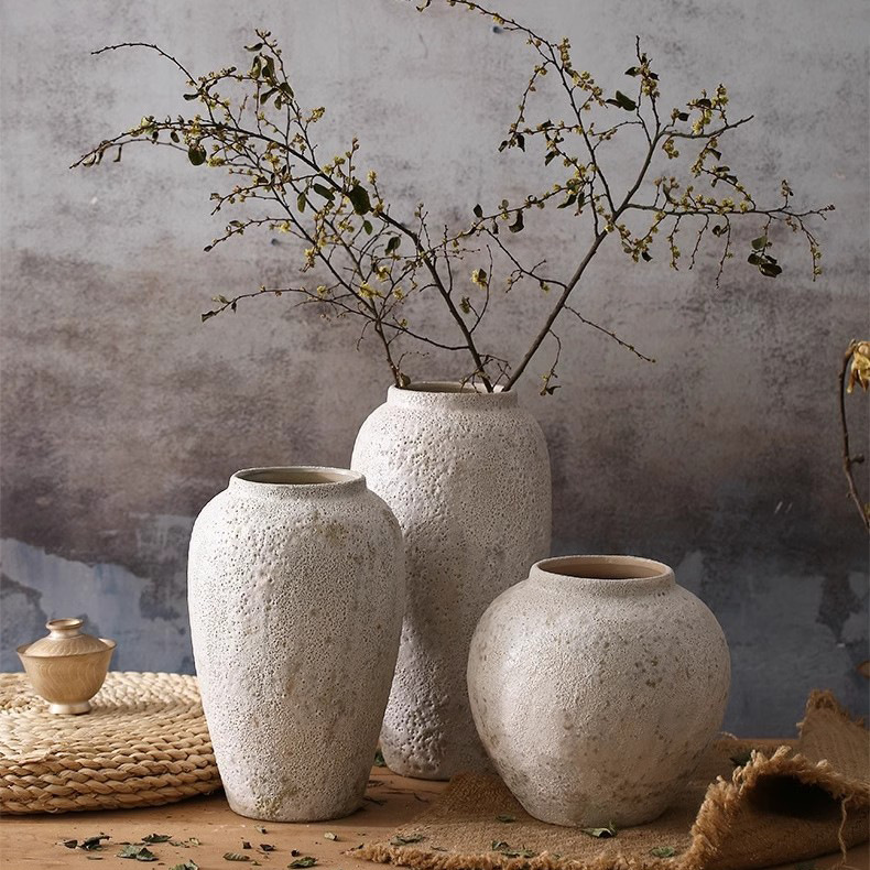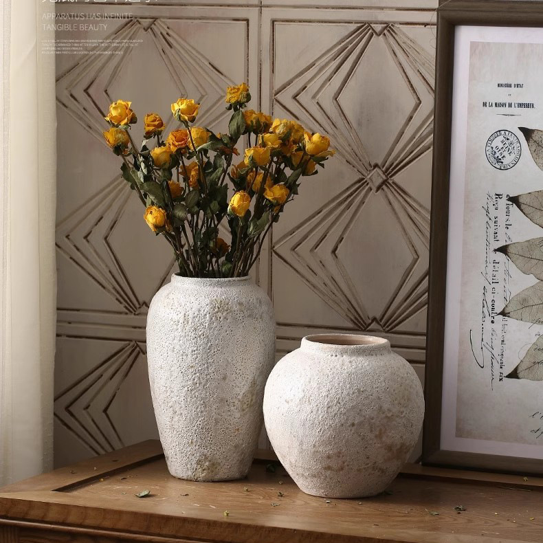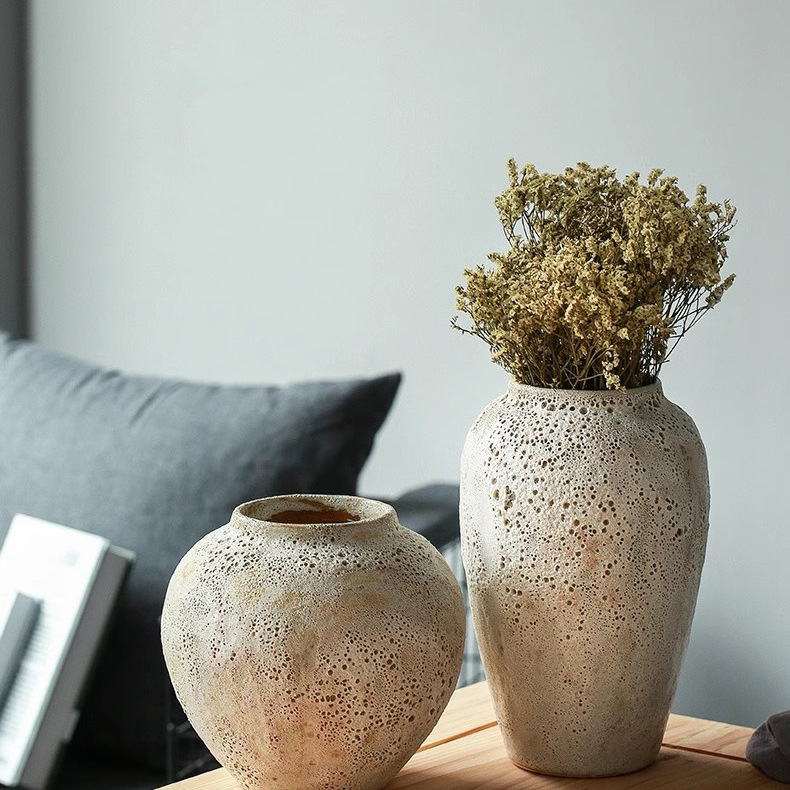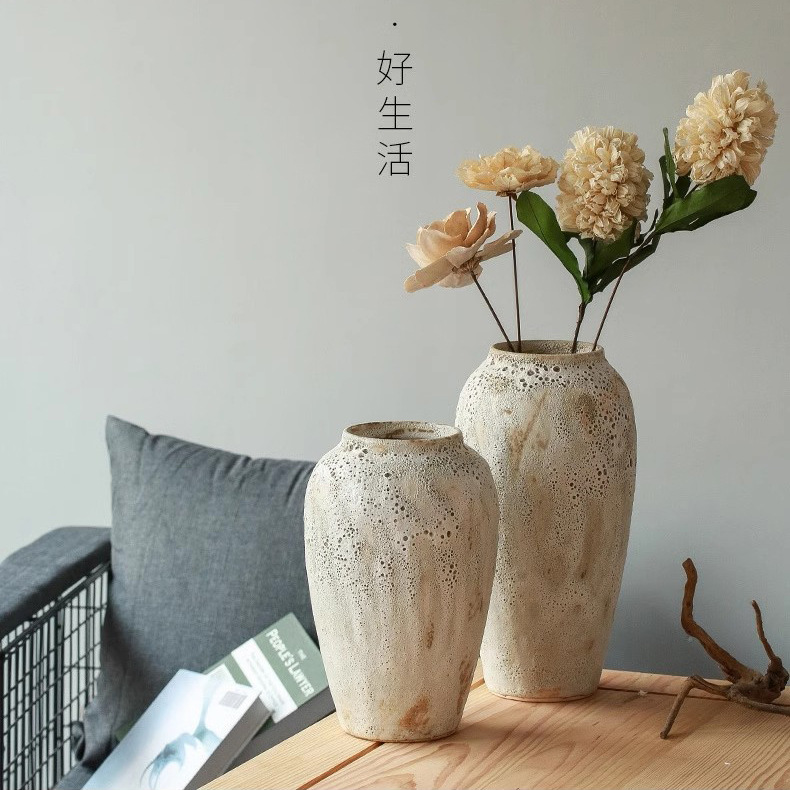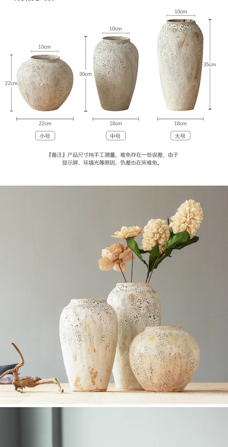 현대 미니멀리스트 거실 세라믹 말린 꽃 세라믹 꽃 꽃병 북유럽 장식품 빈티지 거친 도자기 냄비스토어 가기