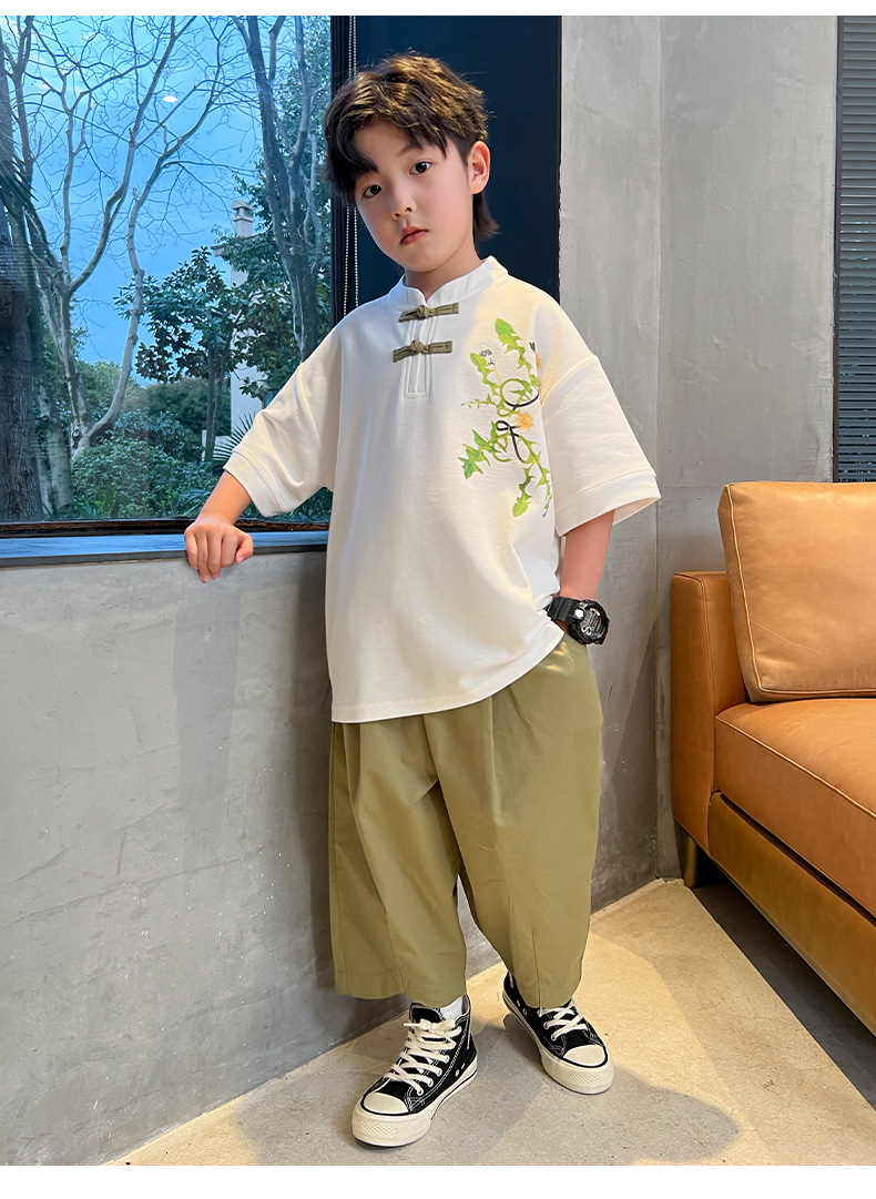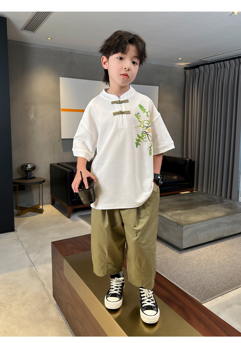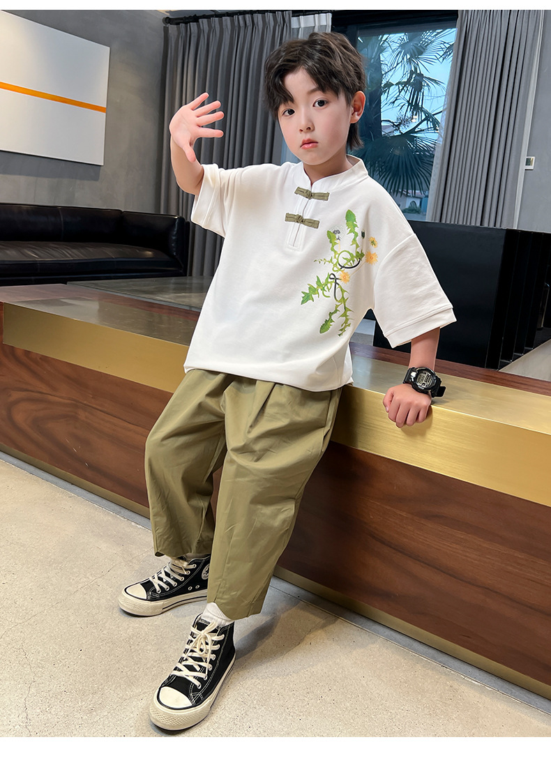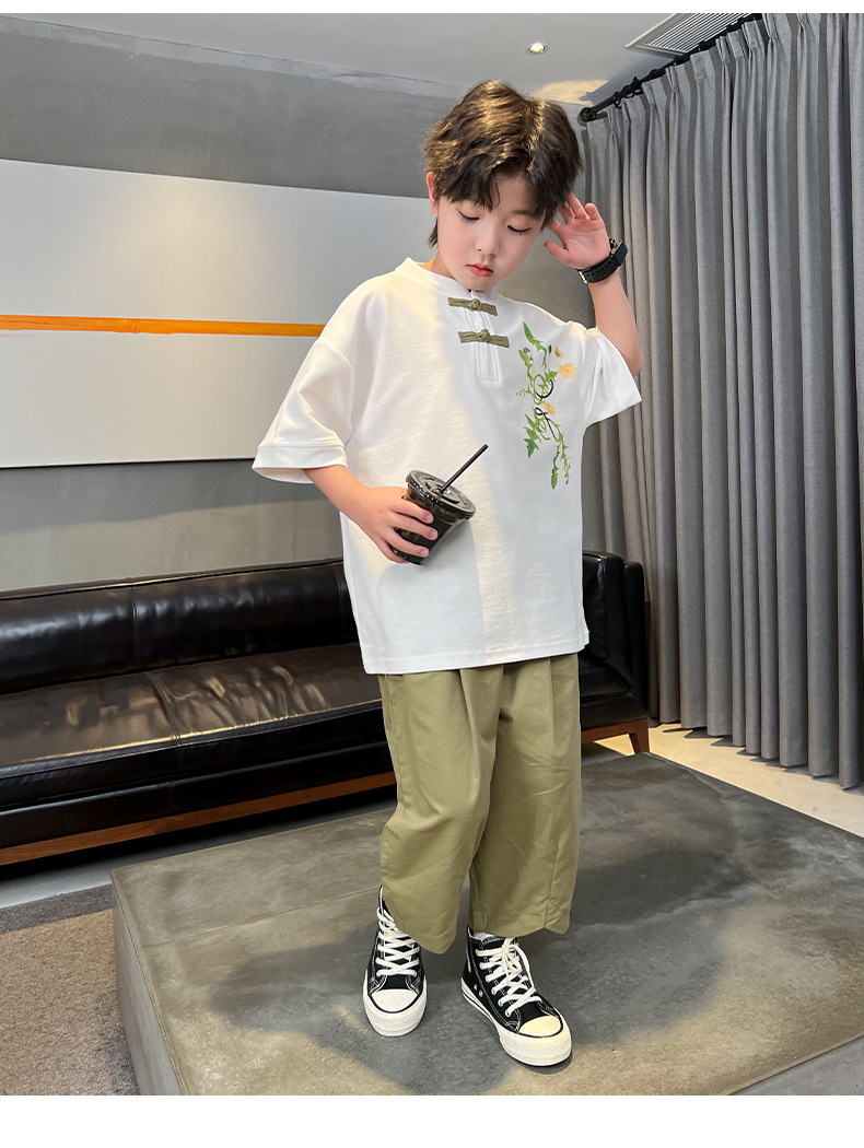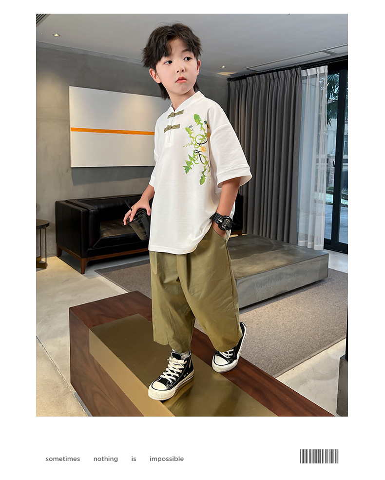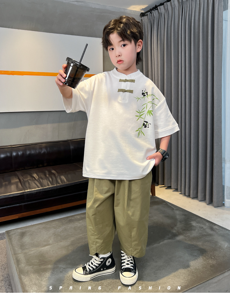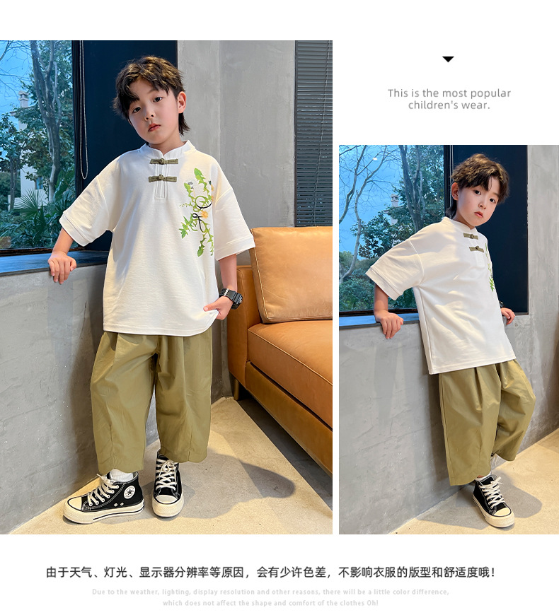아동복, 남아 여름옷, 중국풍 정장, 아동용 반팔 티셔츠 상의, 캐주얼 바지, 아동용 한복 투피스 세트
