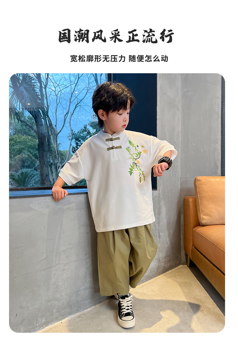 아동복, 남아 여름옷, 중국풍 정장, 아동용 반팔 티셔츠 상의, 캐주얼 바지, 아동용 한복 투피스 세트스토어 가기