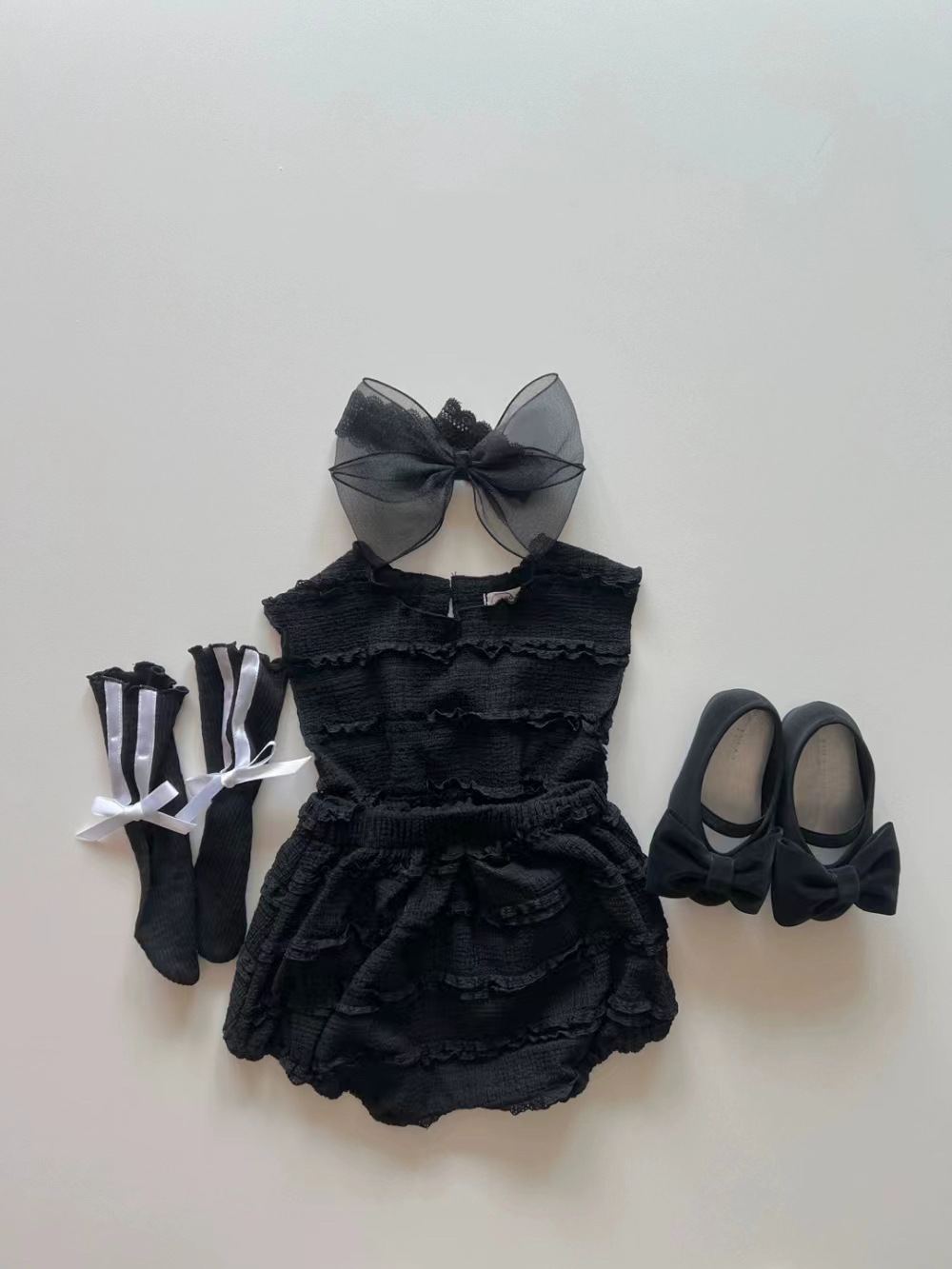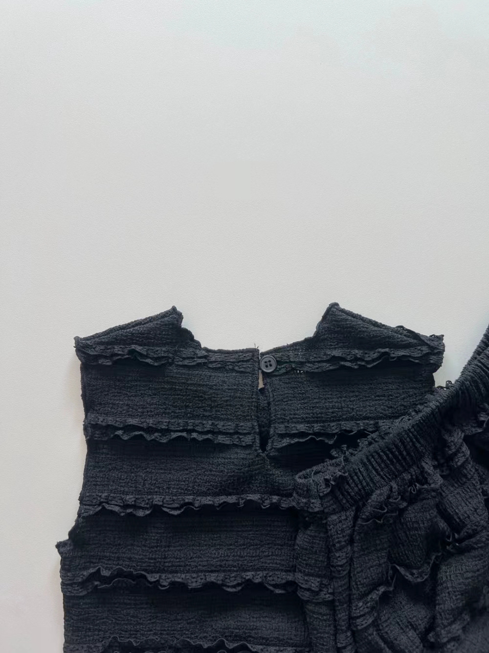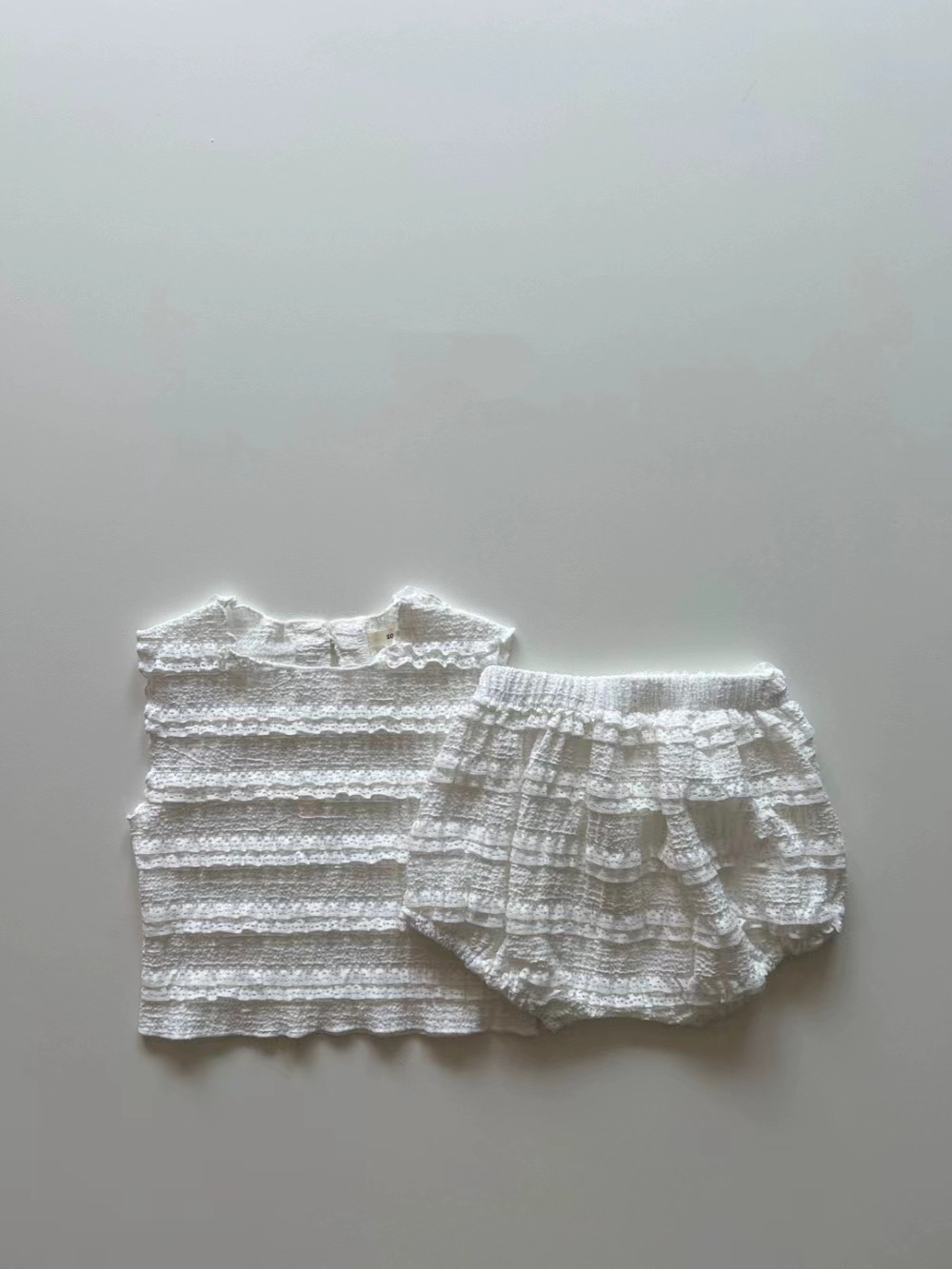 Ins 한국식 솔리드 컬러 느슨한 여름 세트 소년 소녀 아기 스트랩 다층 물결 가장자리 민소매 반바지 세트스토어 가기