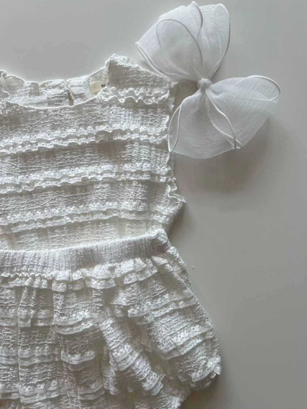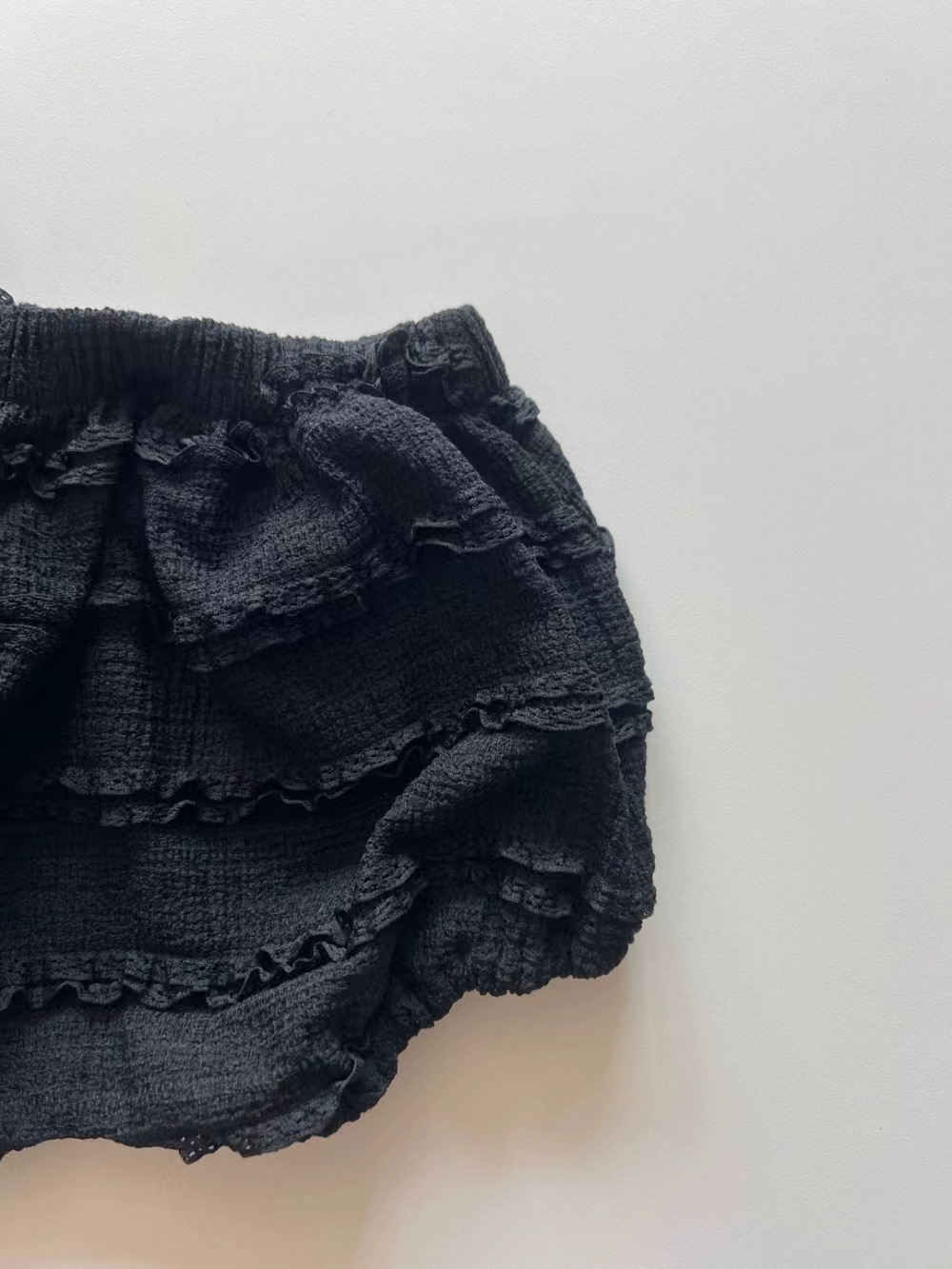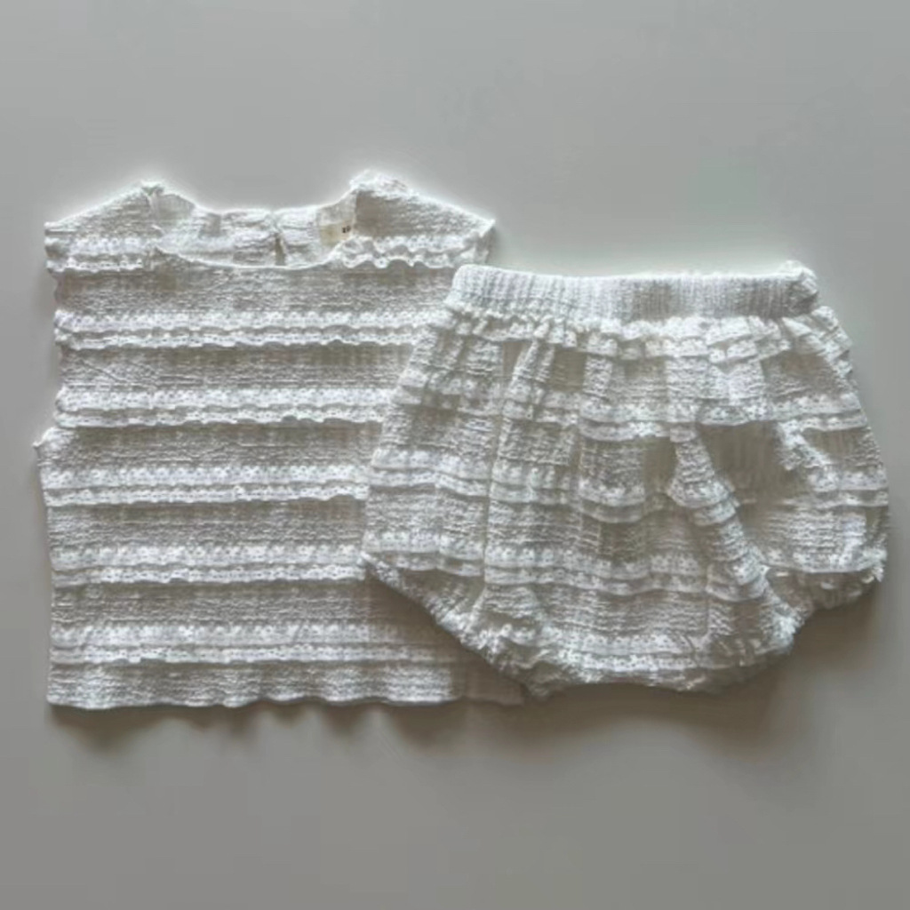 Ins 한국식 솔리드 컬러 느슨한 여름 세트 소년 소녀 아기 스트랩 다층 물결 가장자리 민소매 반바지 세트