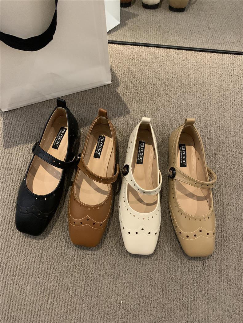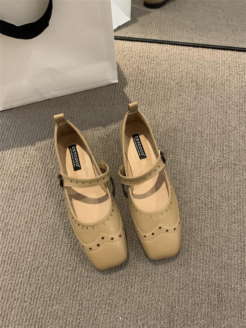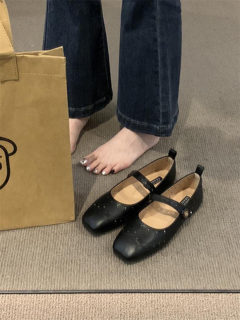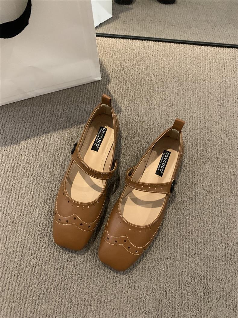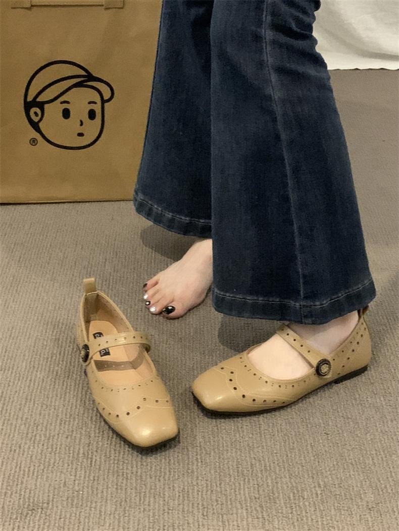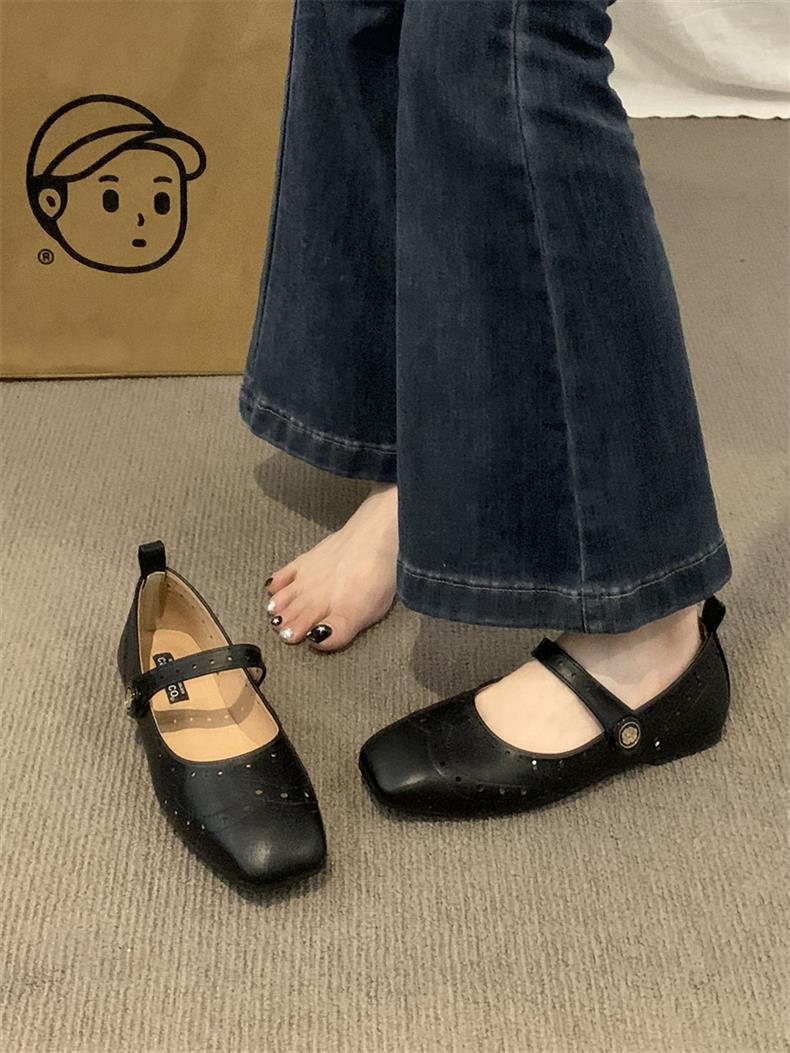 봄과 가을 2024 새로운 빈티지 메리 제인 신발 여성 신발 스퀘어 발가락 얕은 부드러운 평면 프랑스 스타일 스커트 싱글스토어 가기