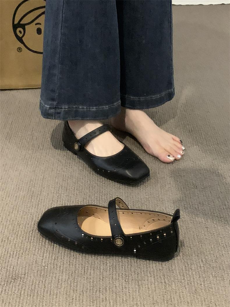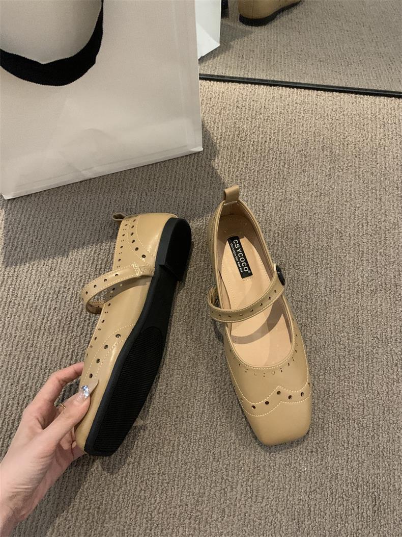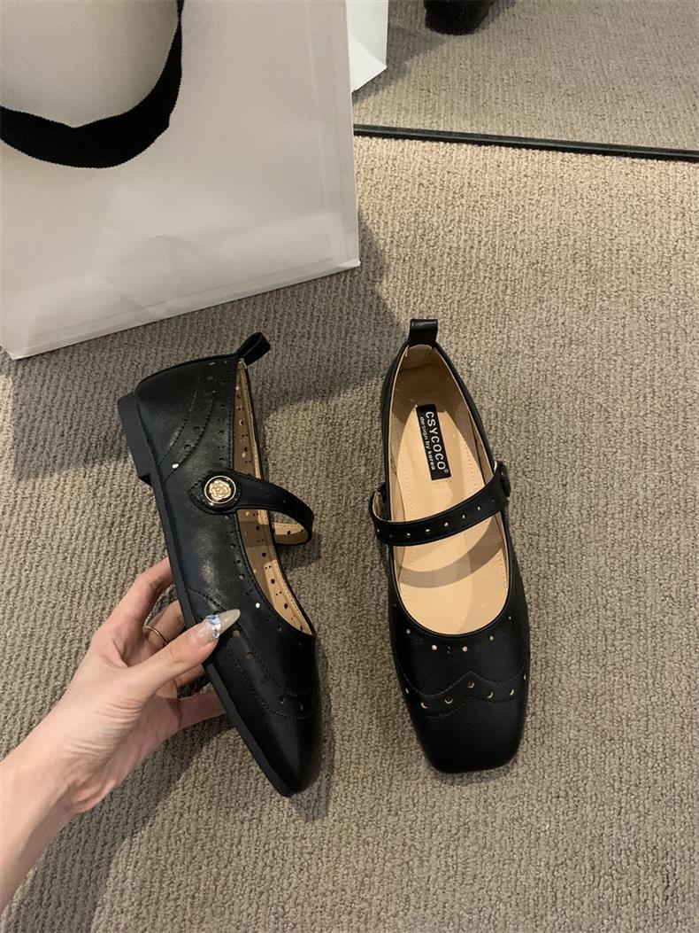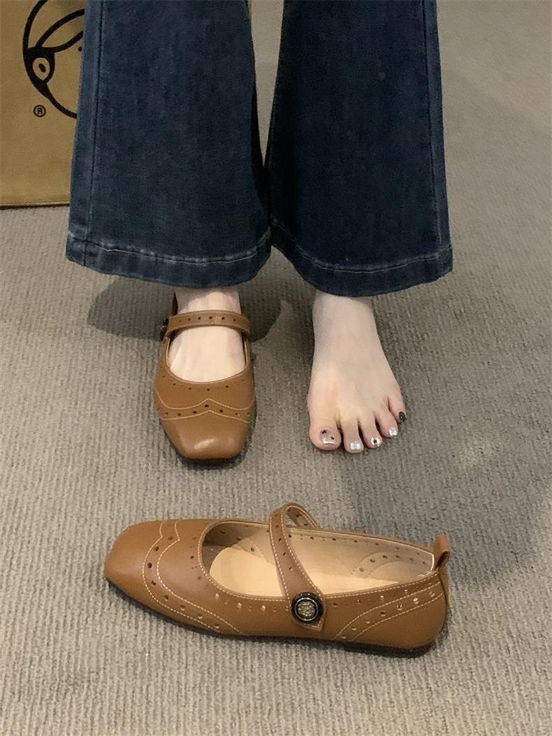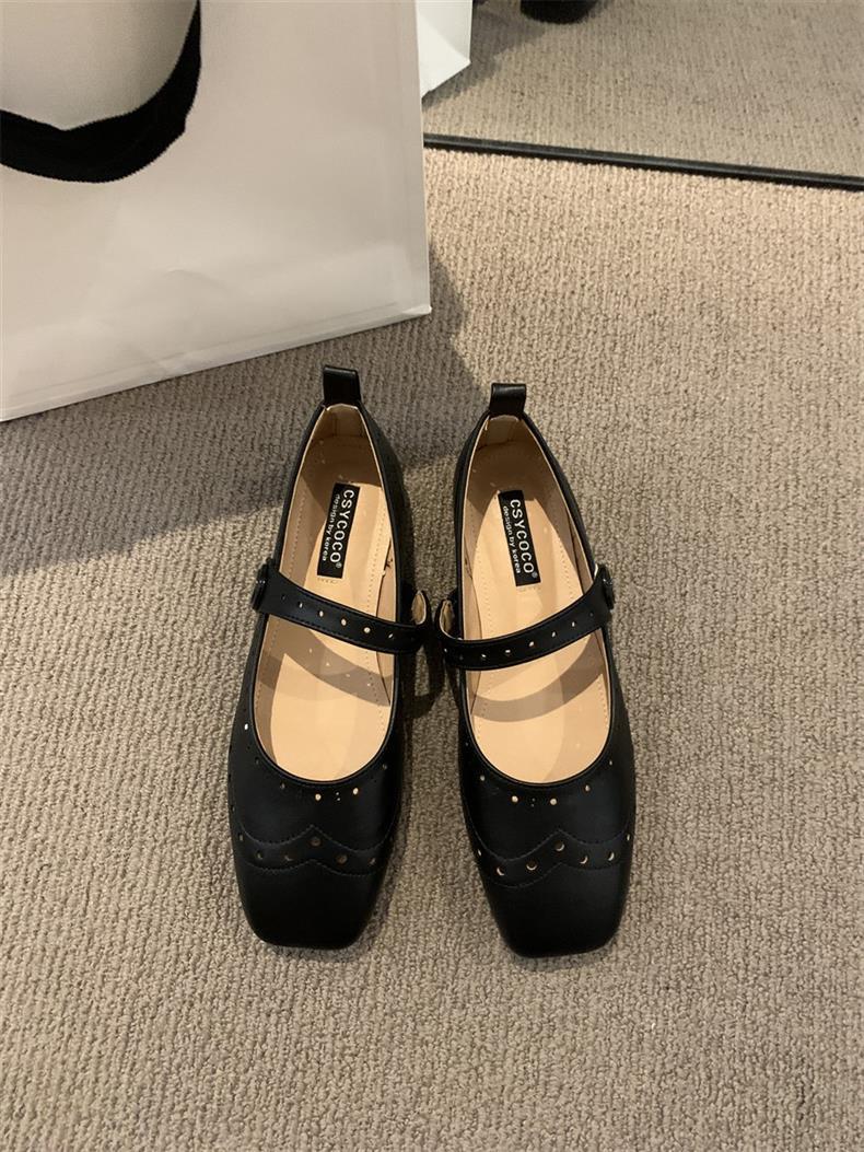 봄과 가을 2024 새로운 빈티지 메리 제인 신발 여성 신발 스퀘어 발가락 얕은 부드러운 평면 프랑스 스타일 스커트 싱글스토어 가기