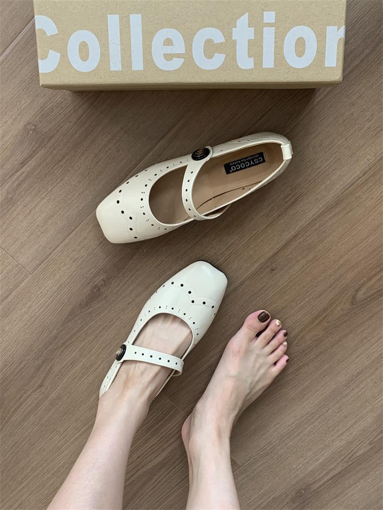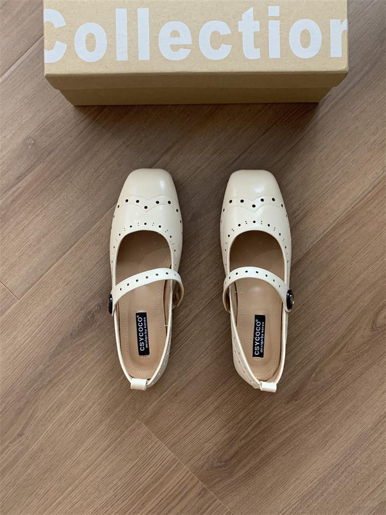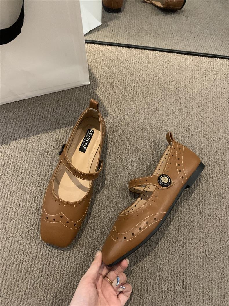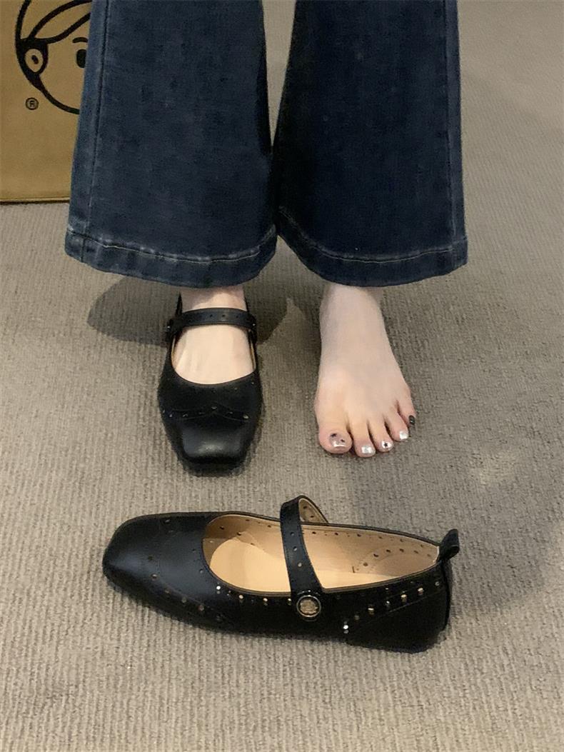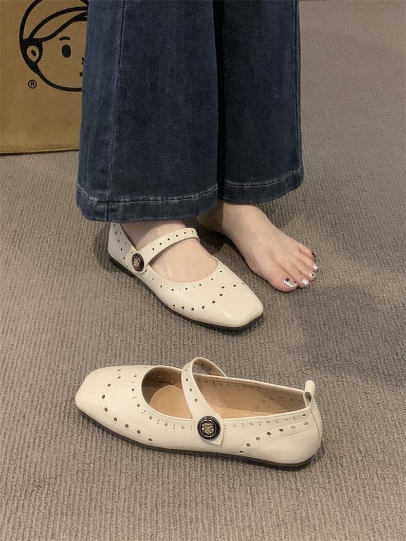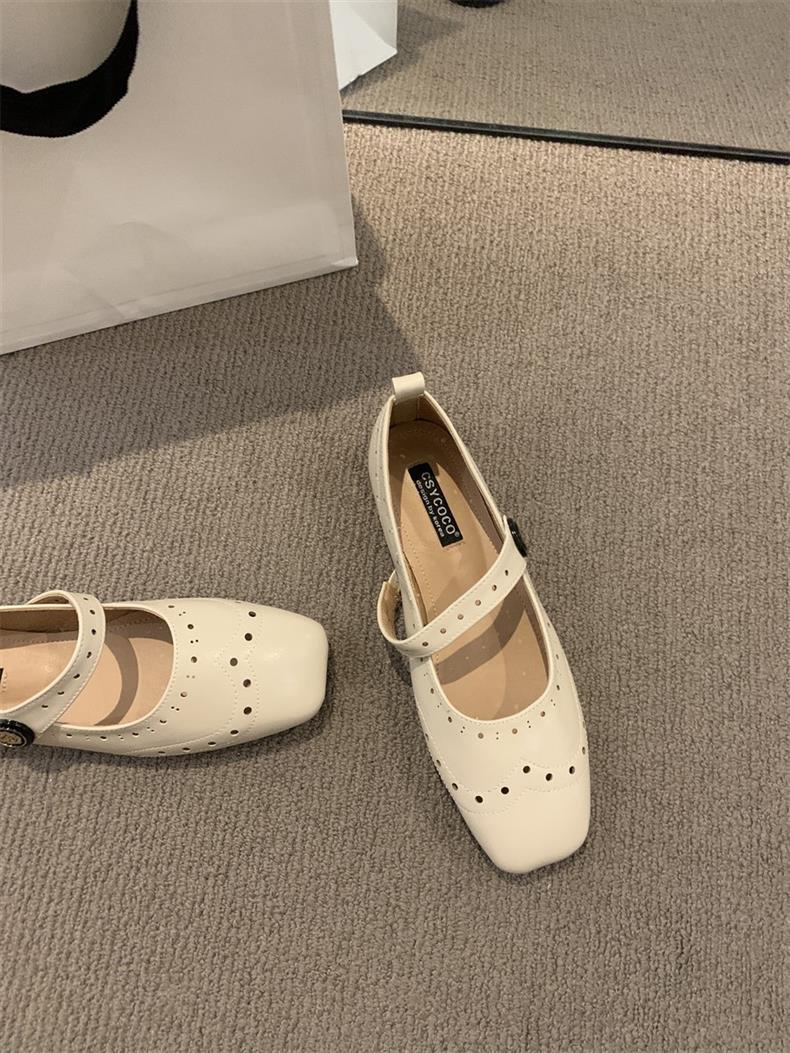 봄과 가을 2024 새로운 빈티지 메리 제인 신발 여성 신발 스퀘어 발가락 얕은 부드러운 평면 프랑스 스타일 스커트 싱글스토어 가기