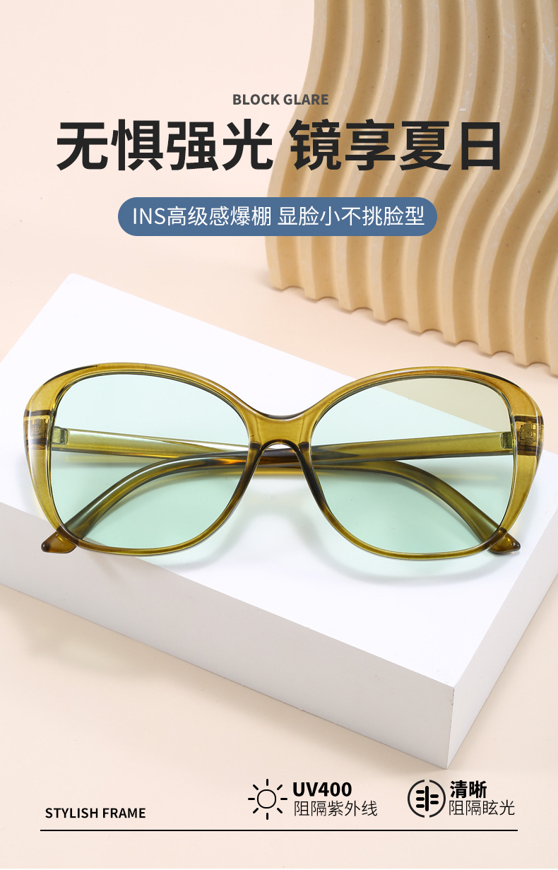 독특한 유럽과 미국의 아크 나비 프레임 2024 새로운 대형 프레임 얼굴 작은 선글라스 국경 간 쇼 Hawksbill 선글라스