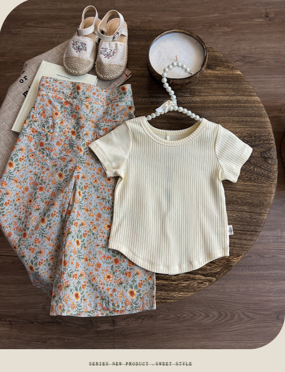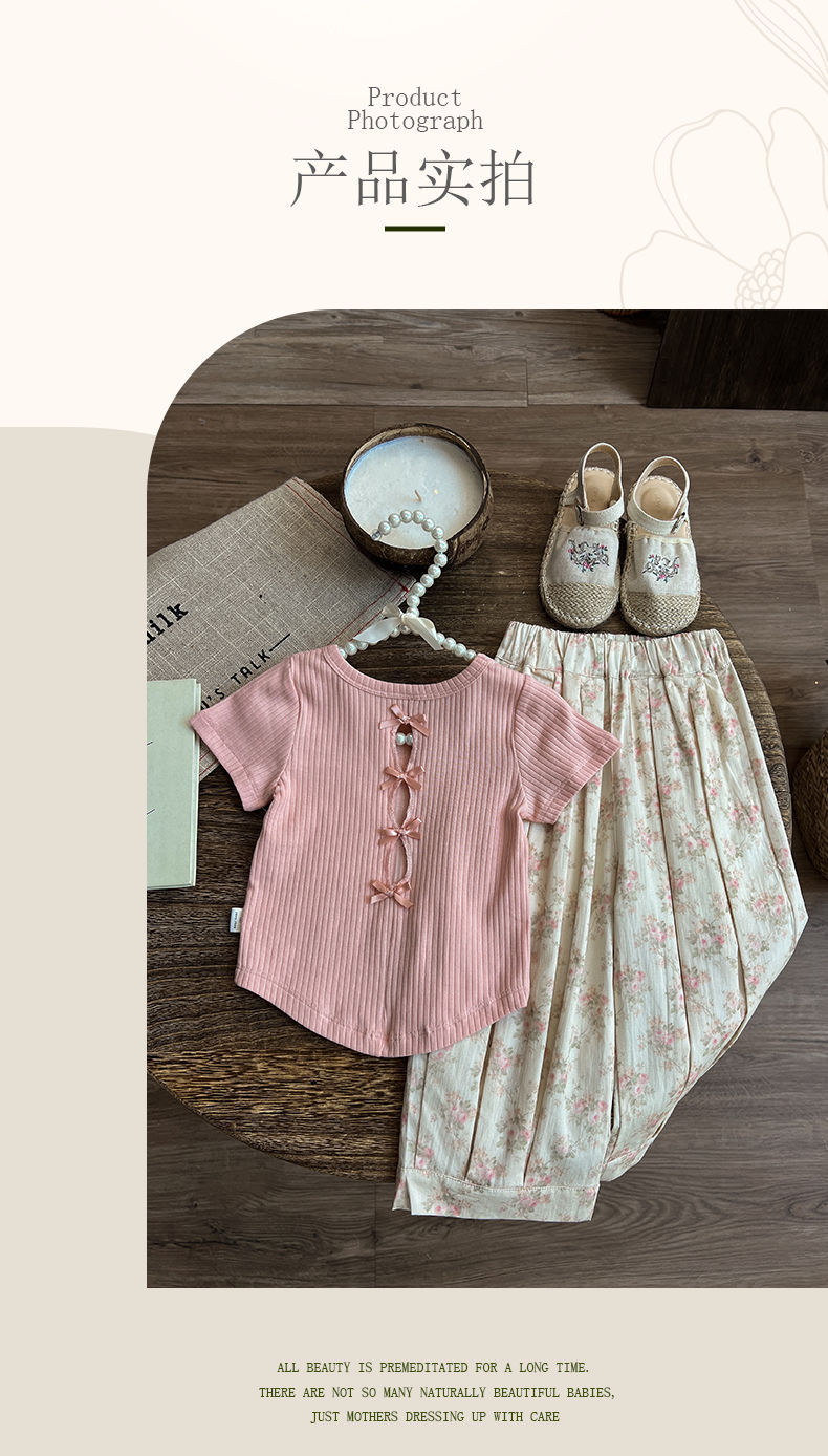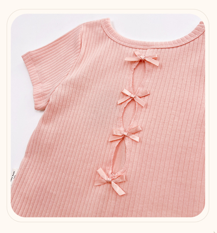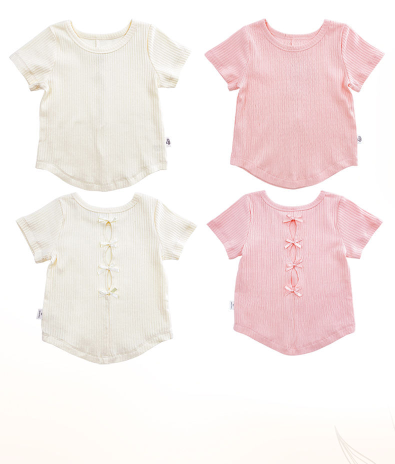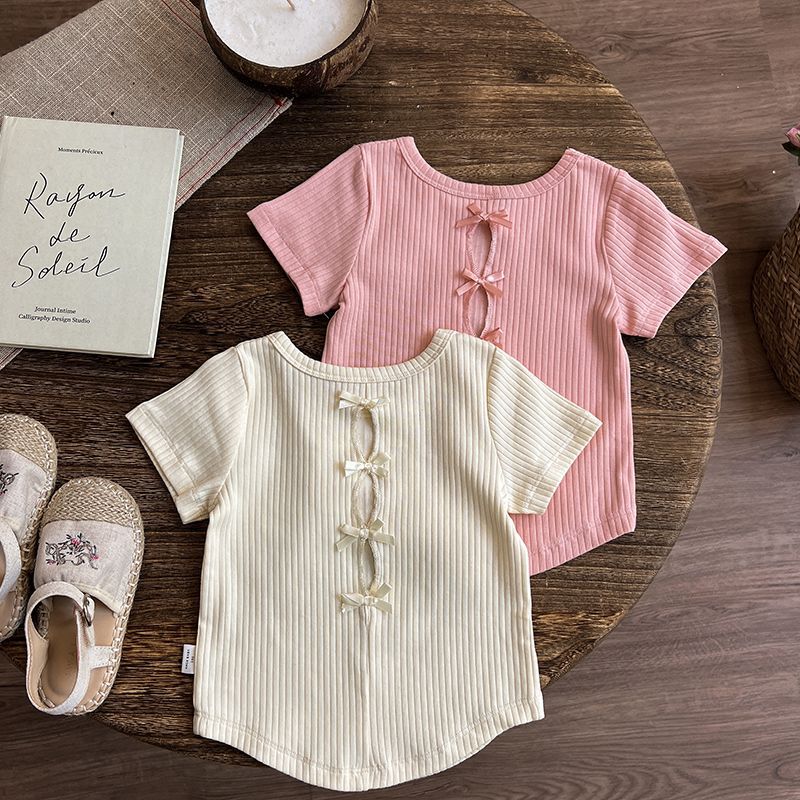 2024 년 여름 새 어린이 반팔 티셔츠 한국 패션 올매치 보우 최고의 아기 소녀 트렌디스토어 가기