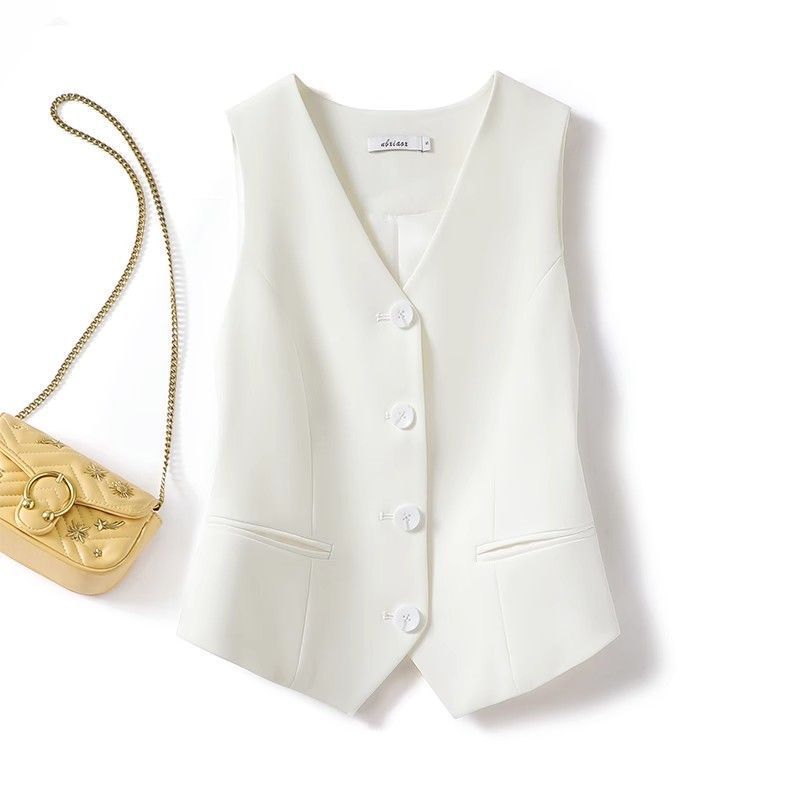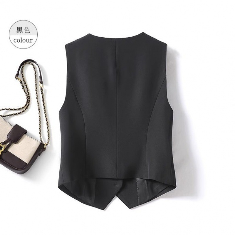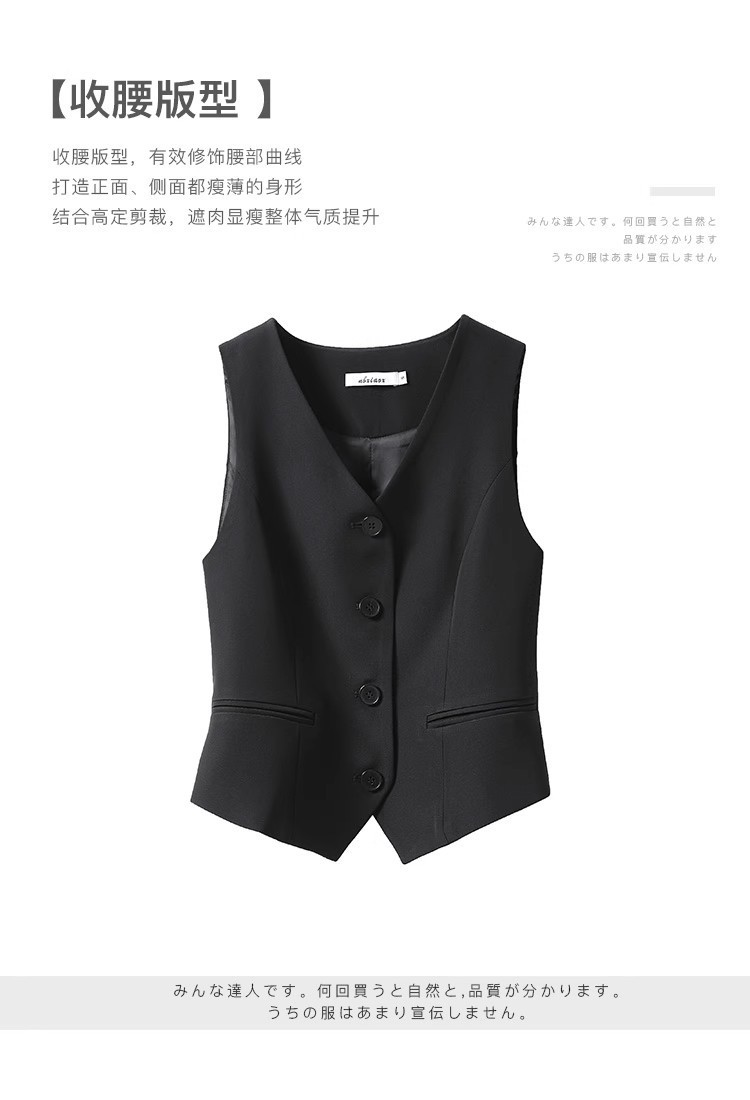 세트 조끼 여성 조끼 2024 봄과 가을 새로운 슬림 핏 외장 쌓인 여성용 허리 코트 검은 짧은 조끼