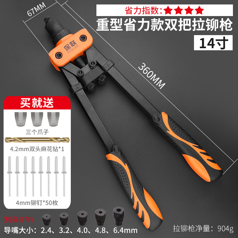 • 견고하고 노동 절약형 이중 리벳 건 14inch [(프리 리벳 + 트위스트 드릴])