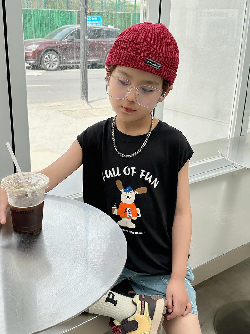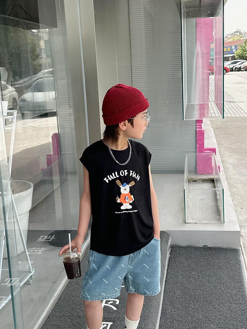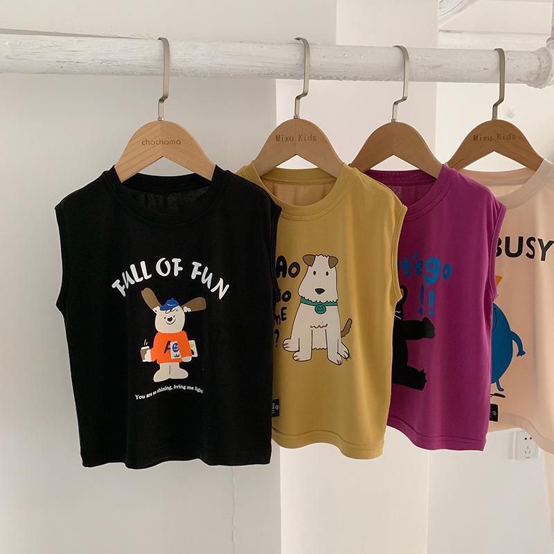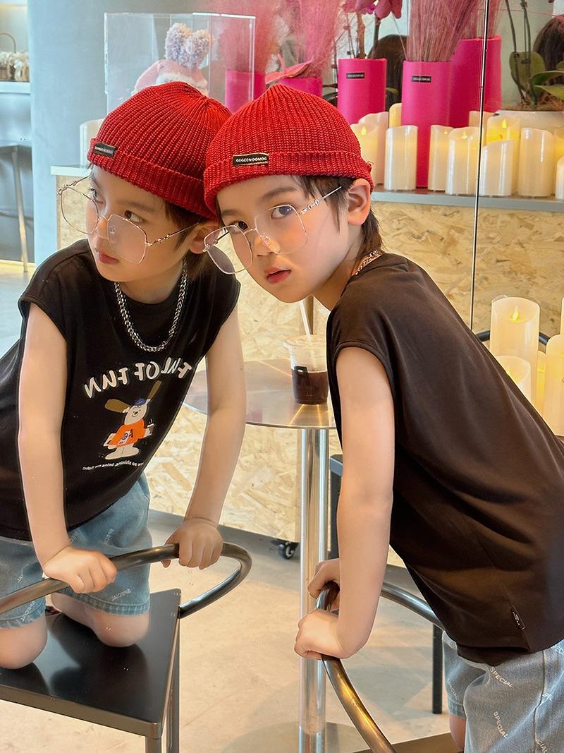 어린이 여름 민소매 조끼 소년 티셔츠 여름 2024 새로운 소년 여름 얼음 실크 얇은 만화 톱 T