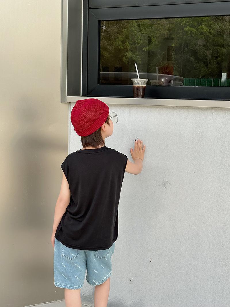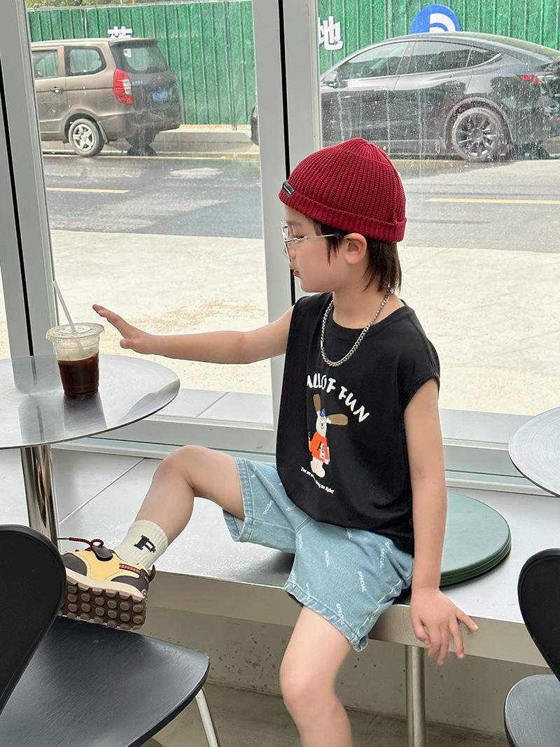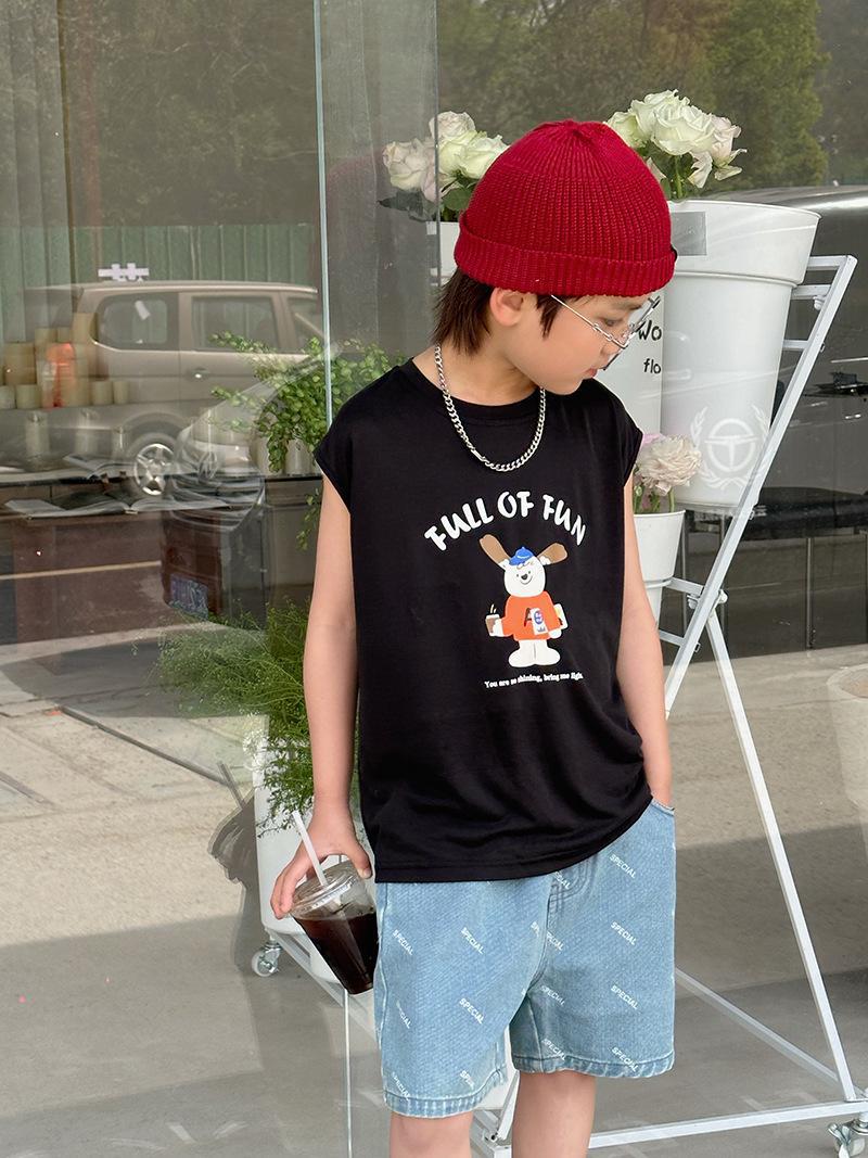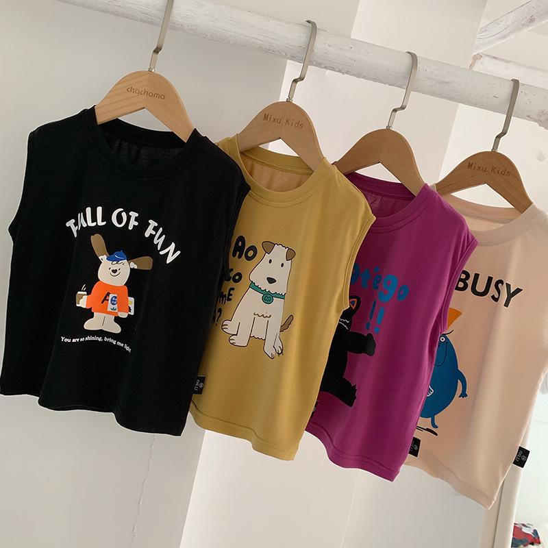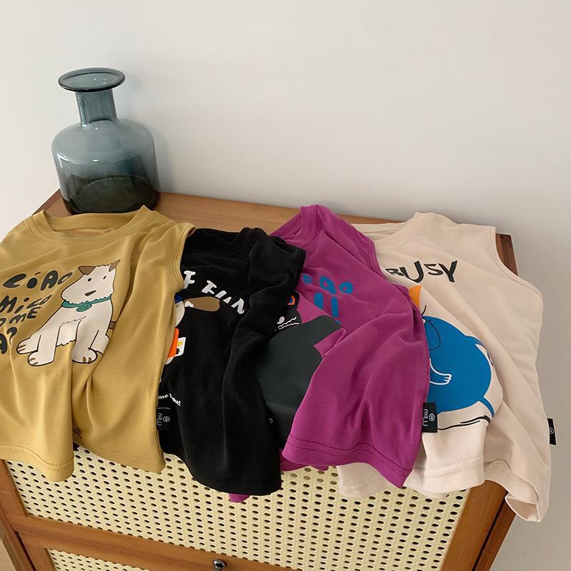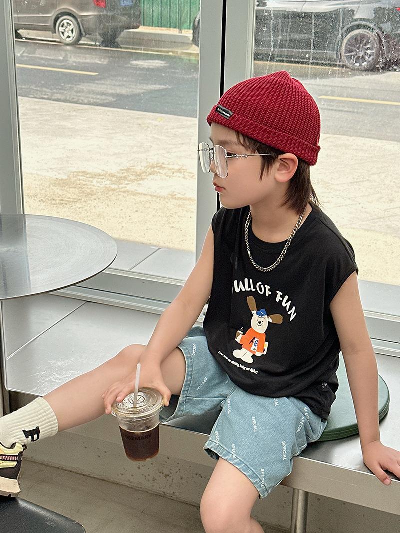 어린이 여름 민소매 조끼 소년 티셔츠 여름 2024 새로운 소년 여름 얼음 실크 얇은 만화 톱 T스토어 가기