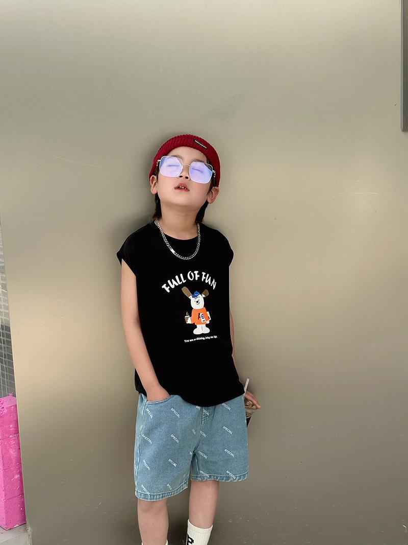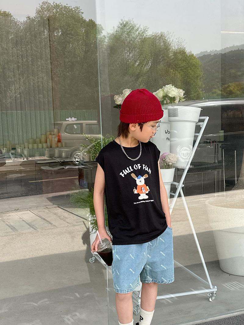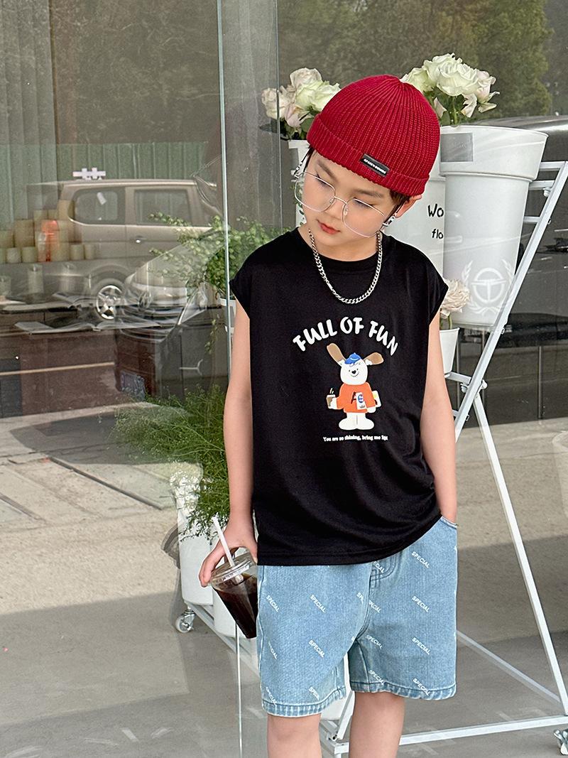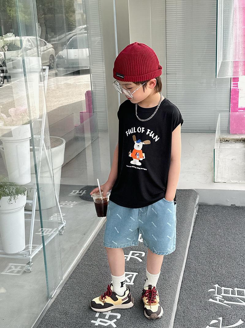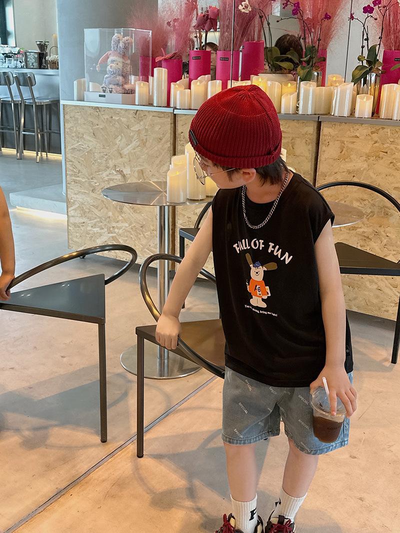 어린이 여름 민소매 조끼 소년 티셔츠 여름 2024 새로운 소년 여름 얼음 실크 얇은 만화 톱 T스토어 가기