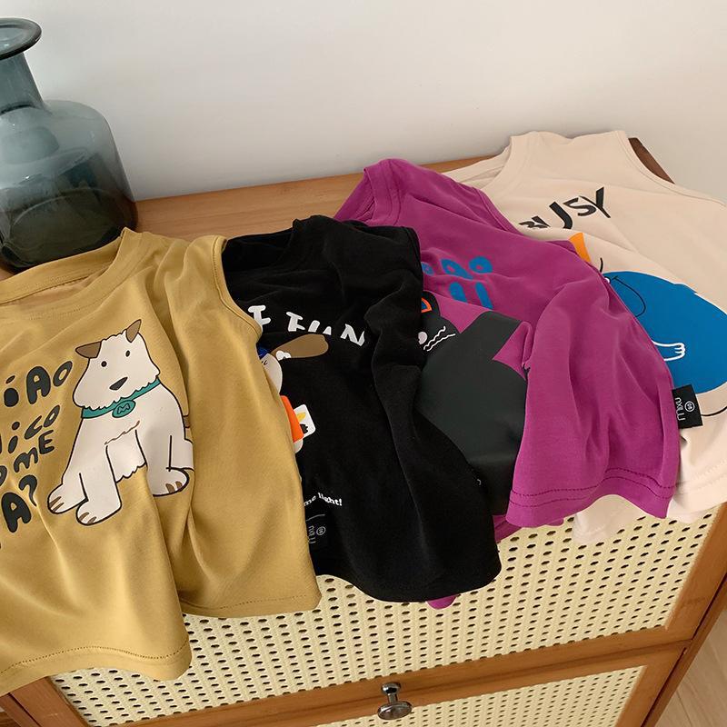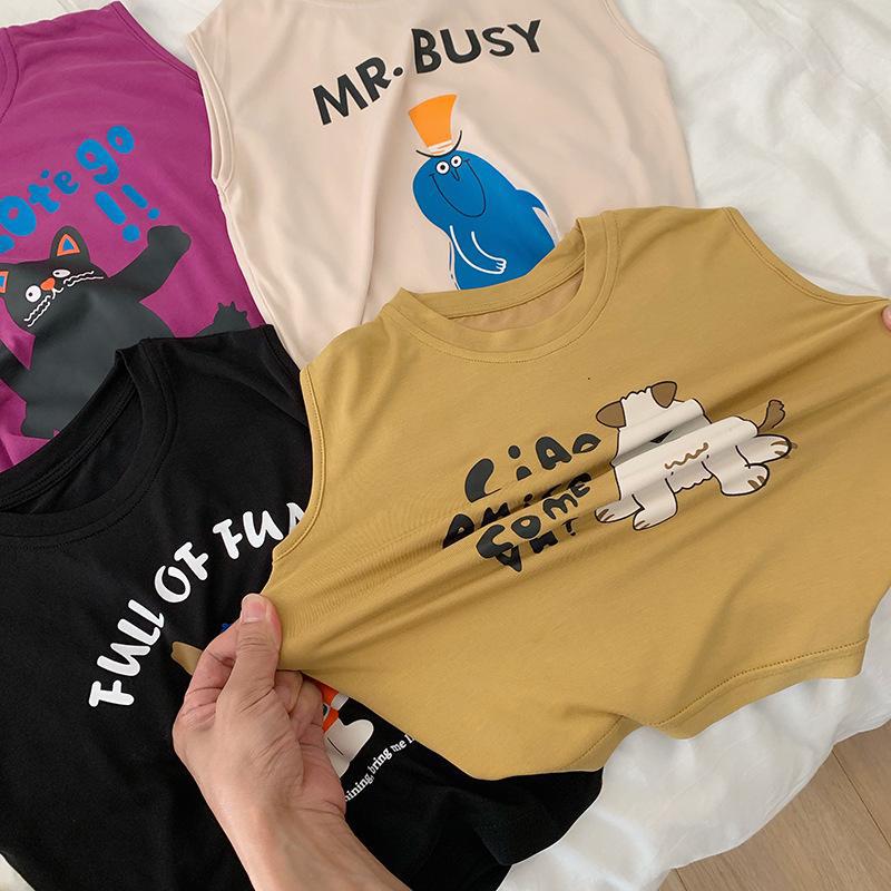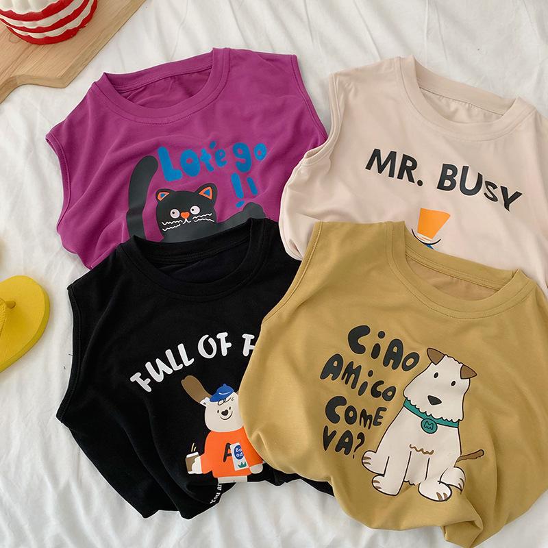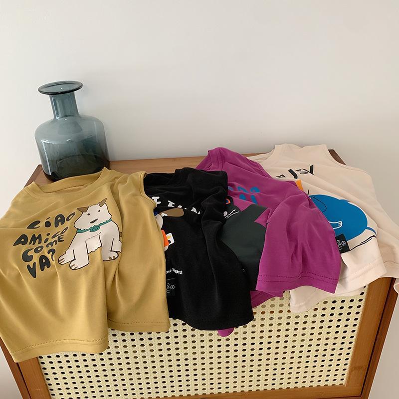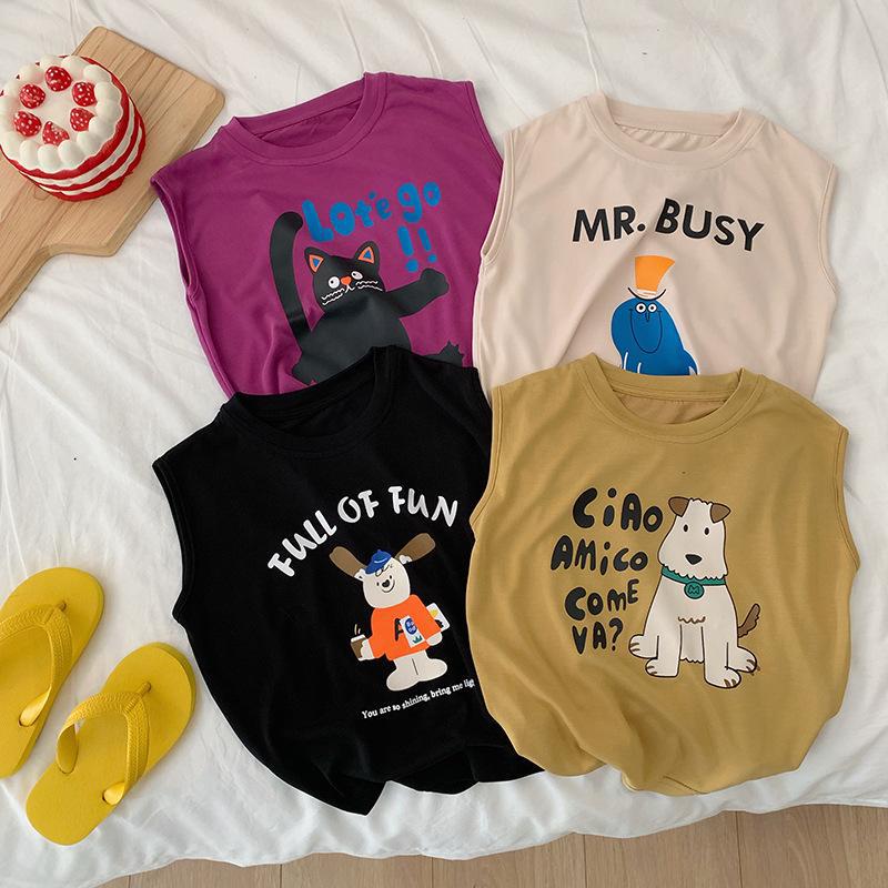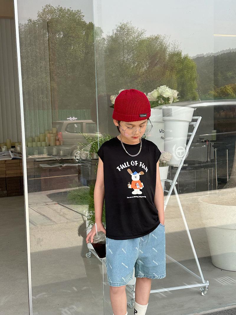 어린이 여름 민소매 조끼 소년 티셔츠 여름 2024 새로운 소년 여름 얼음 실크 얇은 만화 톱 T스토어 가기