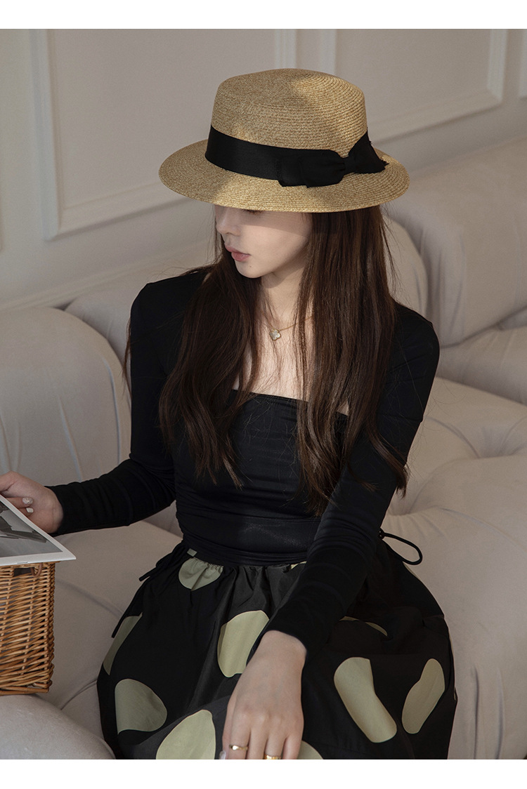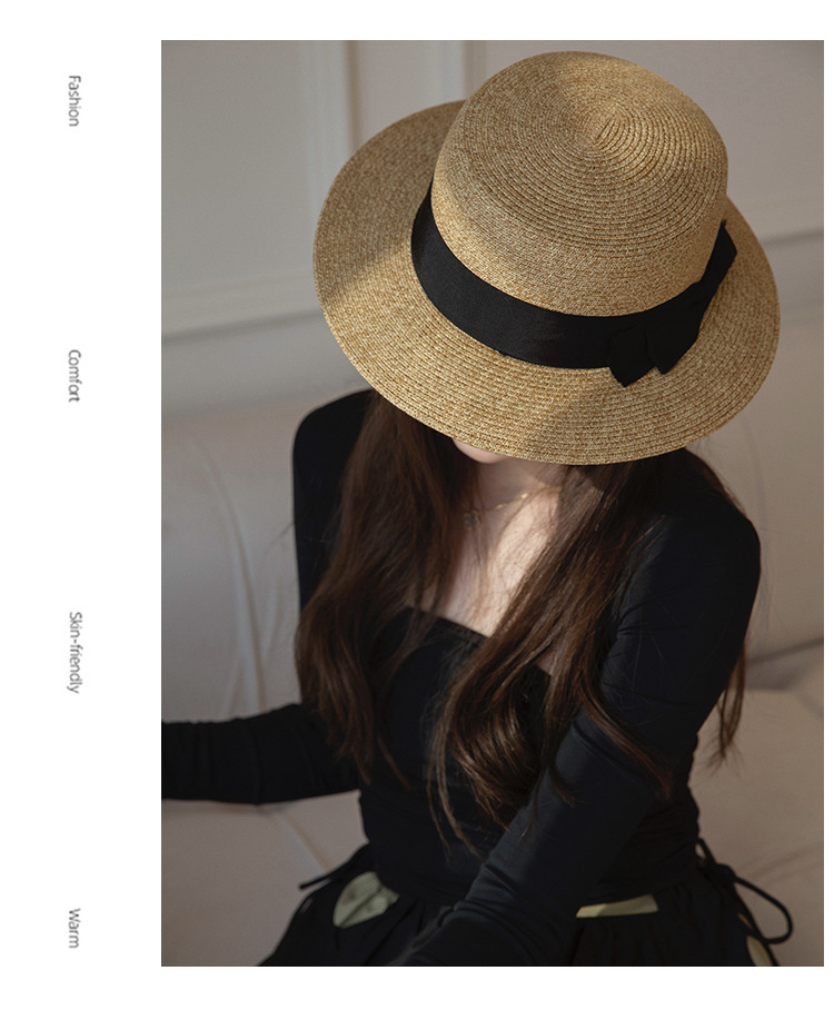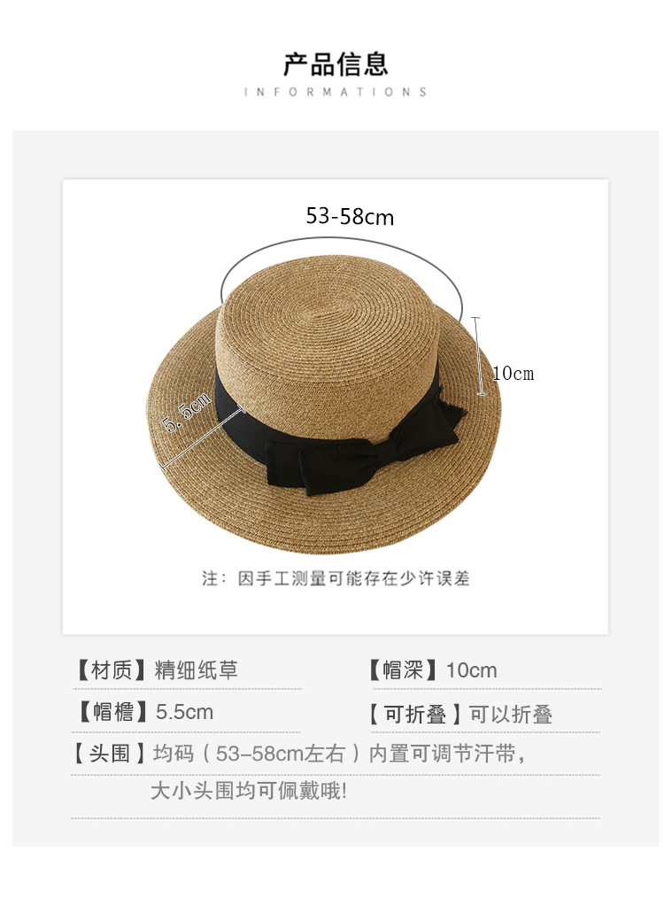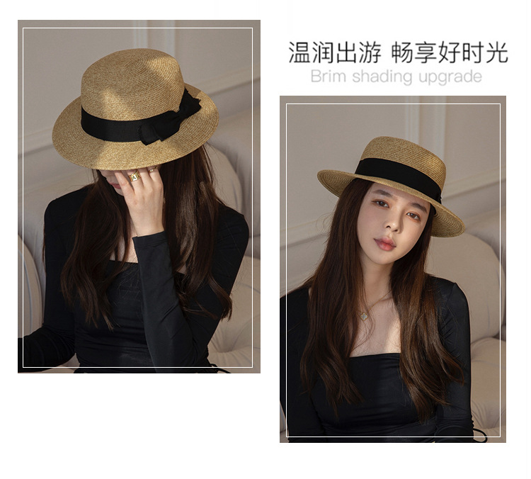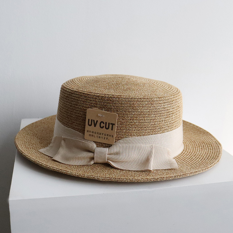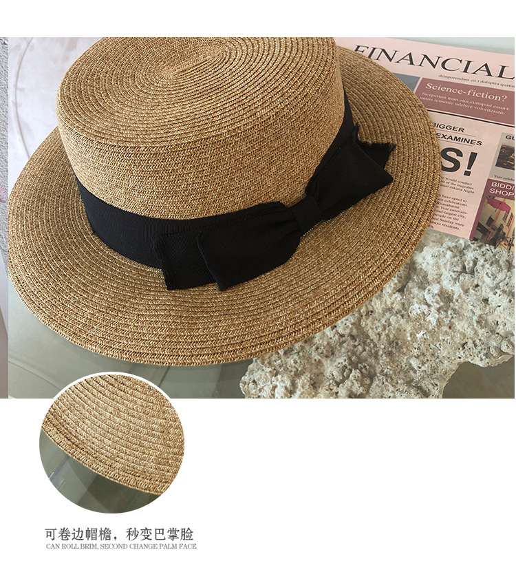 여름 밀짚 모자 여성의 얼굴 작은 평면 태양 모자 일본 UV 선 스크린 모자 활 빨대 접이식 태양 모자