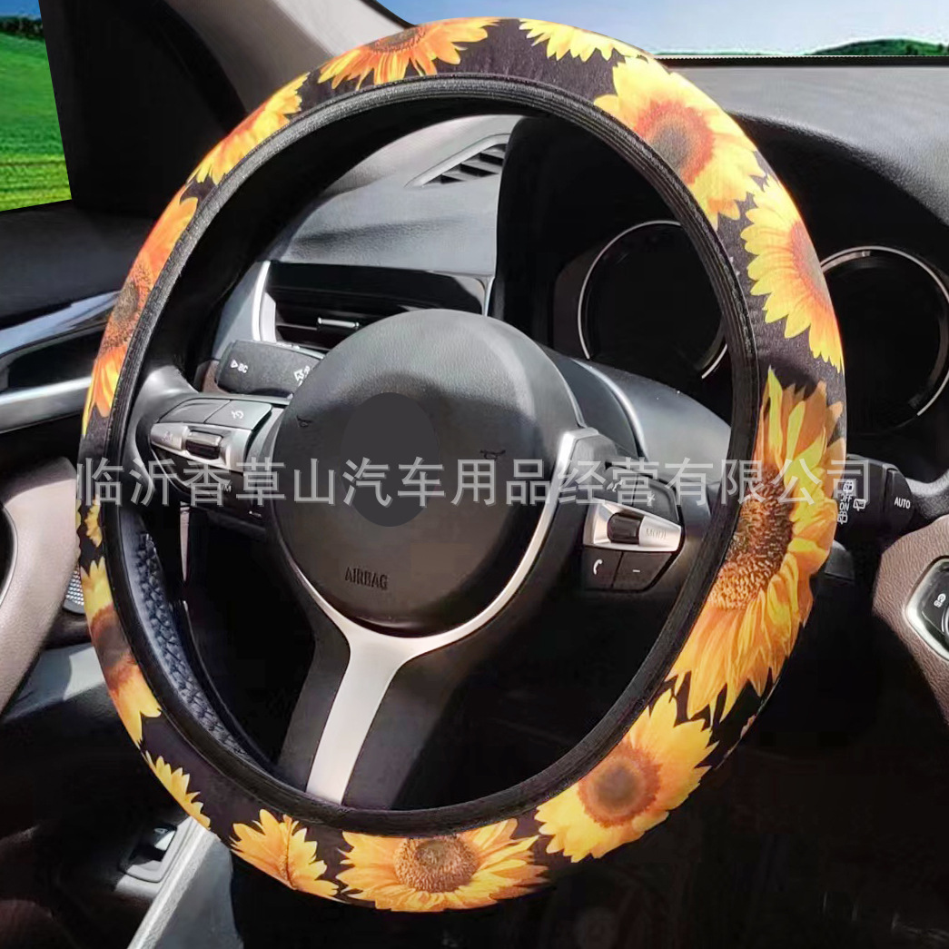 새로운 자동차 스티어링 휠 커버 내부 링 탄성 밴드 탄성 자동차 핸들 커버 국경 전자 상거래 아마존 없는 해바라기