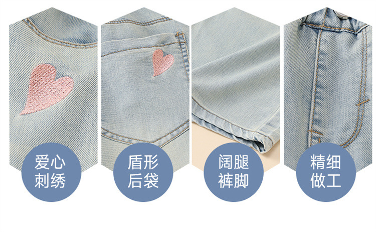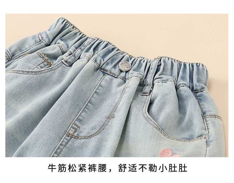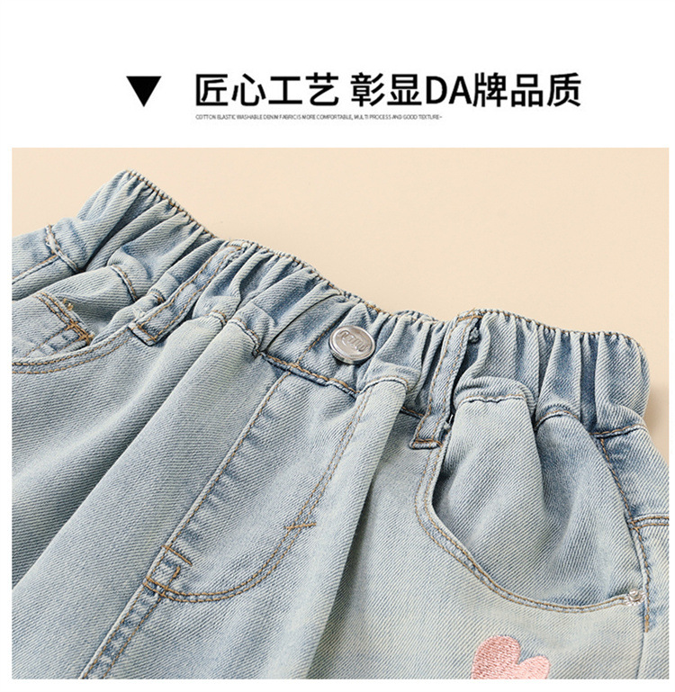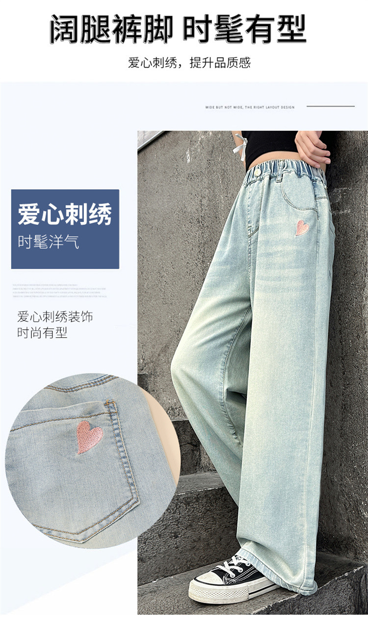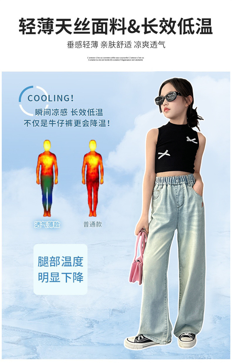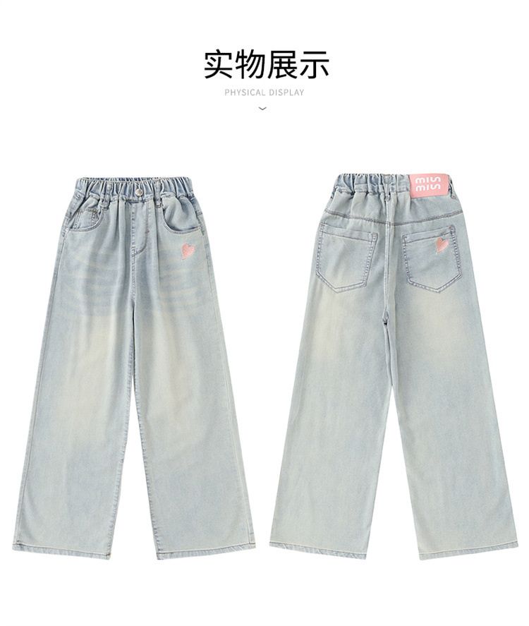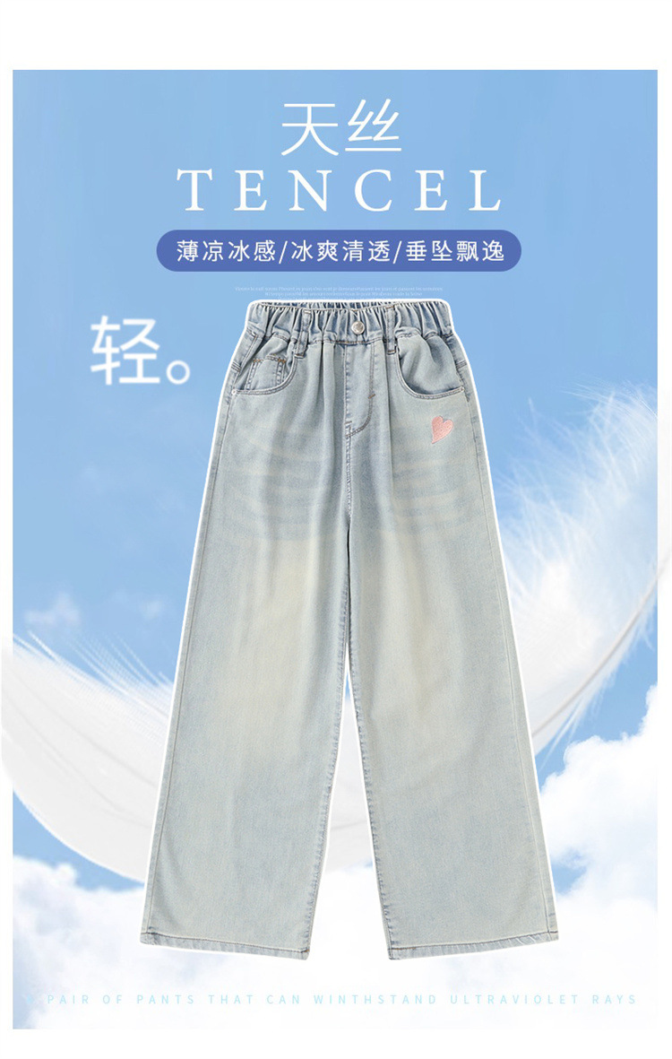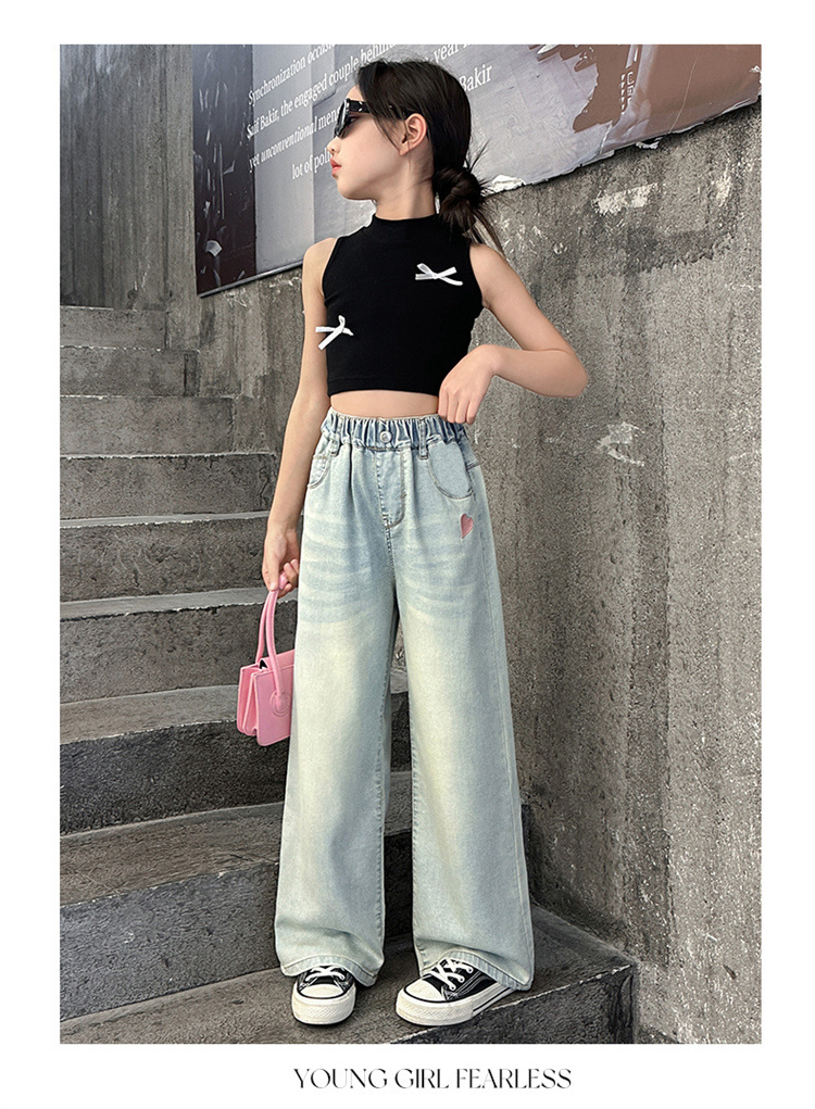 소녀의 바지 여름 얇은 2024 새로운 어린이 청바지 소녀의 큰 어린이 여름 유행 느슨한 넓은 다리 바지스토어 가기
