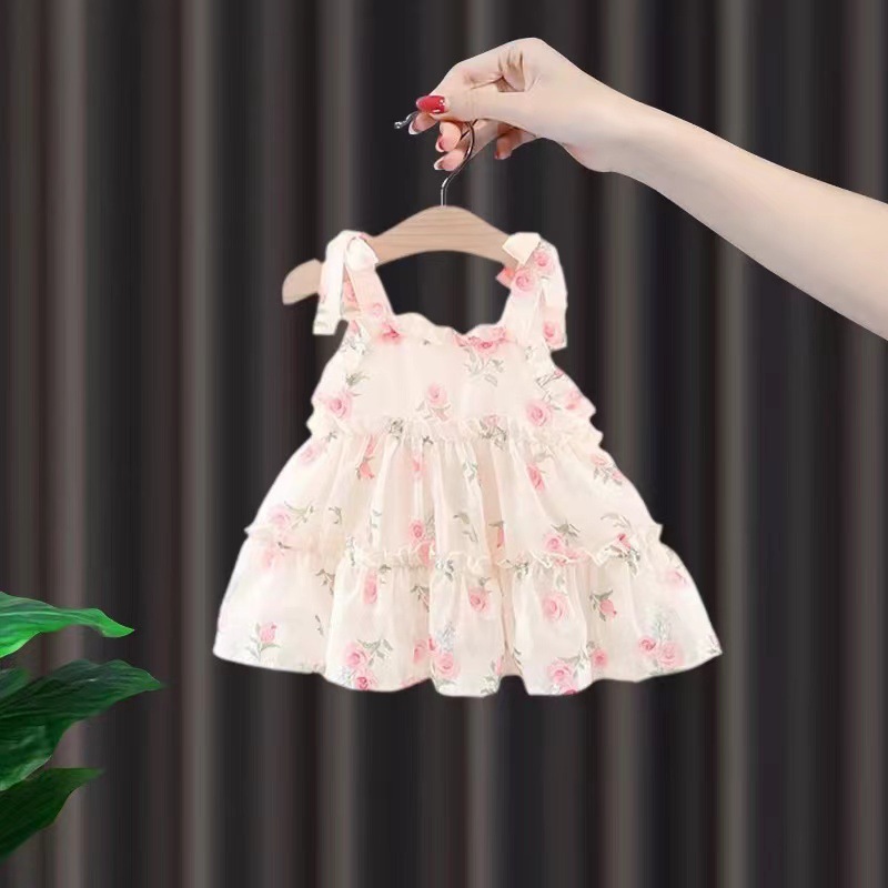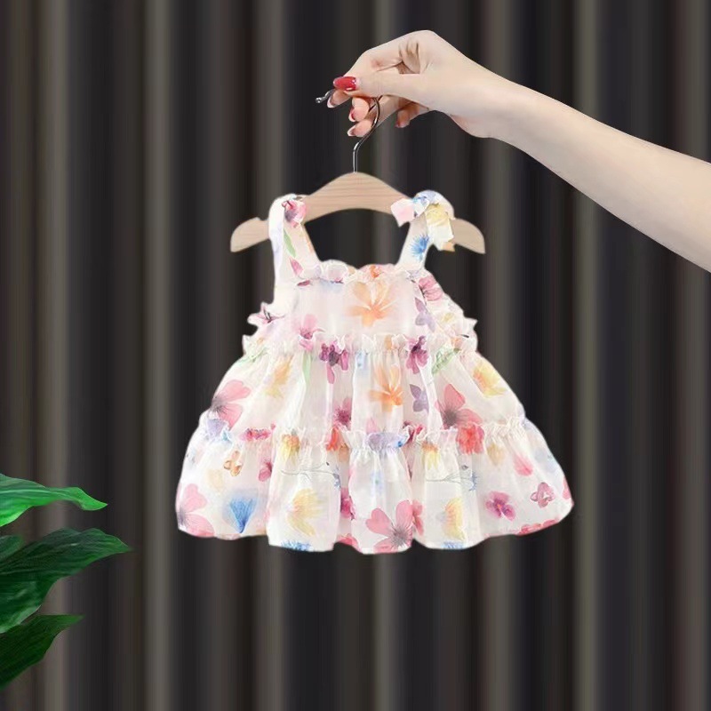 라이브 공급 아기 소녀 여름 달콤한 꽃 슬링 공주 원피스 어린 소녀 여름 2024 새로운 원피스스토어 가기