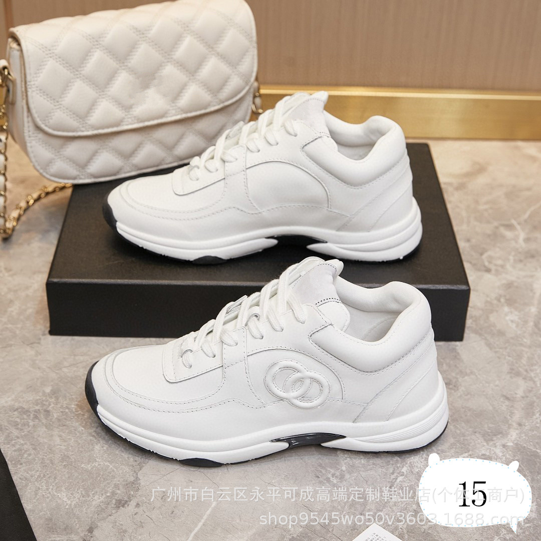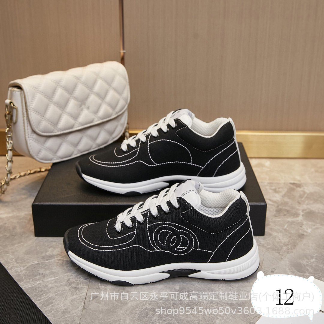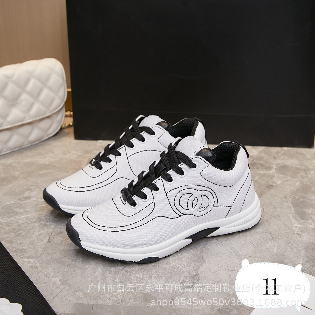 2023 새로운 스타일 샤넬 스타일 레이스 업 가죽 컬러 블록 운동화 캔버스 러닝 신발 커플 높이 증가 모든 매치 요가 신발스토어 가기