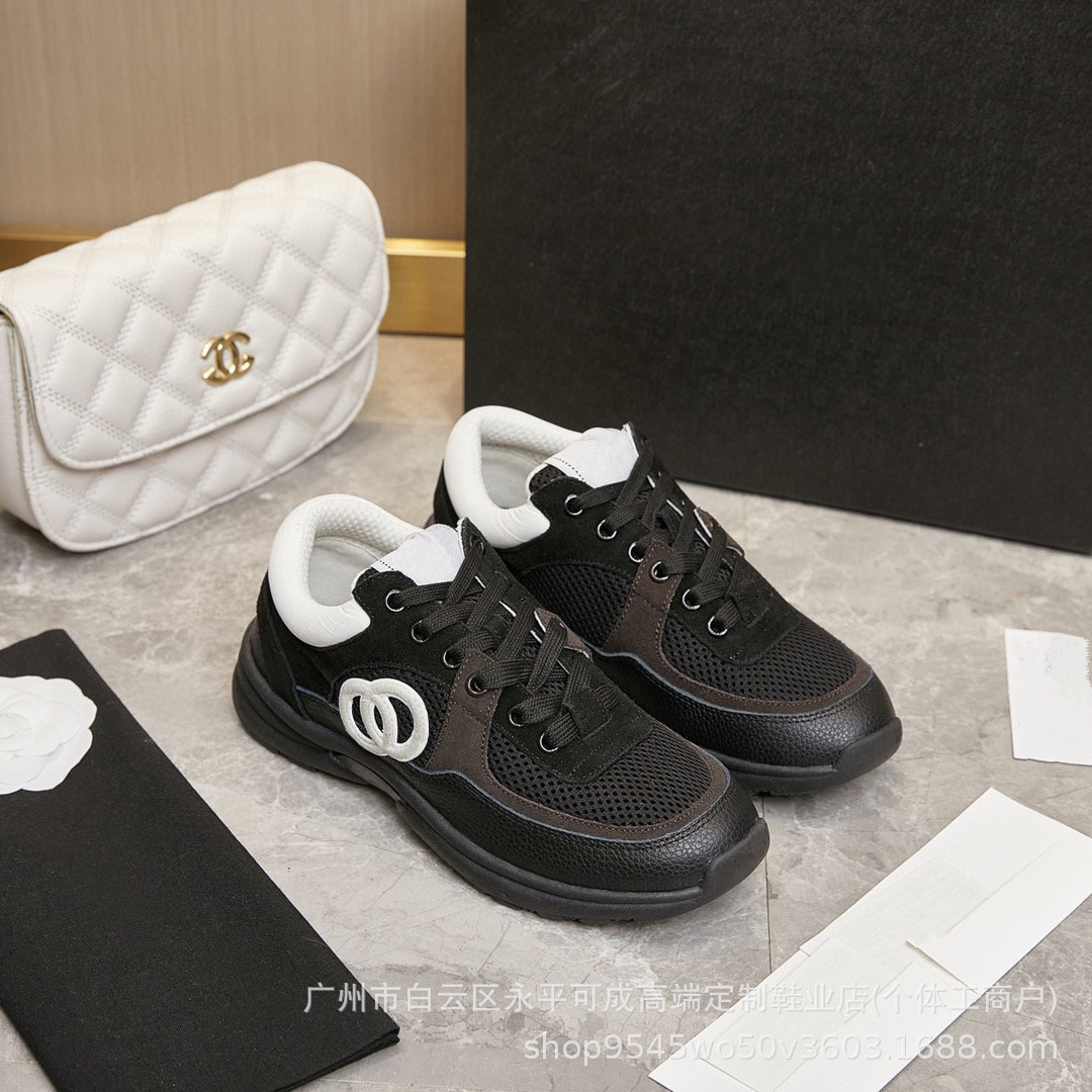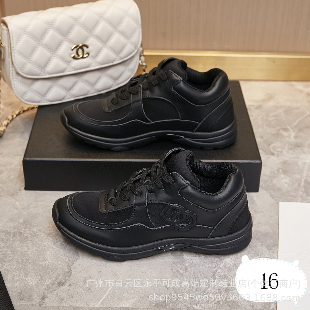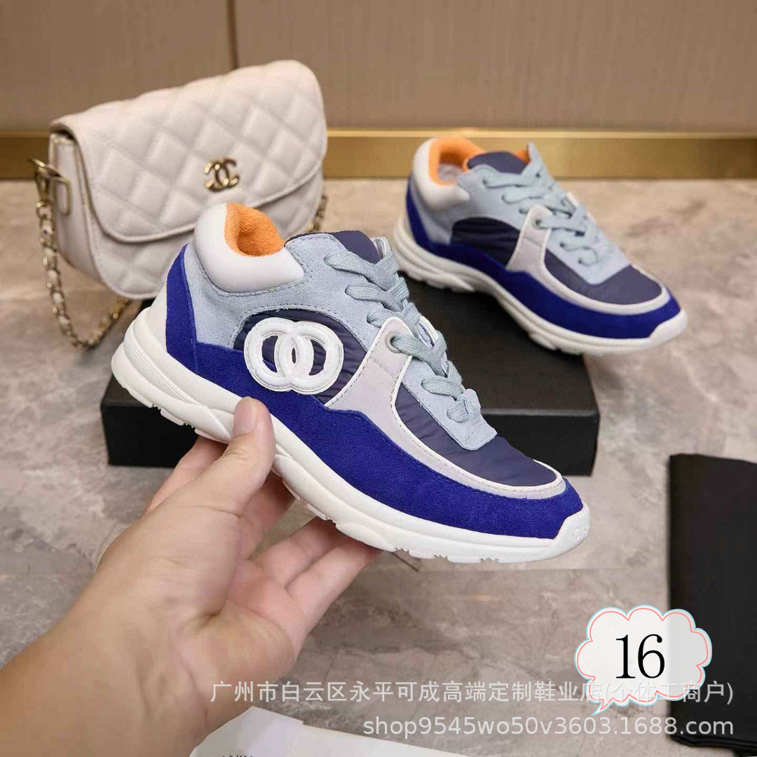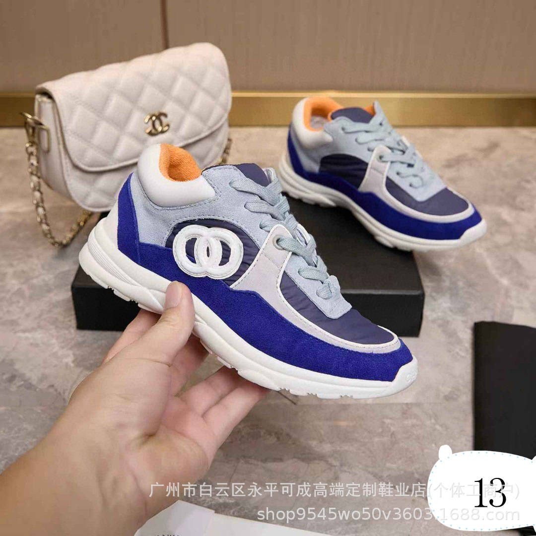 2023 새로운 스타일 샤넬 스타일 레이스 업 가죽 컬러 블록 운동화 캔버스 러닝 신발 커플 높이 증가 모든 매치 요가 신발스토어 가기