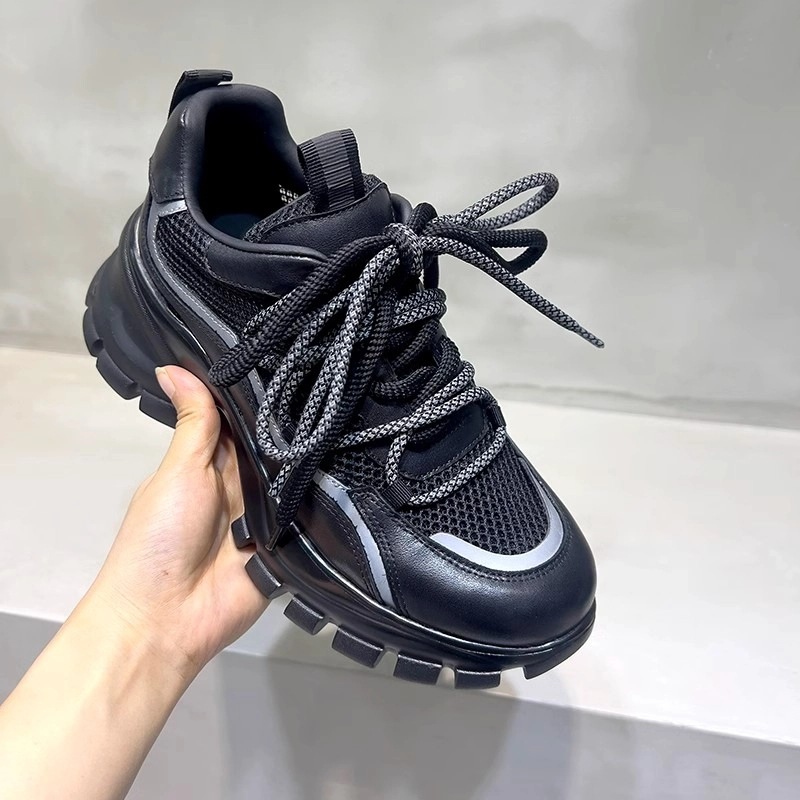 [달가을 행인] 새로운 정품 가죽 증가 조커 두꺼운 밑창 실버 토레 신발 2024 년 봄 여성 운동화스토어 가기