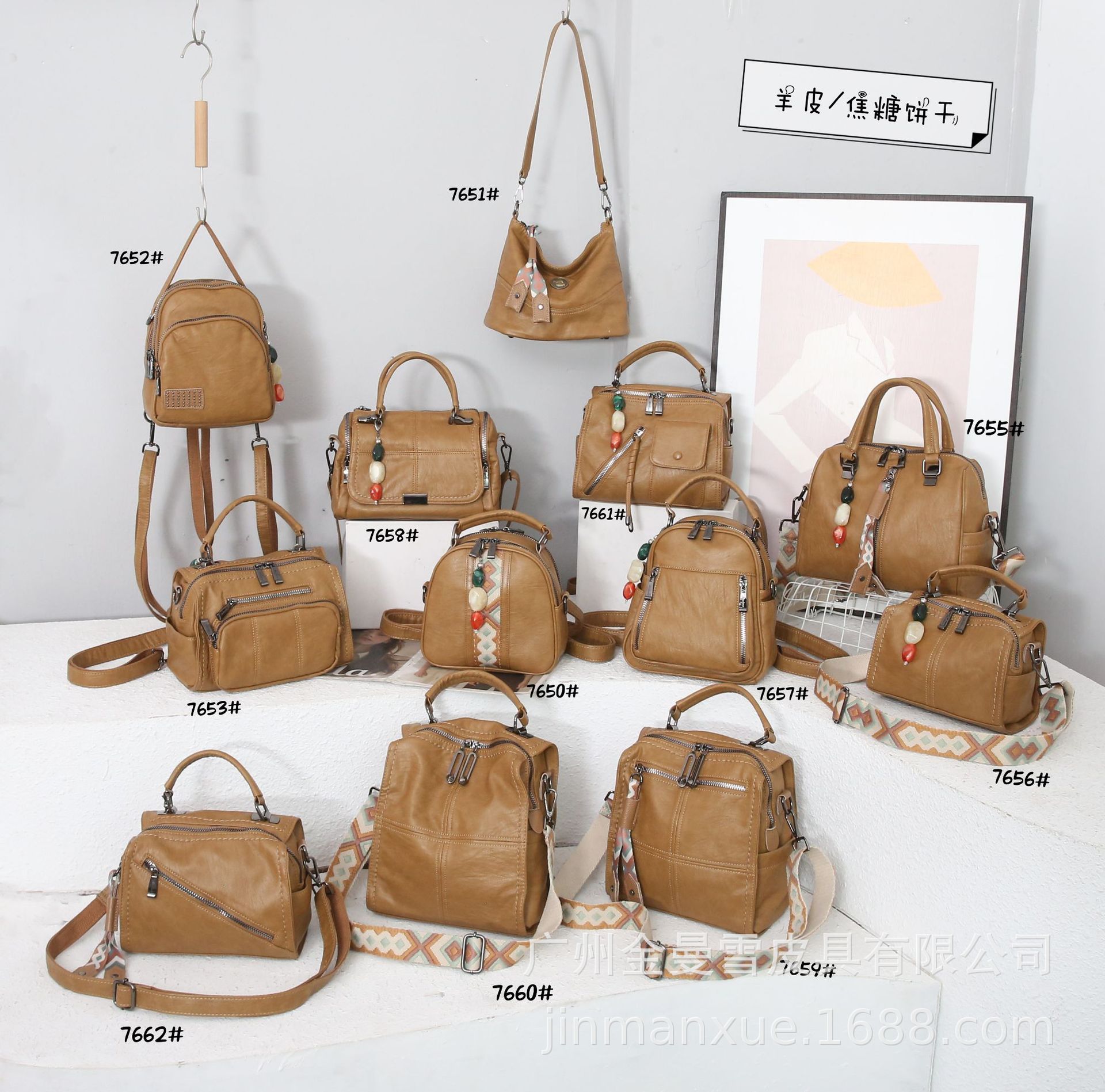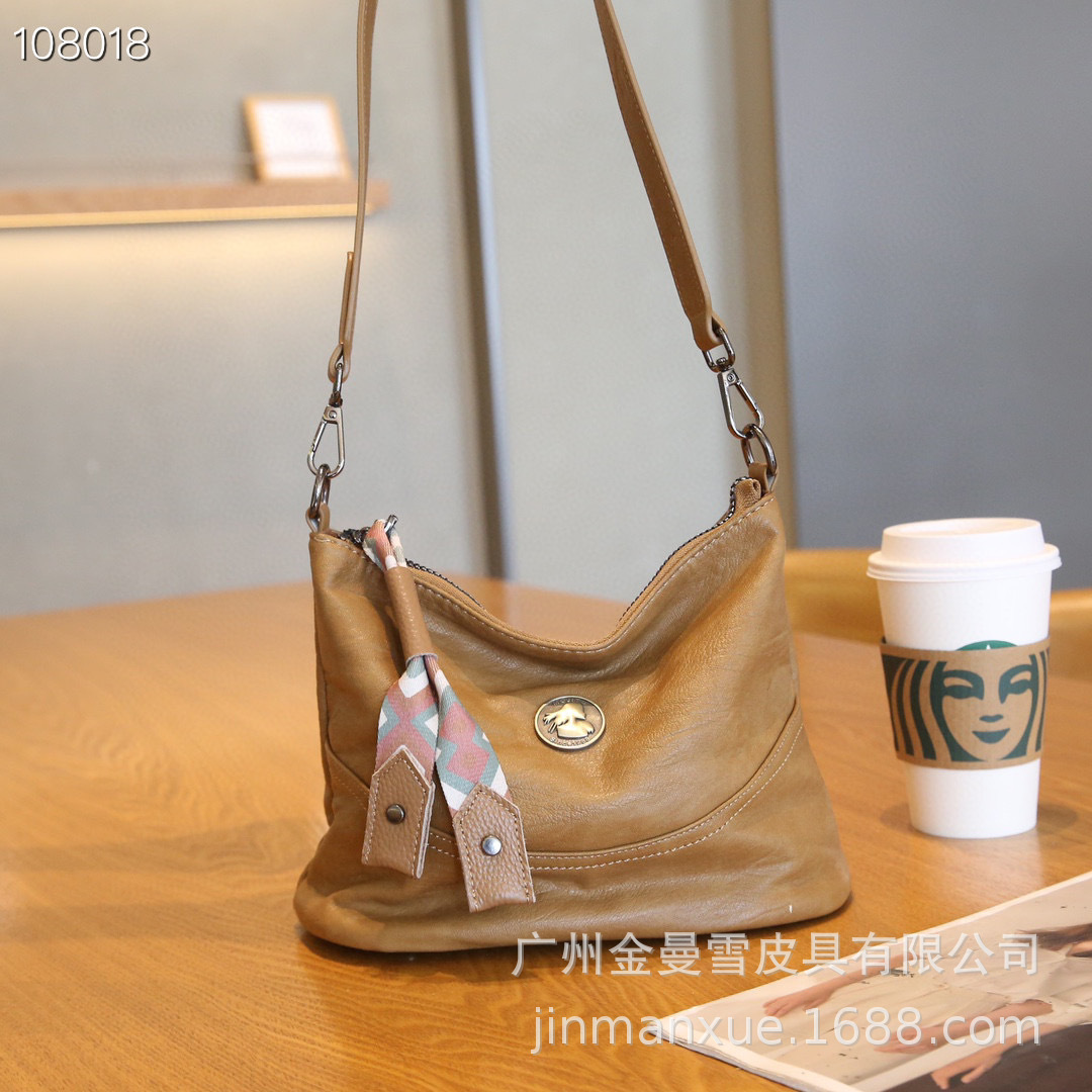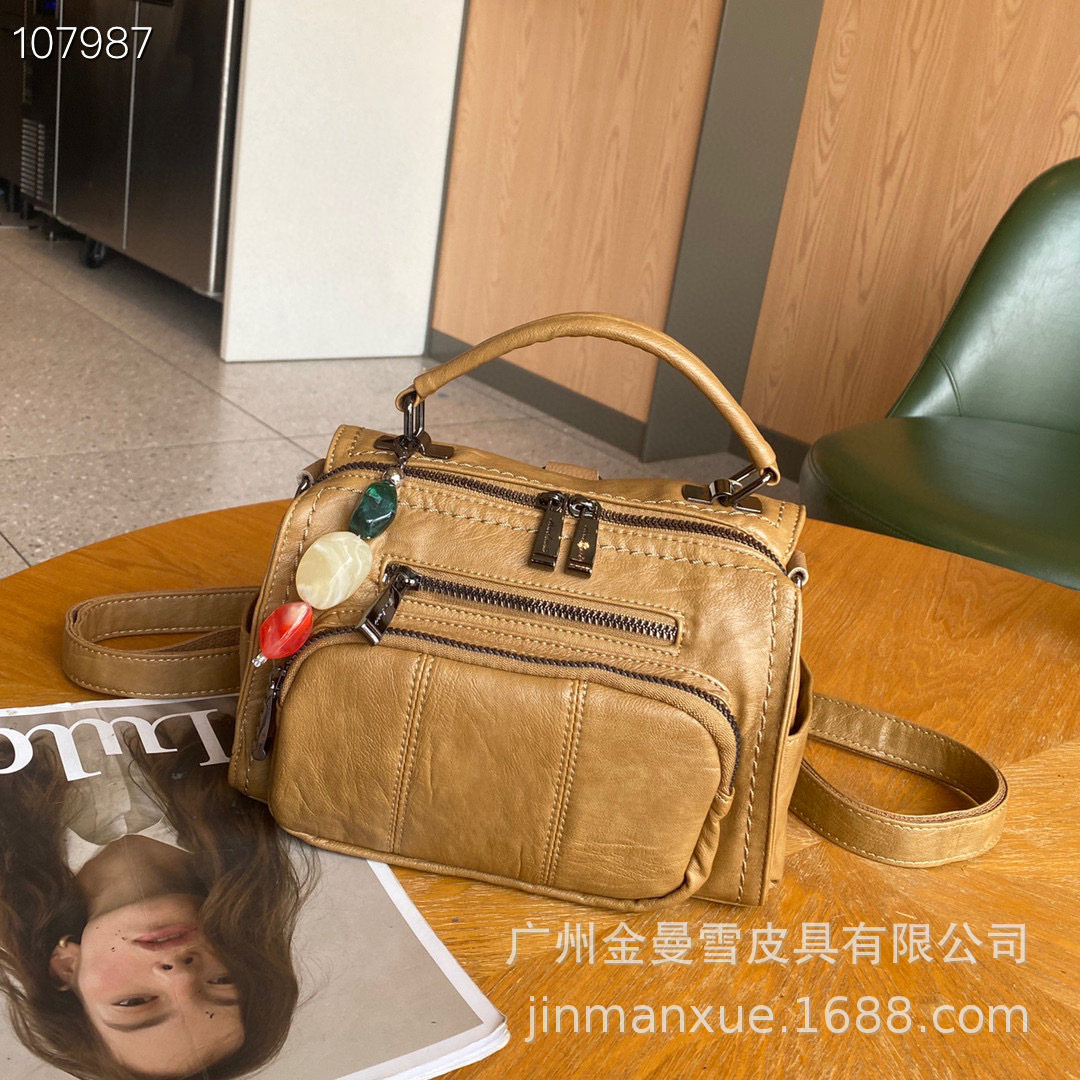2025년 신상 양가죽 카라멜 비스킷 오리지널 컬리지 스타일 레트로 심플 크로스백 캐주얼 숄더백스토어 가기