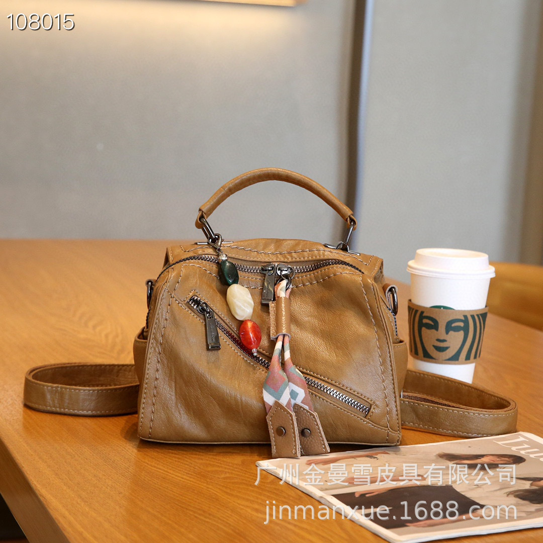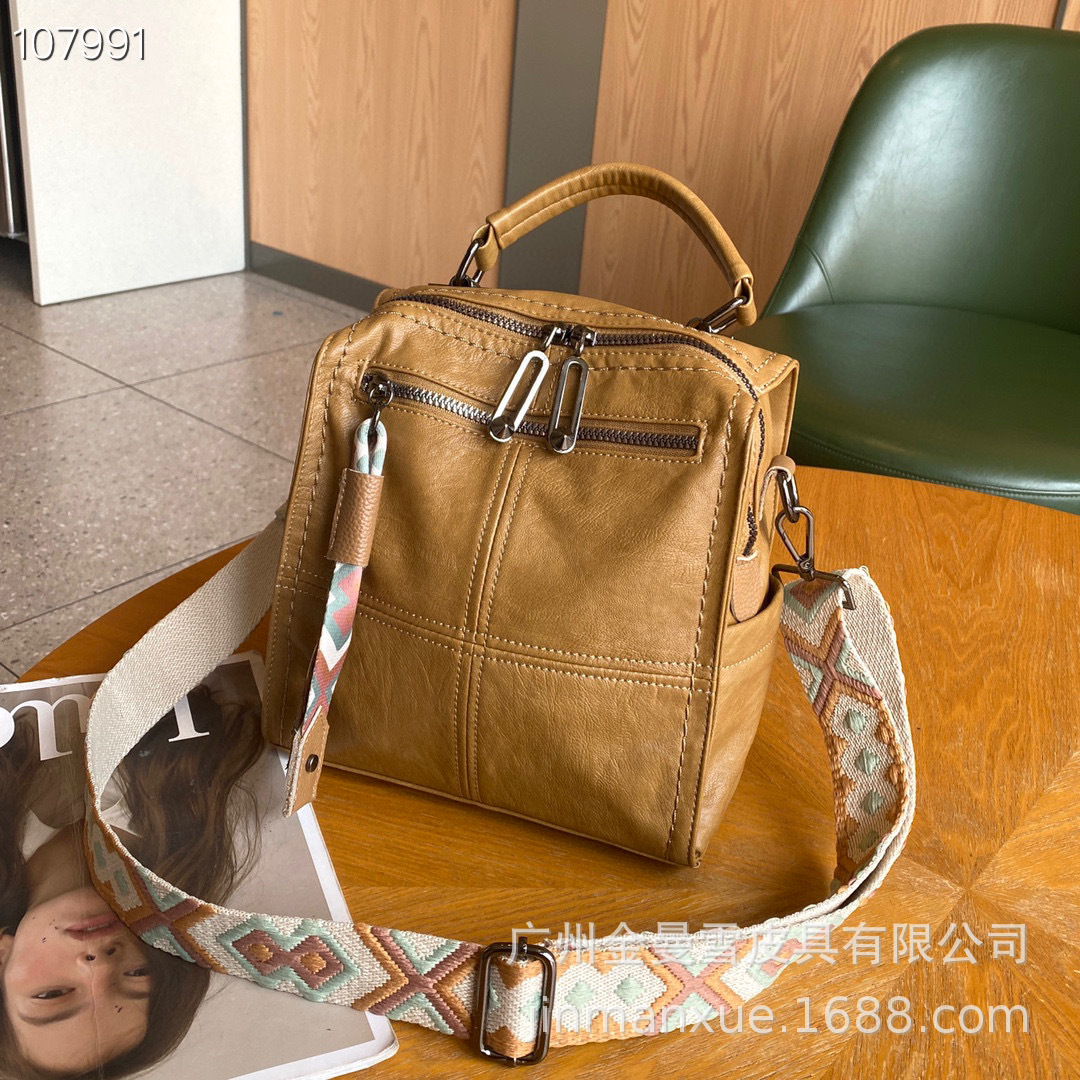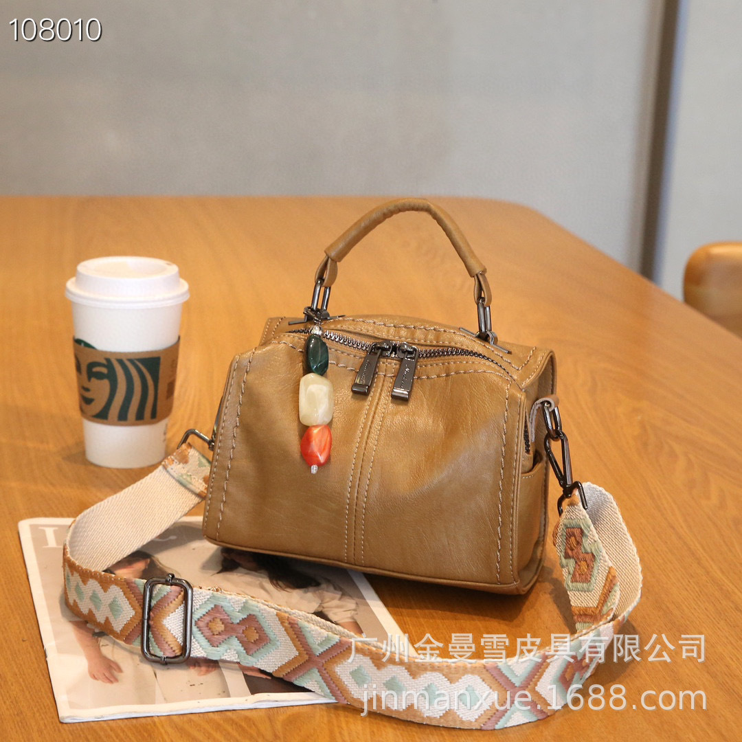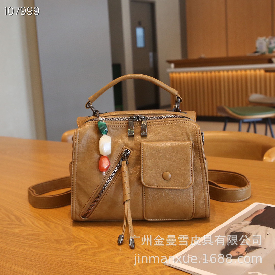 2025년 신상 양가죽 카라멜 비스킷 오리지널 컬리지 스타일 레트로 심플 크로스백 캐주얼 숄더백스토어 가기