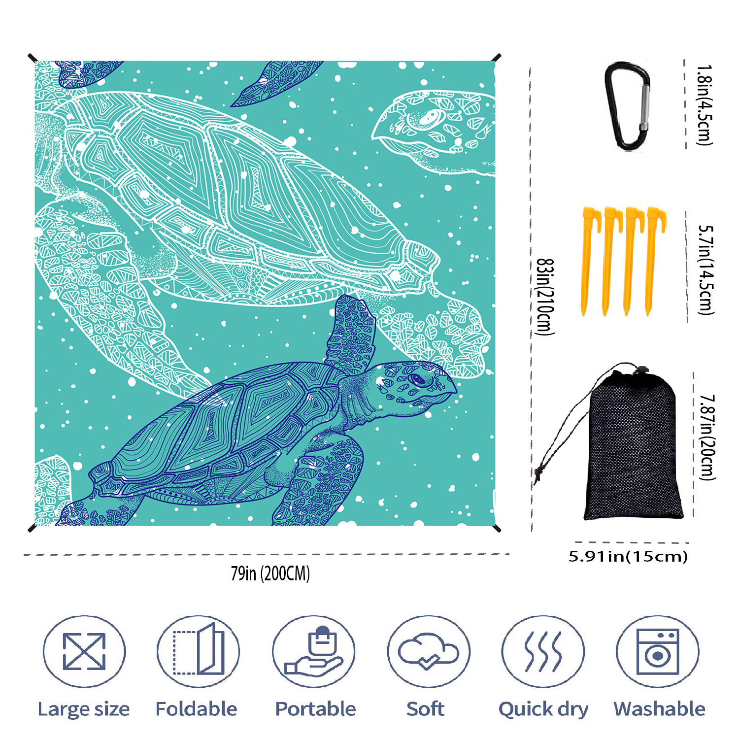 • 녹색 배경 파란색과 흰색 거북이 200*210CM (검은색 메쉬 가방)