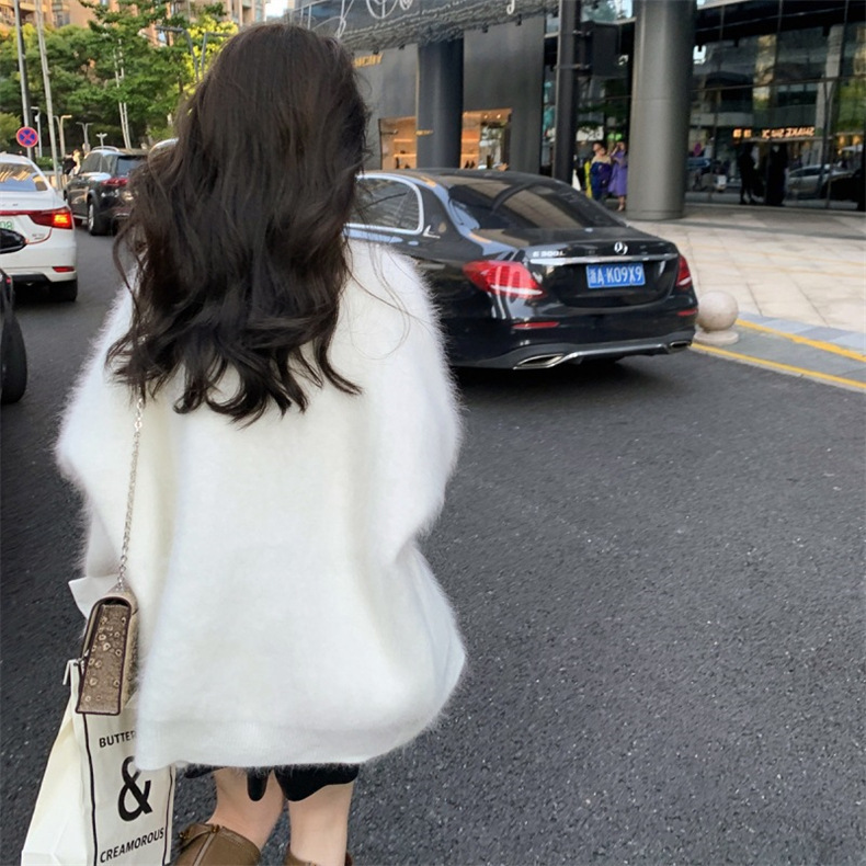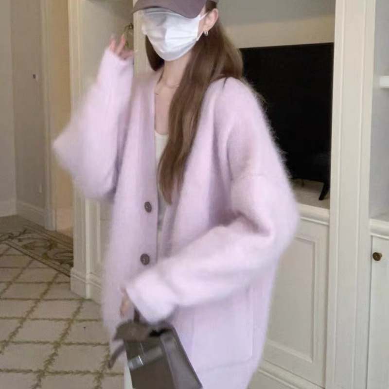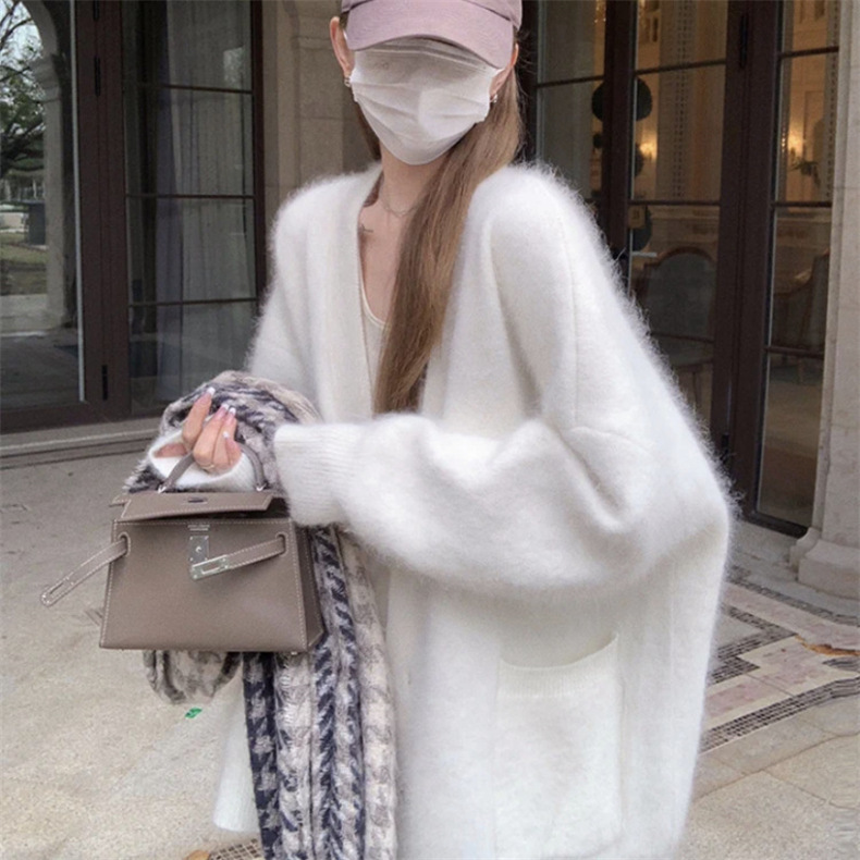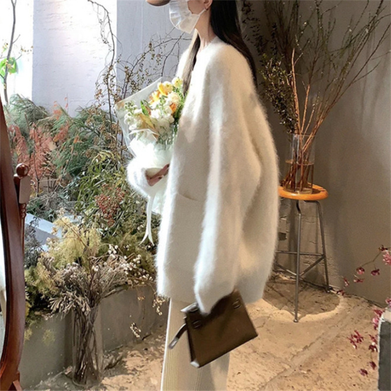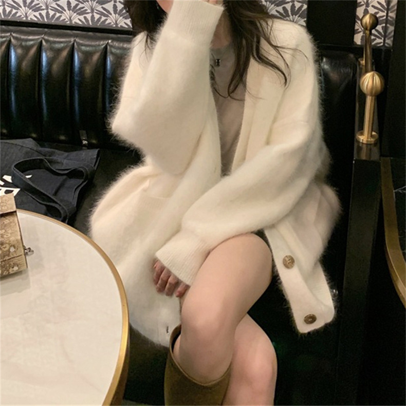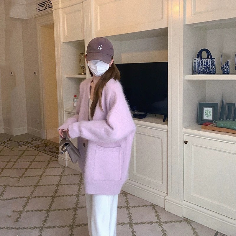 모조 밍크 반팔 벨벳 부드러운 스웨터 재킷 여성용 가을 겨울 신상품 부드럽고 여유로운 중간 길이 루즈핏 가디건스토어 가기
