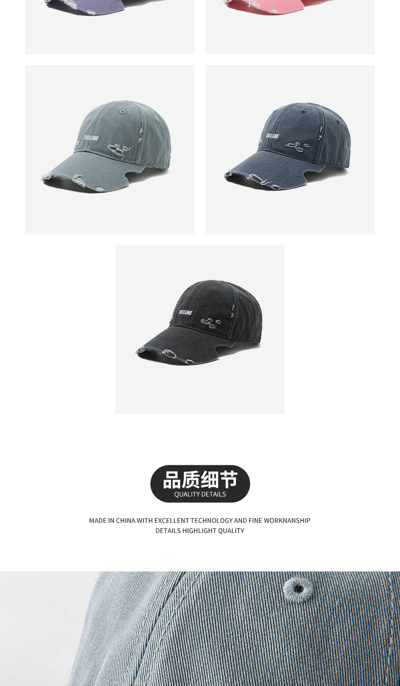 빈티지 씻은 구멍 야구 모자 패션 데님 일본 스타일 거리 골동품 트렌디 인 소프트 탑 캡 차양 모자스토어 가기