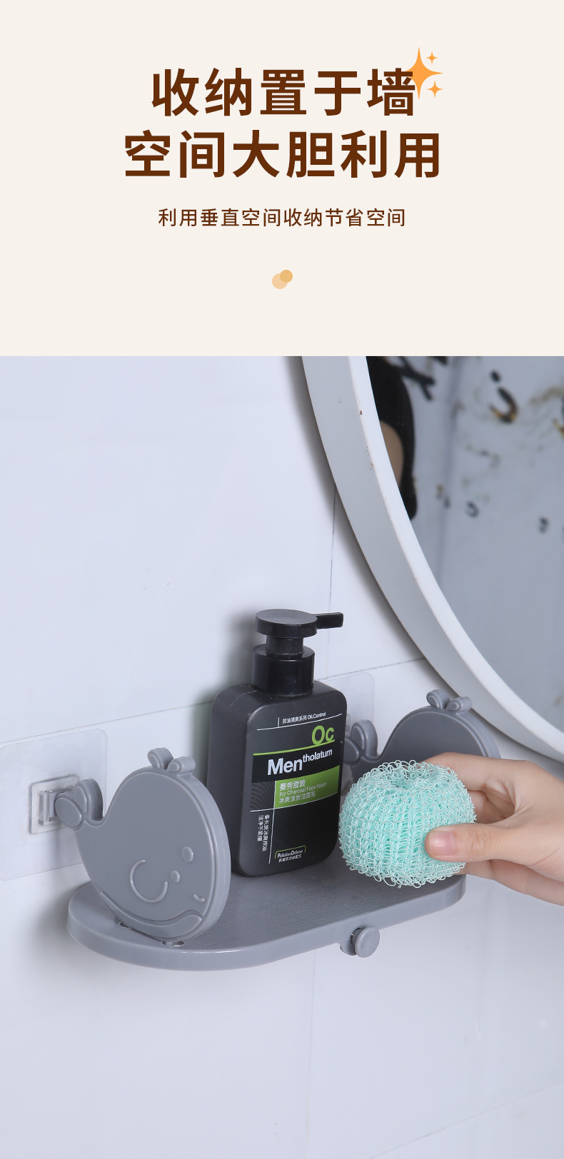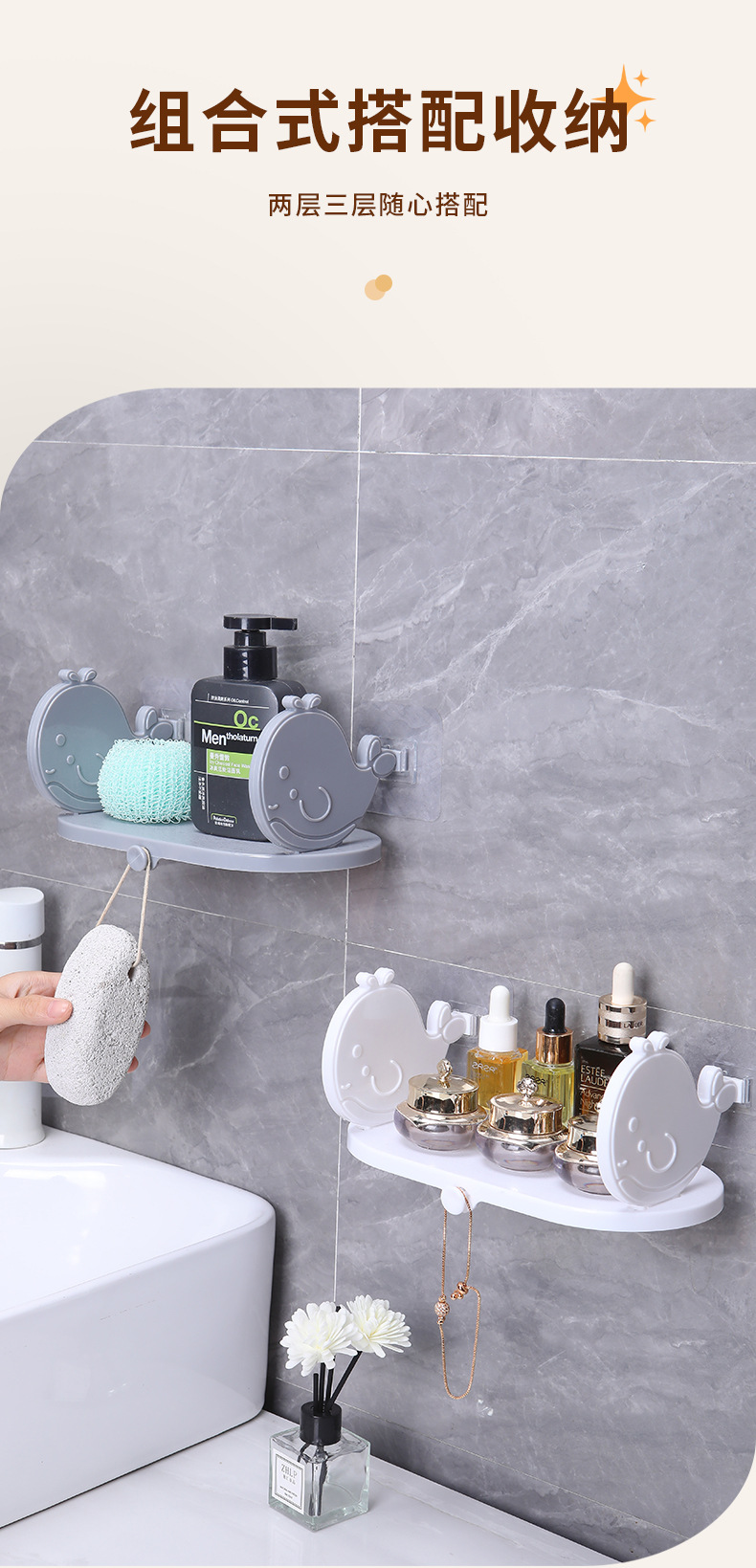 펀치없는 욕실 작은 금붕어 저장 랙 욕실 벽걸이 형 세면대 목욕 세면대 화장품 보관 랙