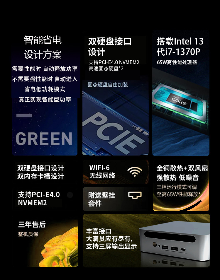 새로운 13 세대 코어 미니 호스트 i7-1370P ES 에디션 상업용 사무실 산업 제어 데스크탑 미니 MIN 컴퓨터