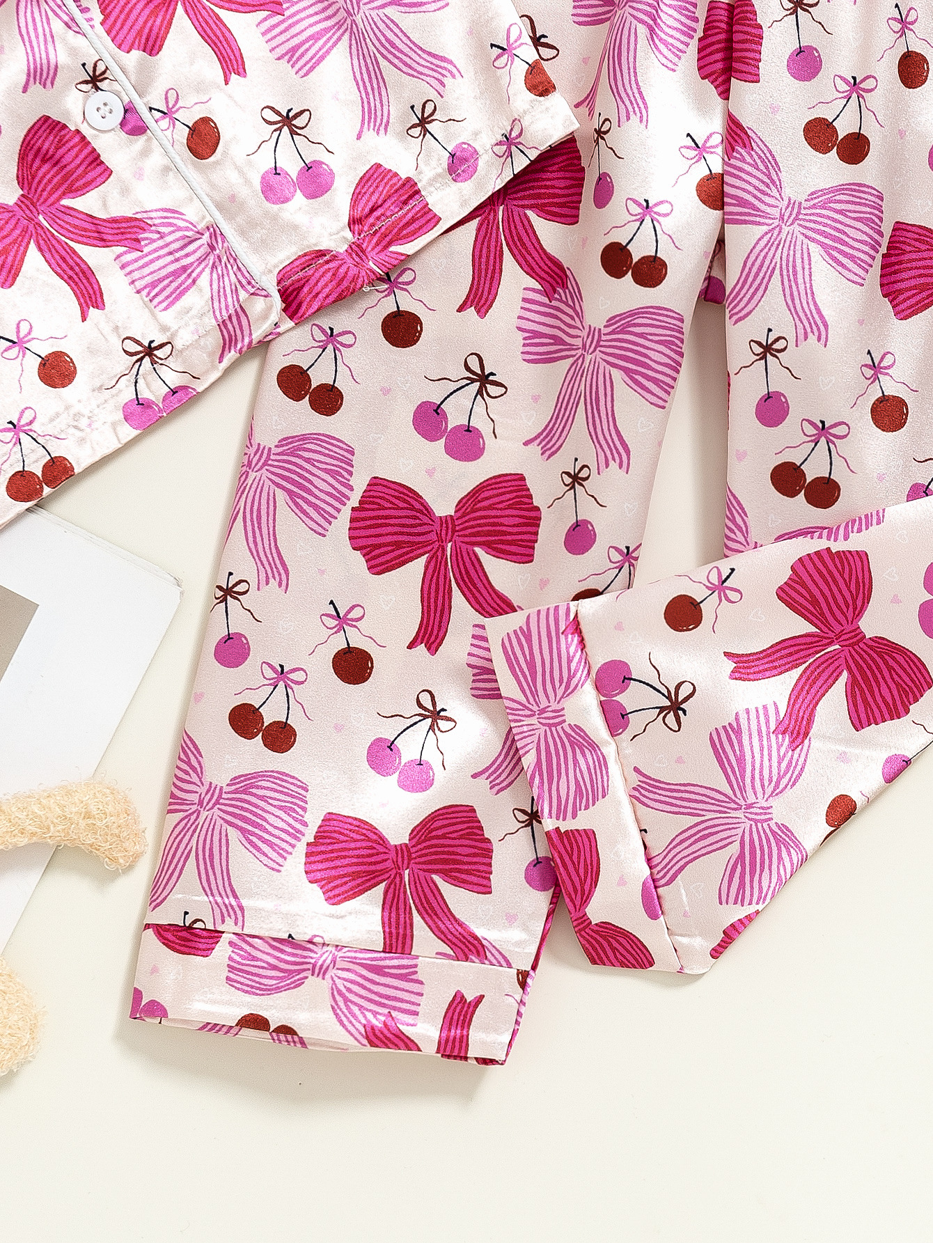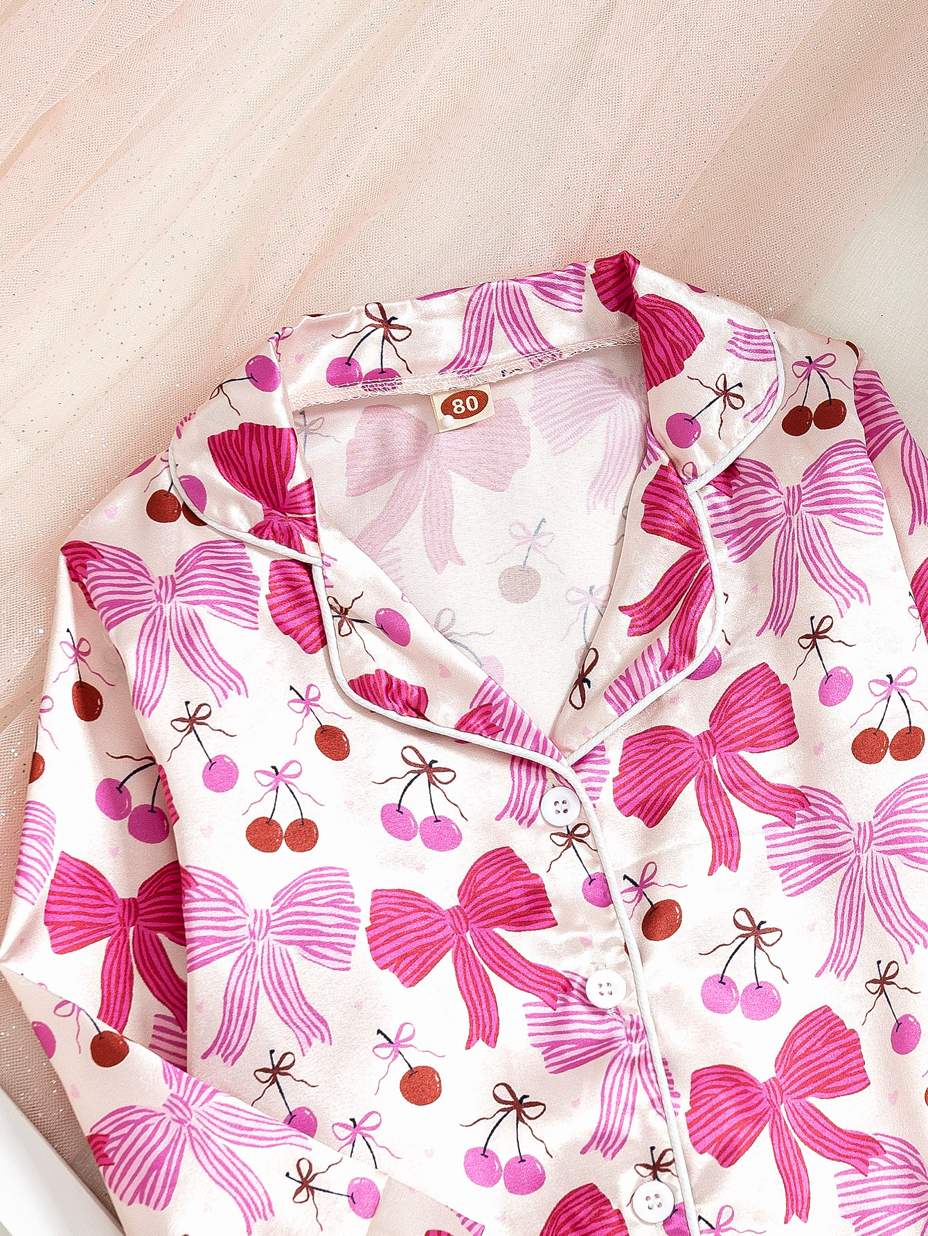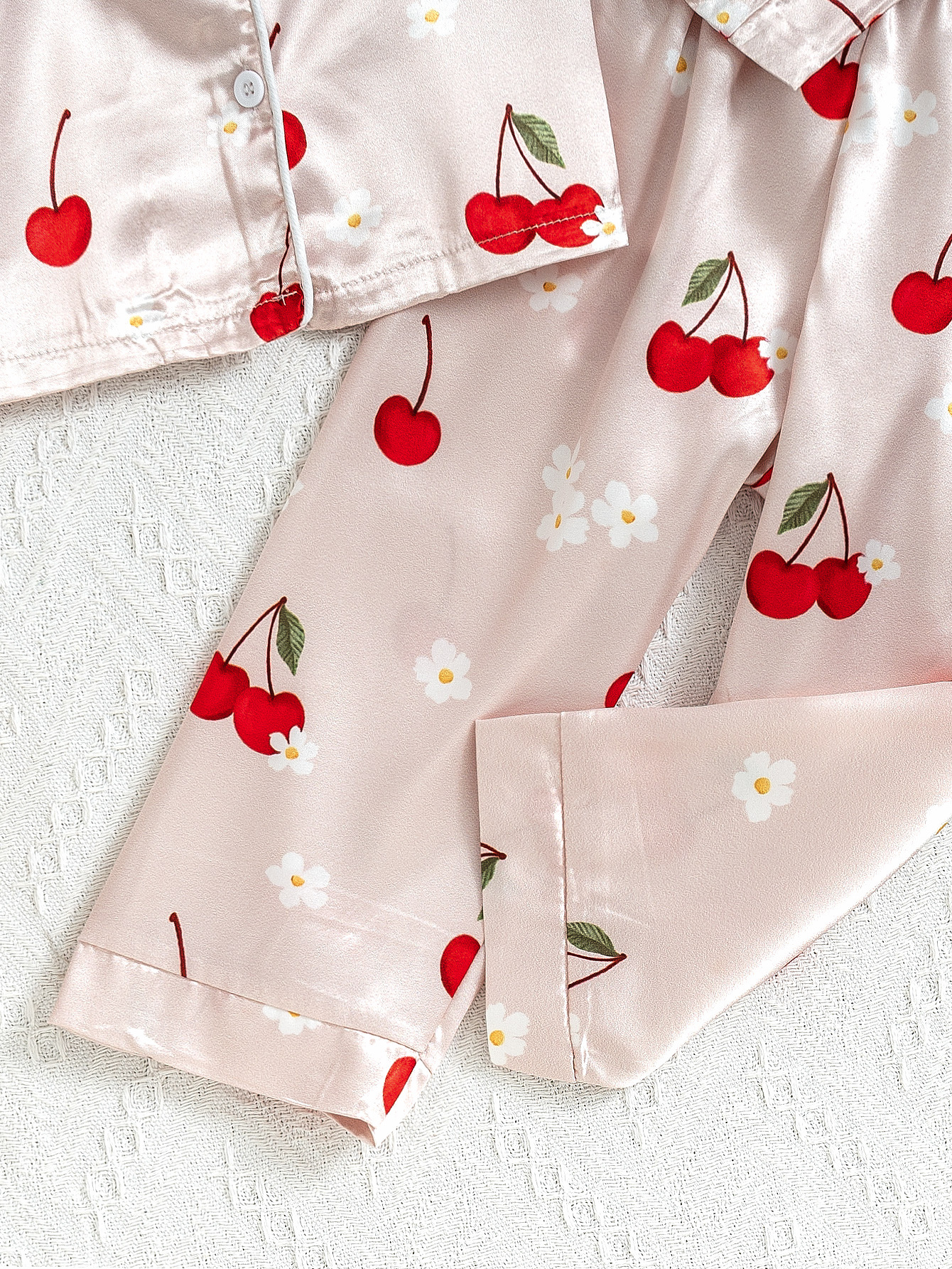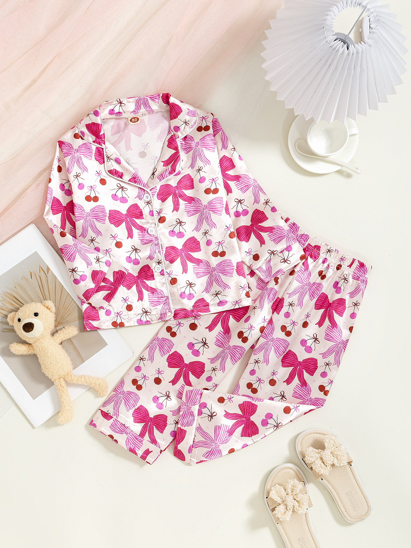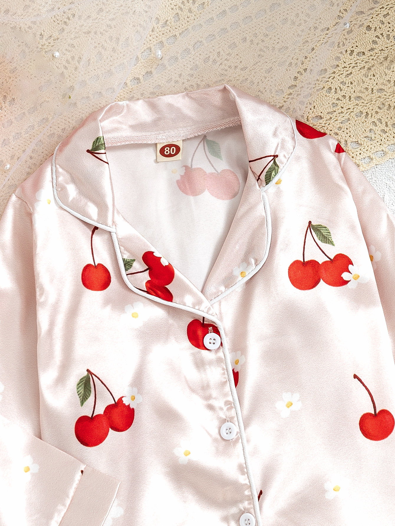 국경 간 소녀 잠옷 봄과 가을 아기 활 체리 인쇄 긴 소매 카디건 홈 의류 세트 어린이 수면