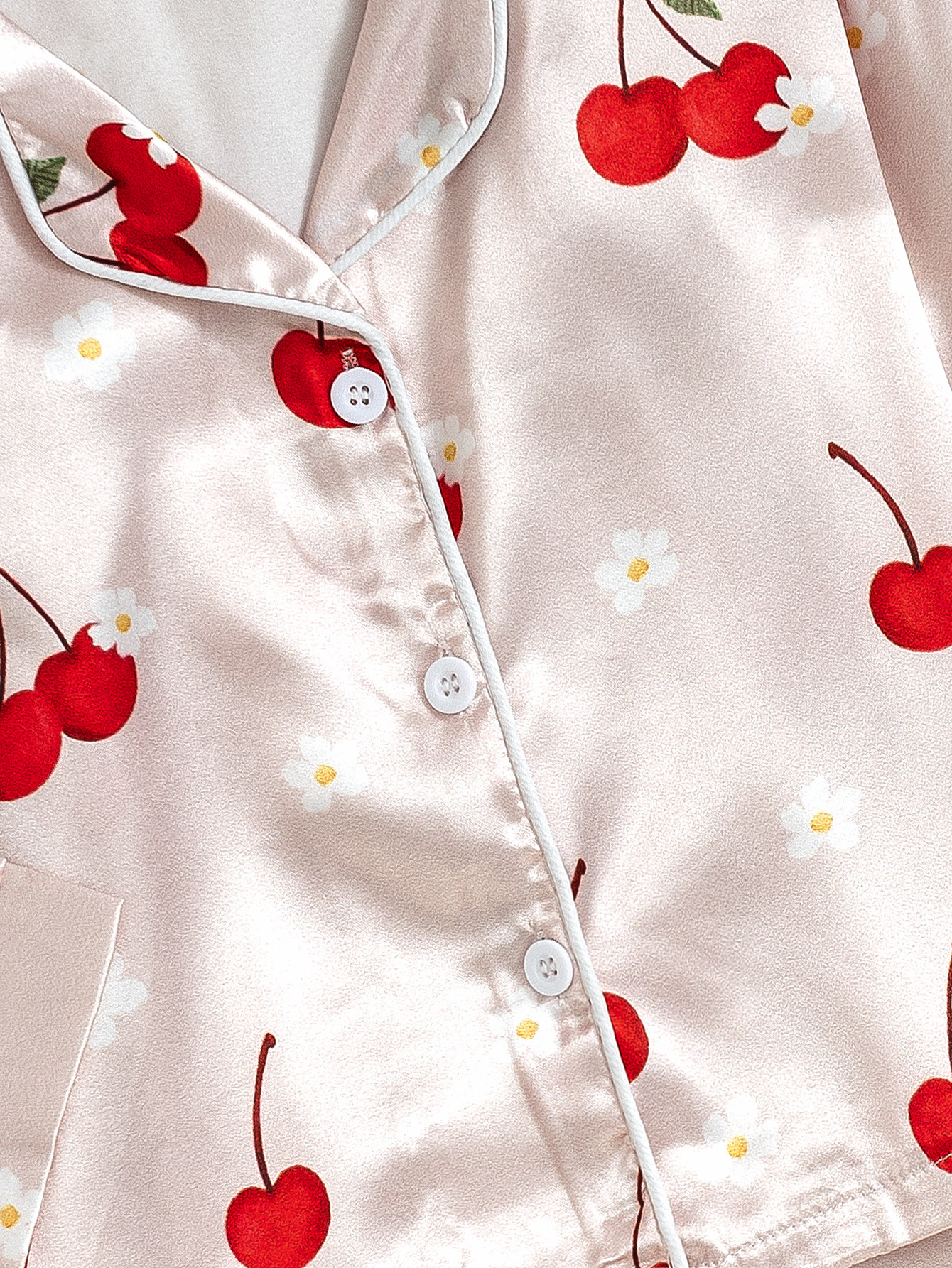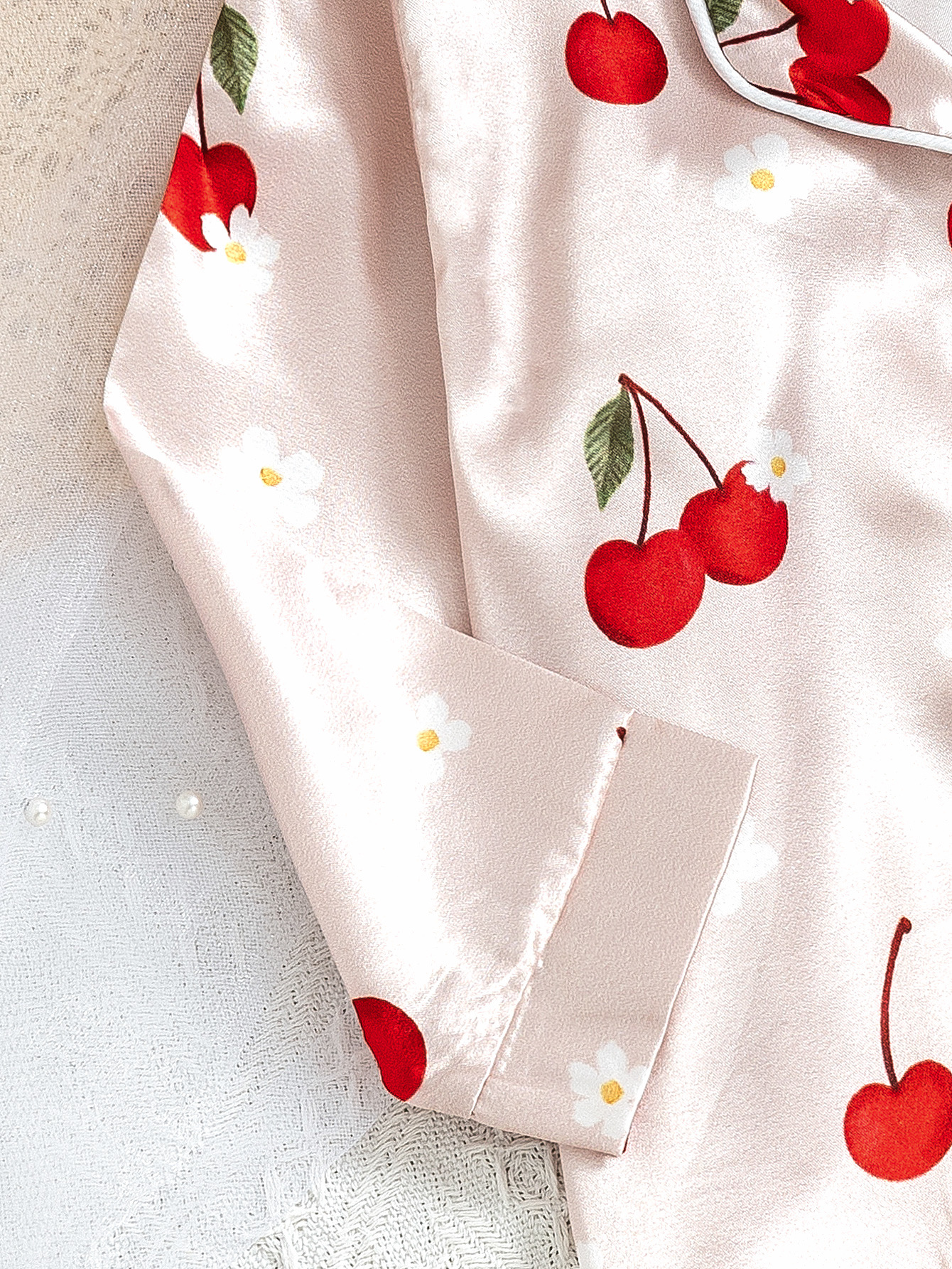 국경 간 소녀 잠옷 봄과 가을 아기 활 체리 인쇄 긴 소매 카디건 홈 의류 세트 어린이 수면스토어 가기