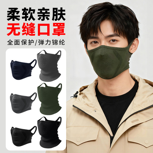 跨境骑行保暖面罩无缝锦纶电动车防风围脖男女款全脸透气防寒口罩