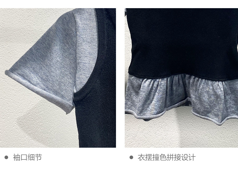 Xiaozhong 2024 봄과 여름 새로운 스티칭베이스 셔츠 탑 캐주얼 풀오버 가짜 여성용 반팔 스웨터