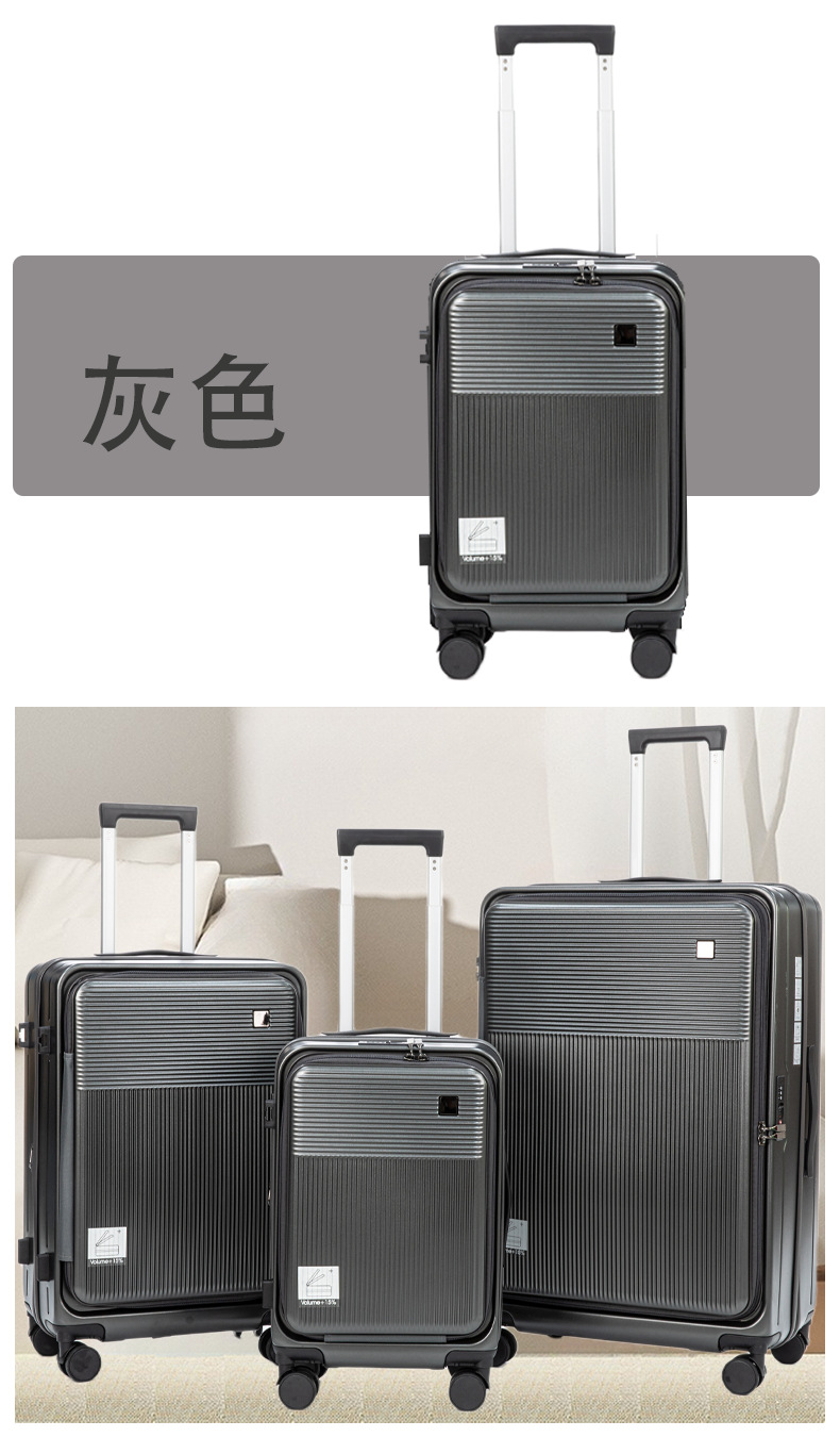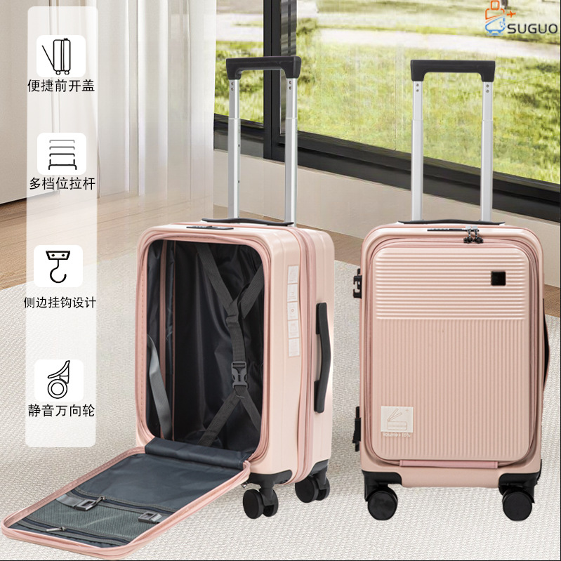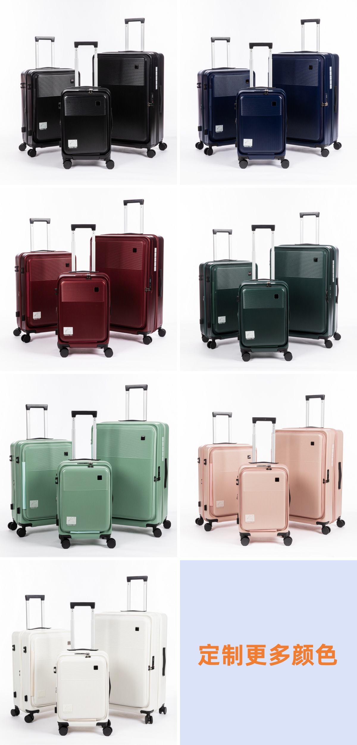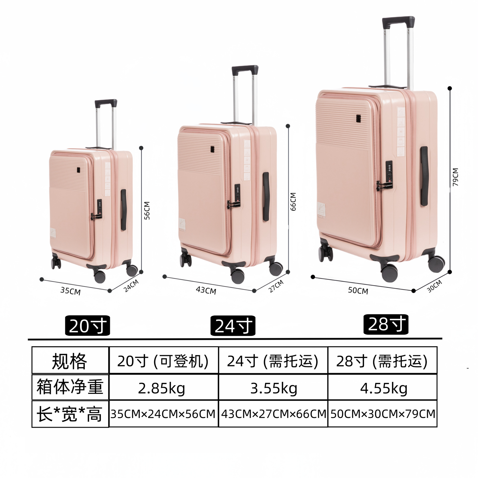 2024 새로운 PC 다기능 트롤리 케이스 20 인치 탑승 케이스 전면 오픈 뚜껑 지퍼 수하물 유니버설 휠 가방
