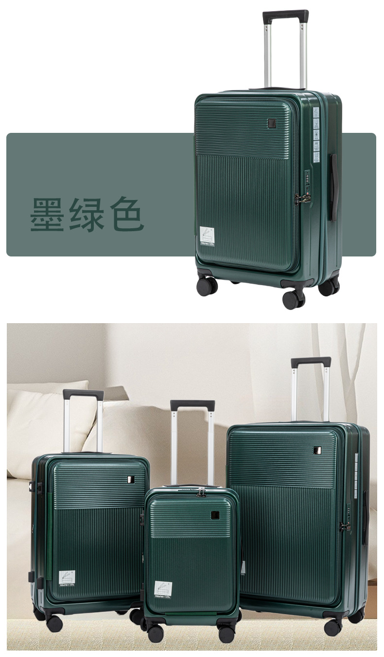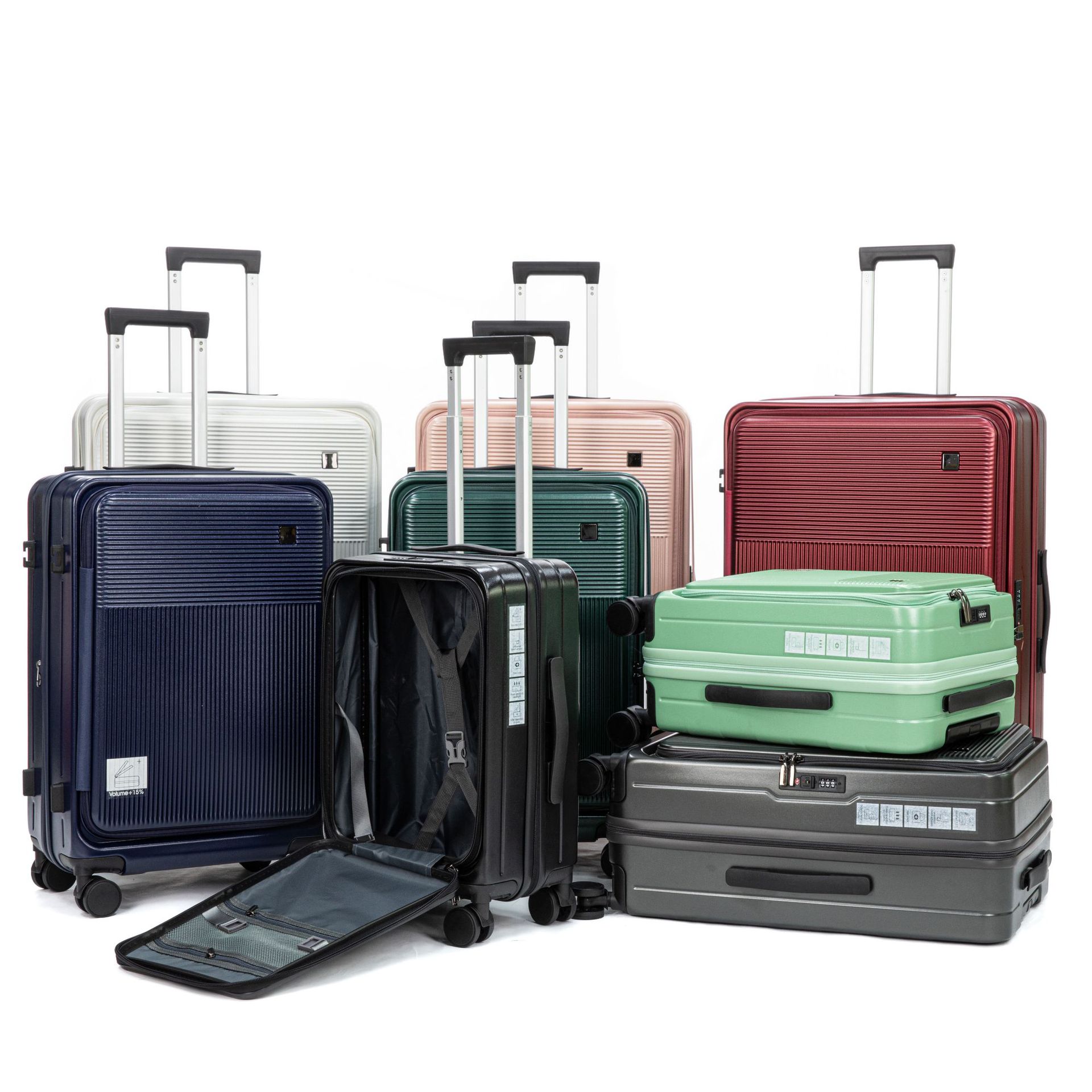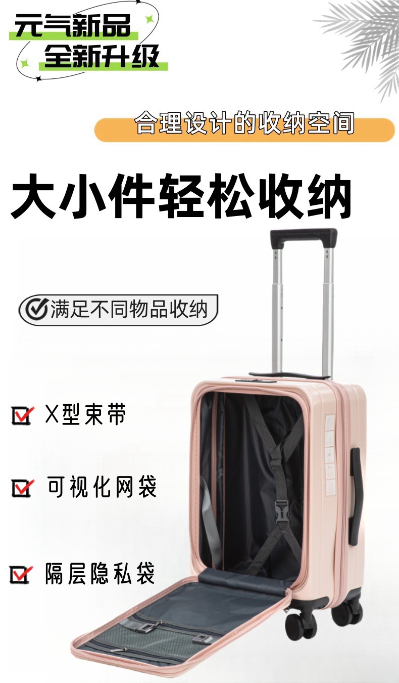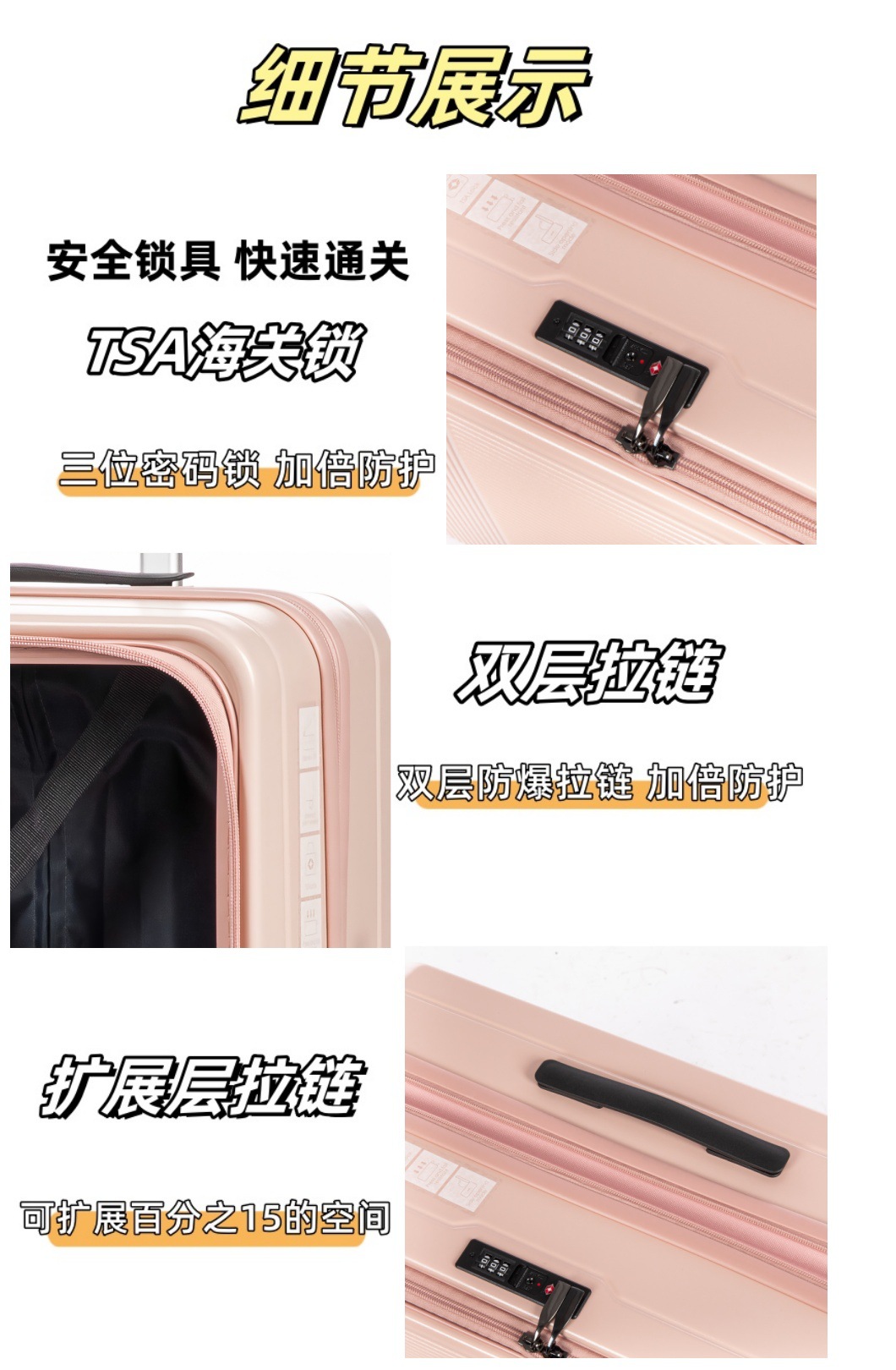 2024 새로운 PC 다기능 트롤리 케이스 20 인치 탑승 케이스 전면 오픈 뚜껑 지퍼 수하물 유니버설 휠 가방