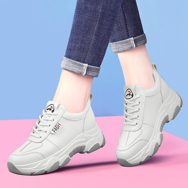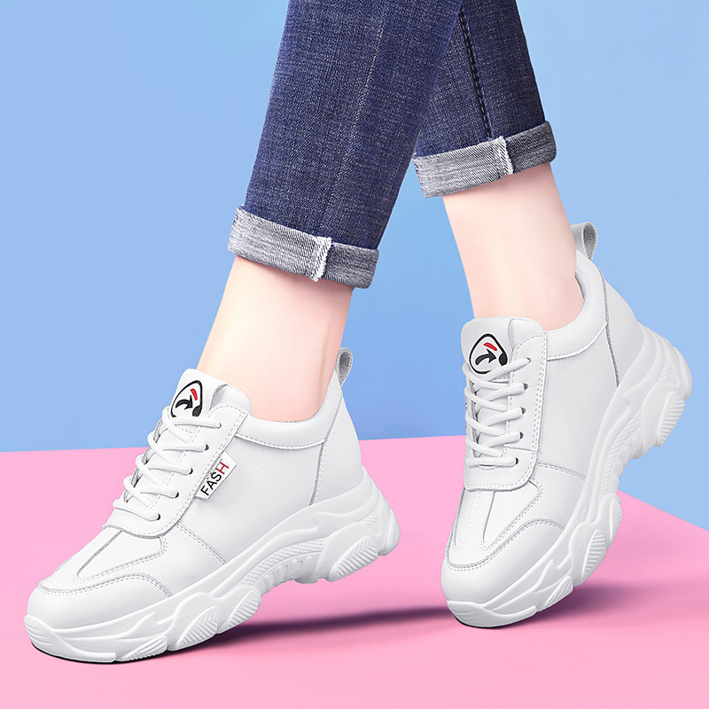 Shield Fox 정품 가죽 흰색 신발 여성 두꺼운 밑창 캐주얼 스포츠 신발 2022 봄 새로운 인기 여성 신발 다목적 58302스토어 가기