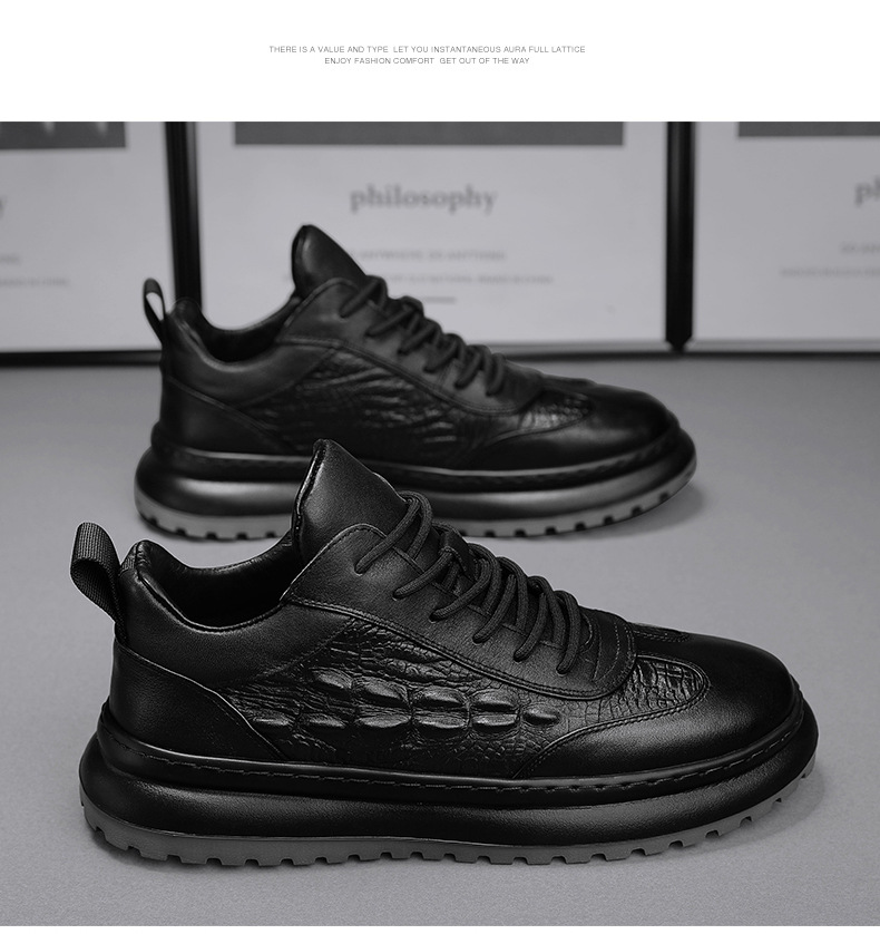 가을과 겨울 새로운 남성 비즈니스 캐주얼 가죽 신발 패션 악어 패턴 미끄럼 방지 주방 신발 운동화 남성용 트렌디 한 스케이트 신발