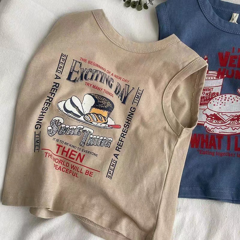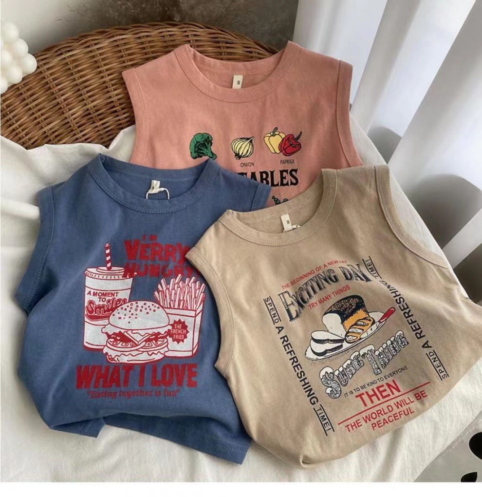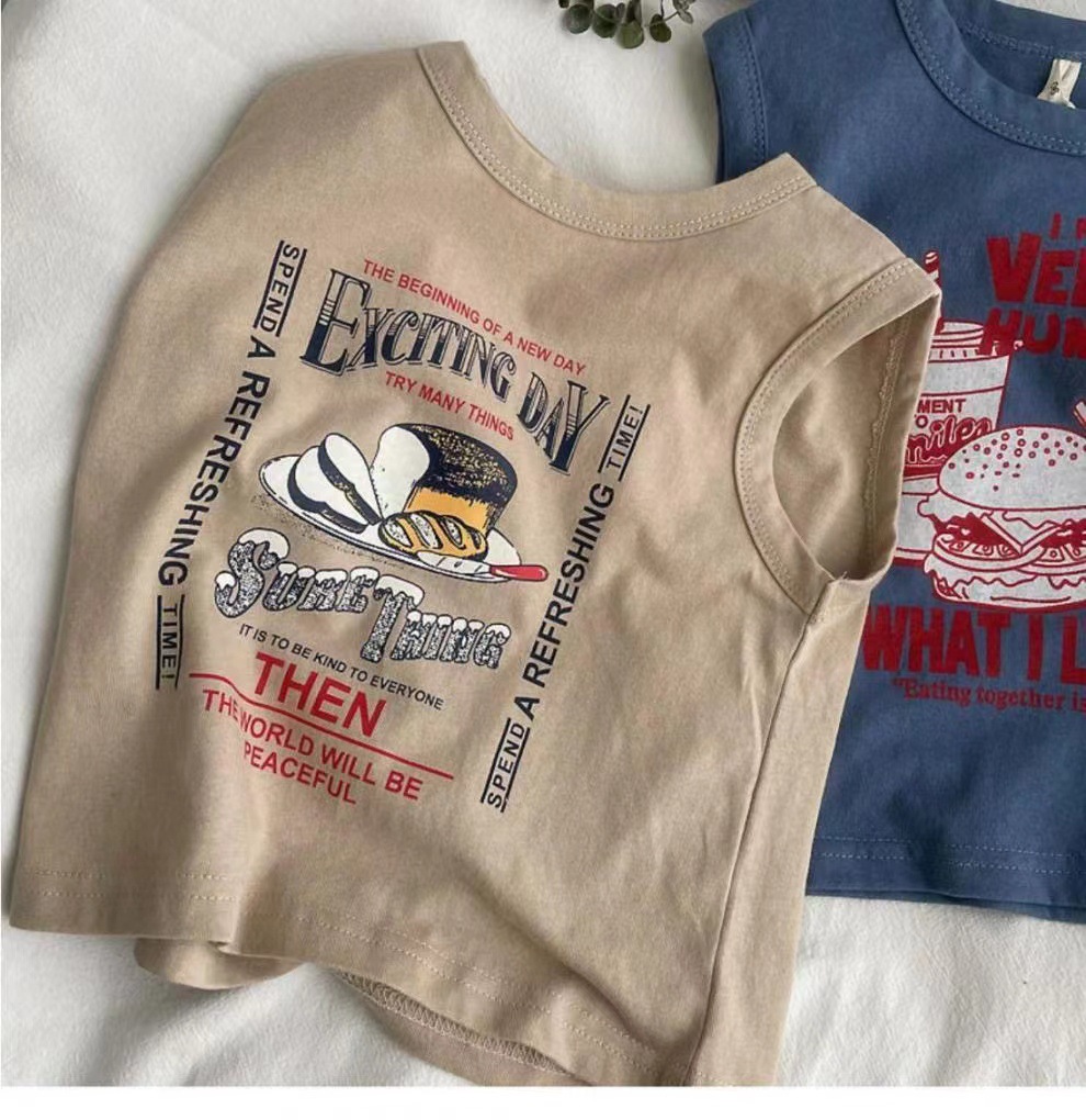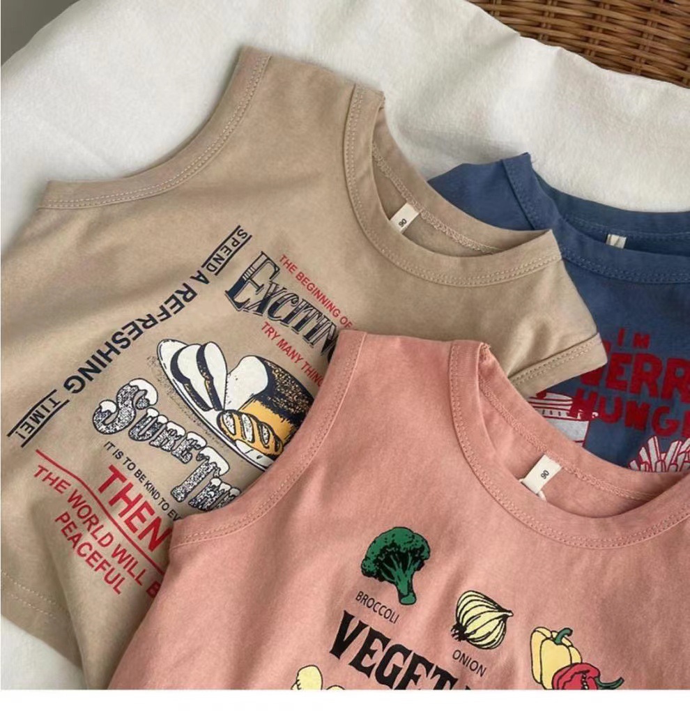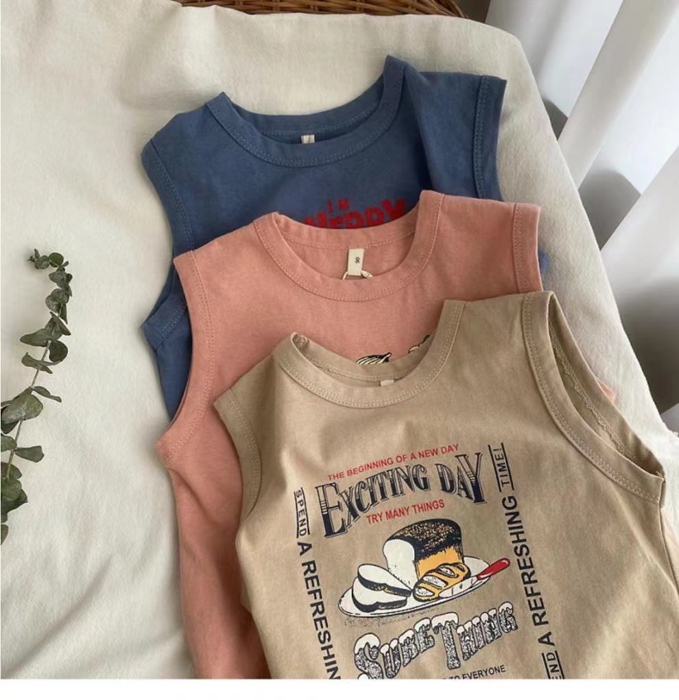 남자들의 민소매 조끼 티셔츠 코튼 여름 새 아동복 탑 루즈 소녀 베이비 아우터 착용 어린이 서양식스토어 가기
