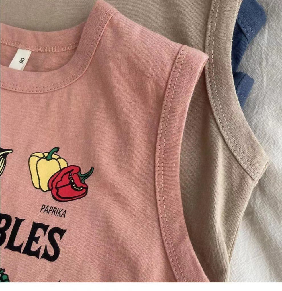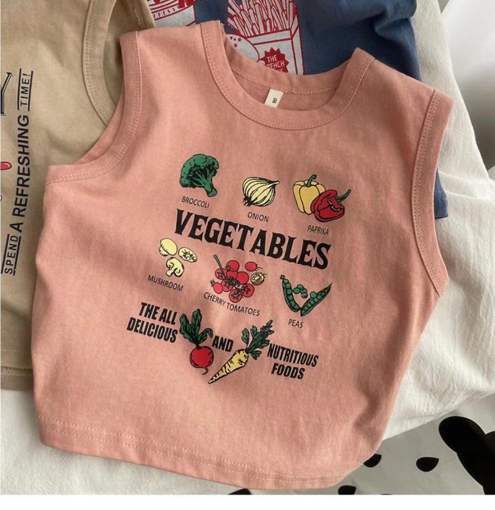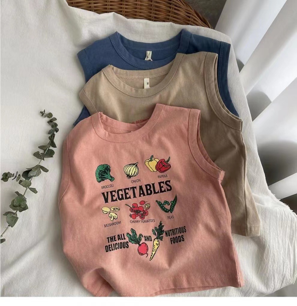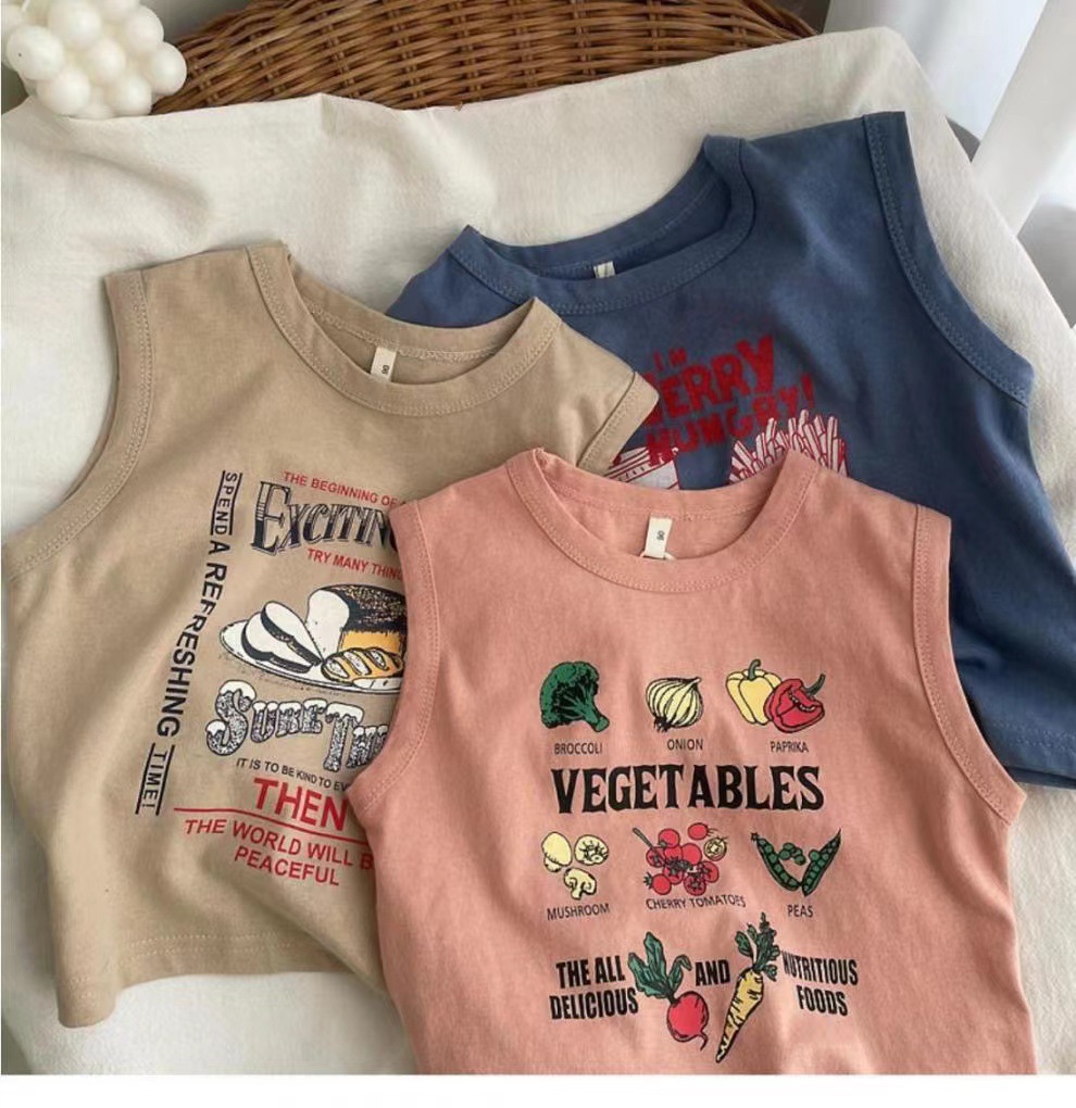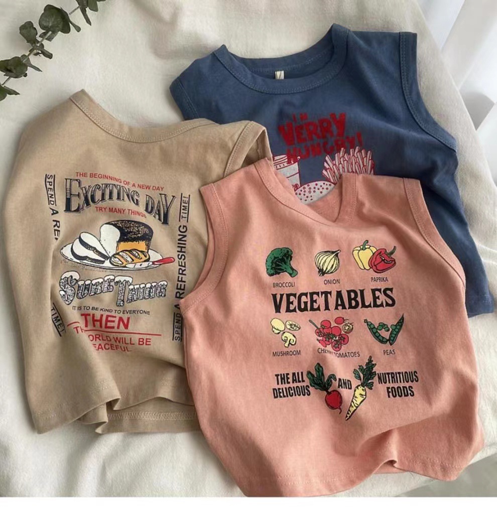 남자들의 민소매 조끼 티셔츠 코튼 여름 새 아동복 탑 루즈 소녀 베이비 아우터 착용 어린이 서양식스토어 가기