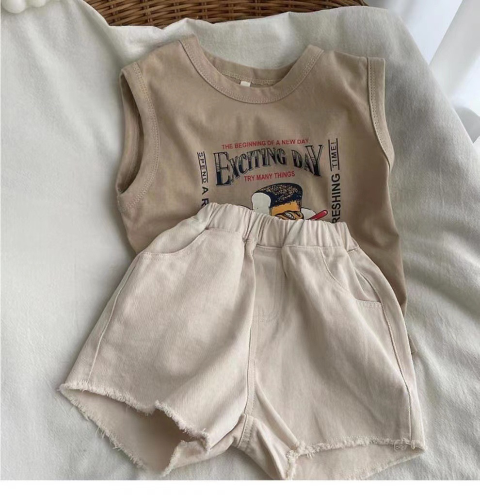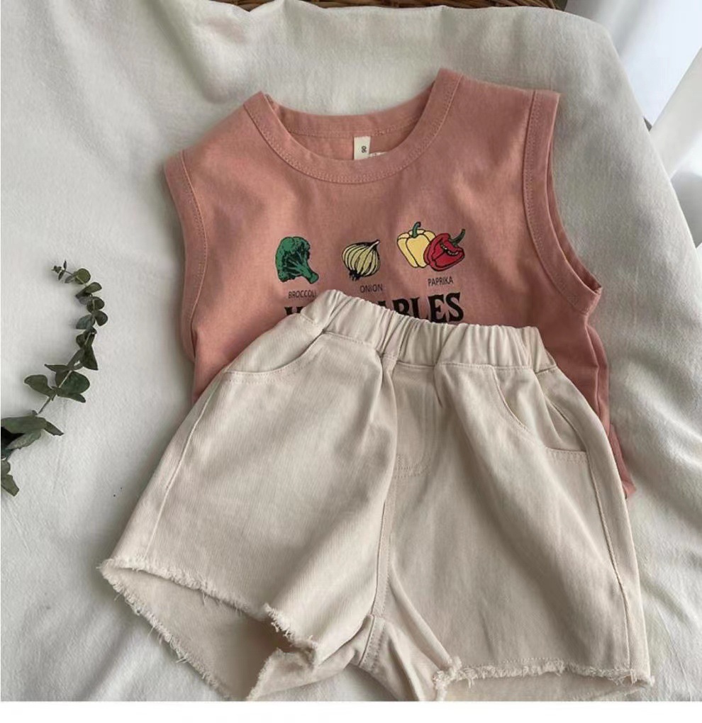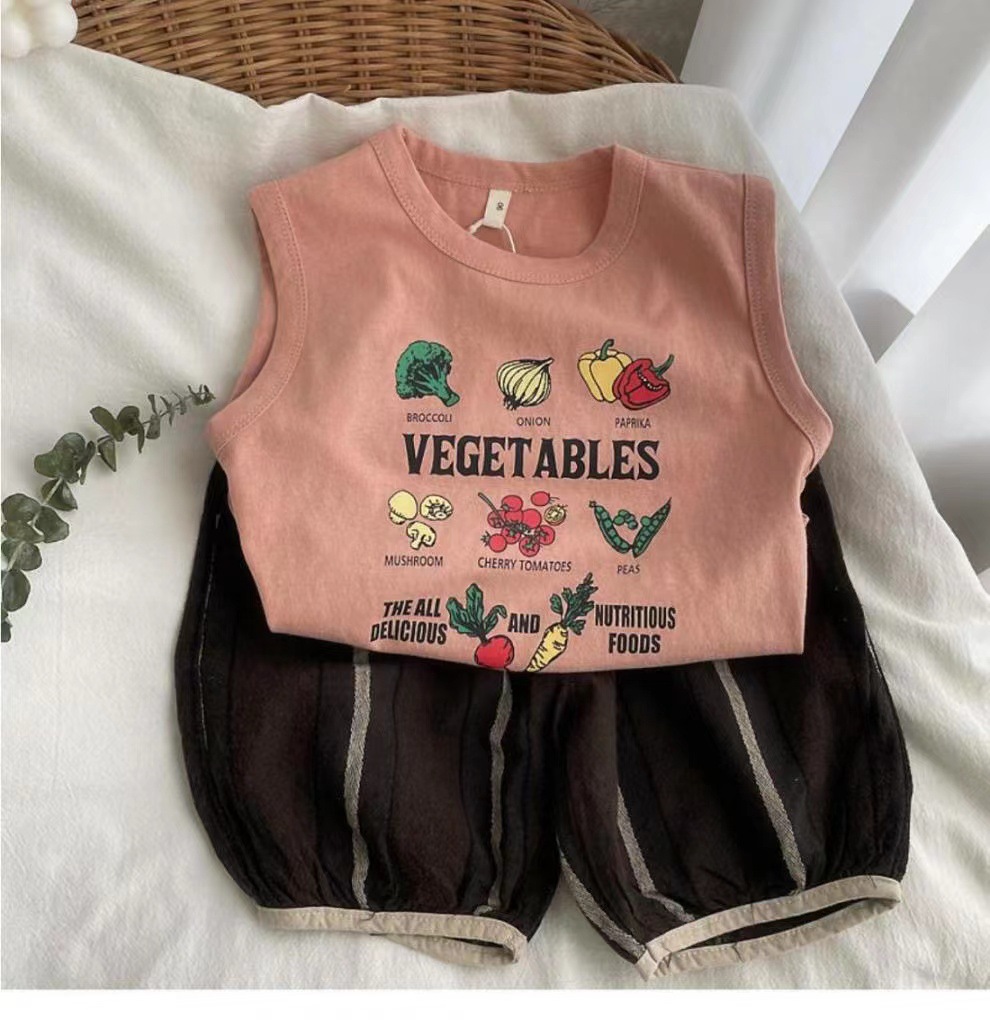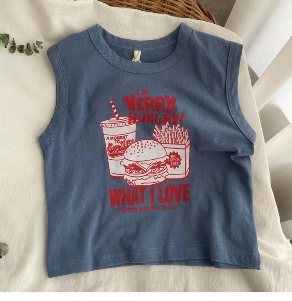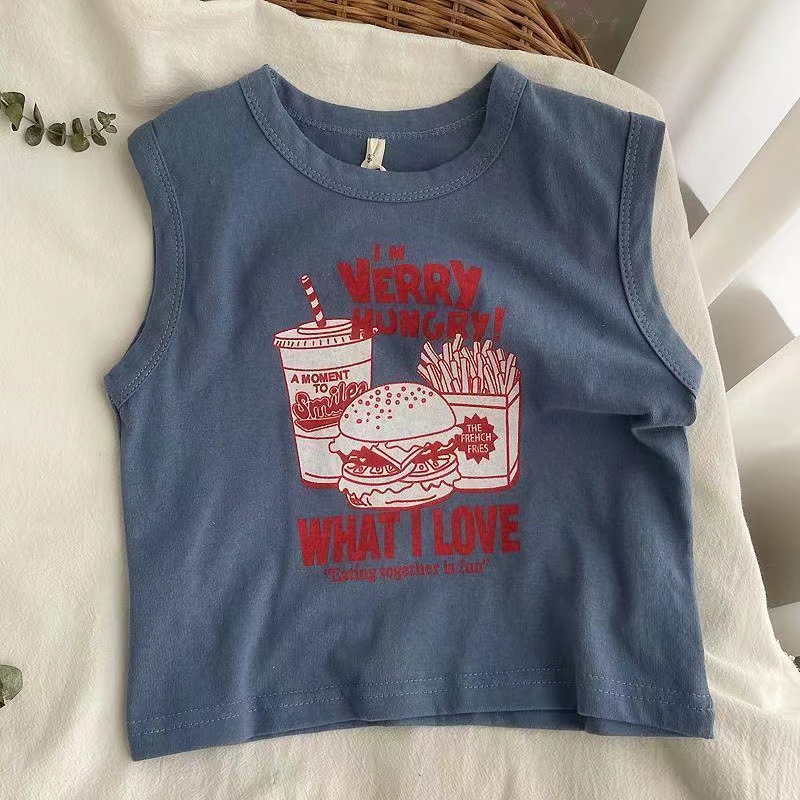 남자들의 민소매 조끼 티셔츠 코튼 여름 새 아동복 탑 루즈 소녀 베이비 아우터 착용 어린이 서양식스토어 가기