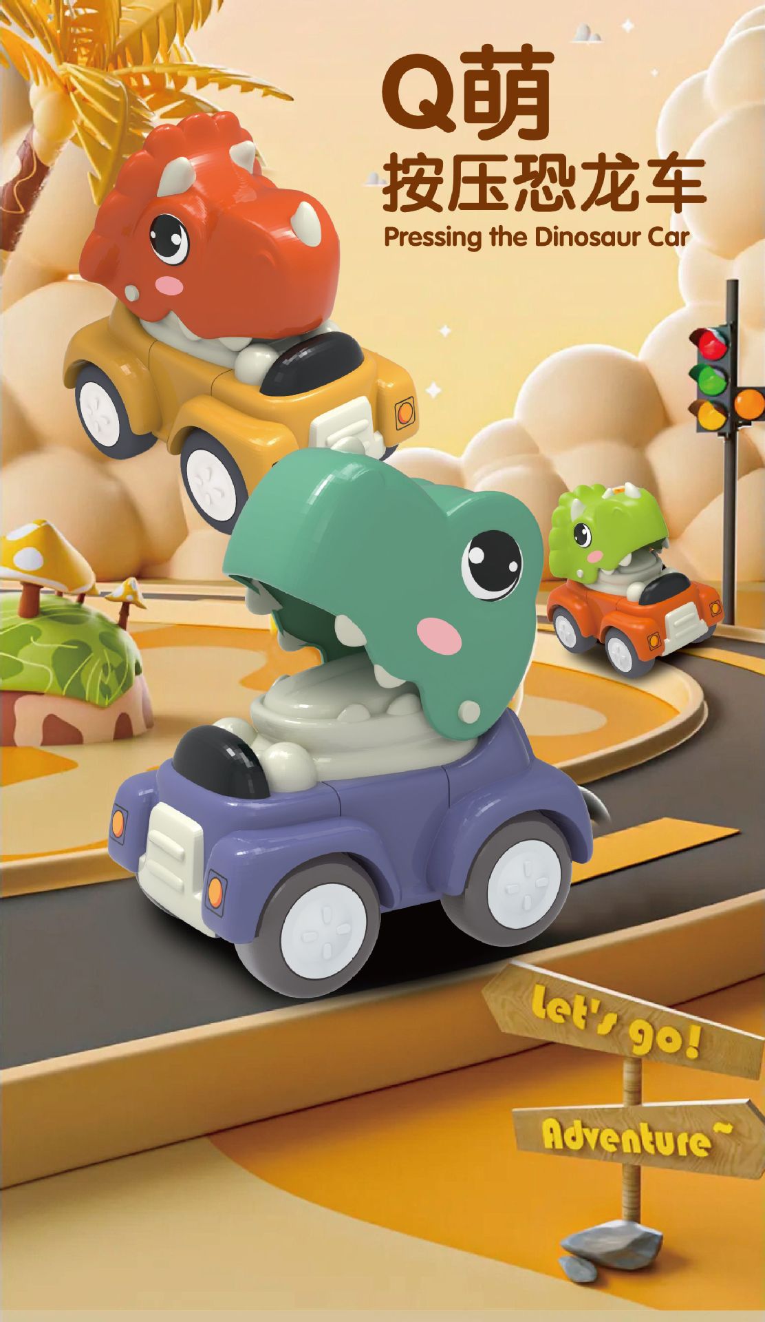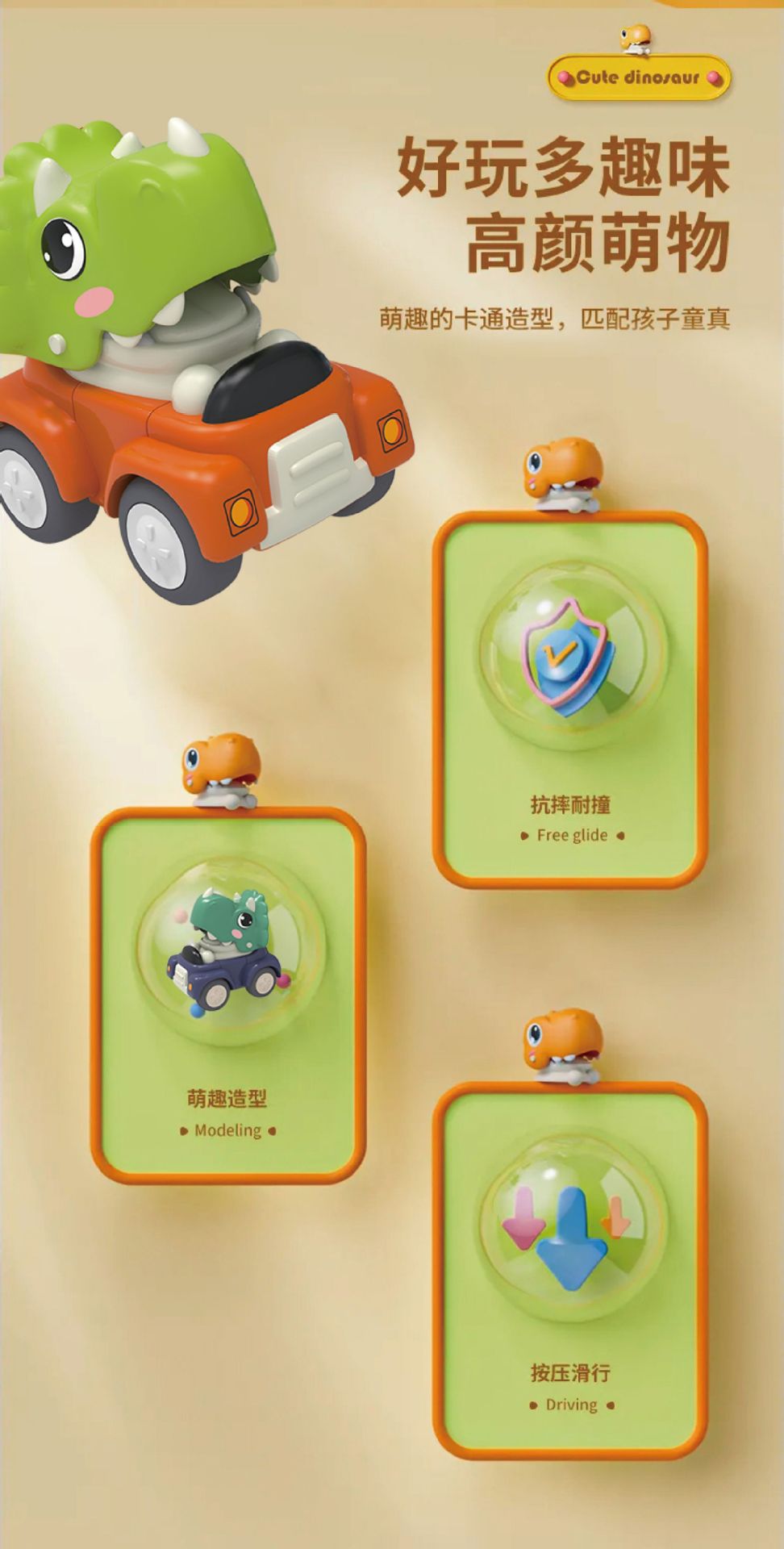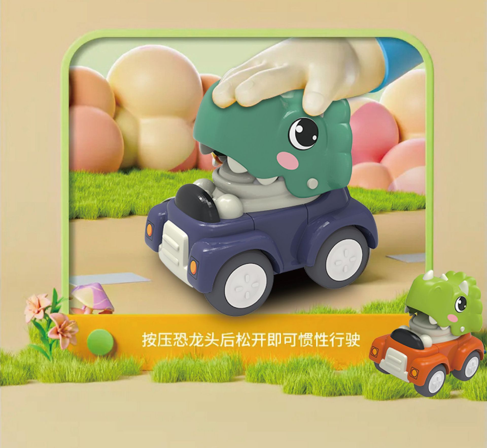 만화 프레스형 공룡 장난감, 해외 인기 어린이 리코일 장난감 자동차, 남자아이들을 위한 도매 공장스토어 가기