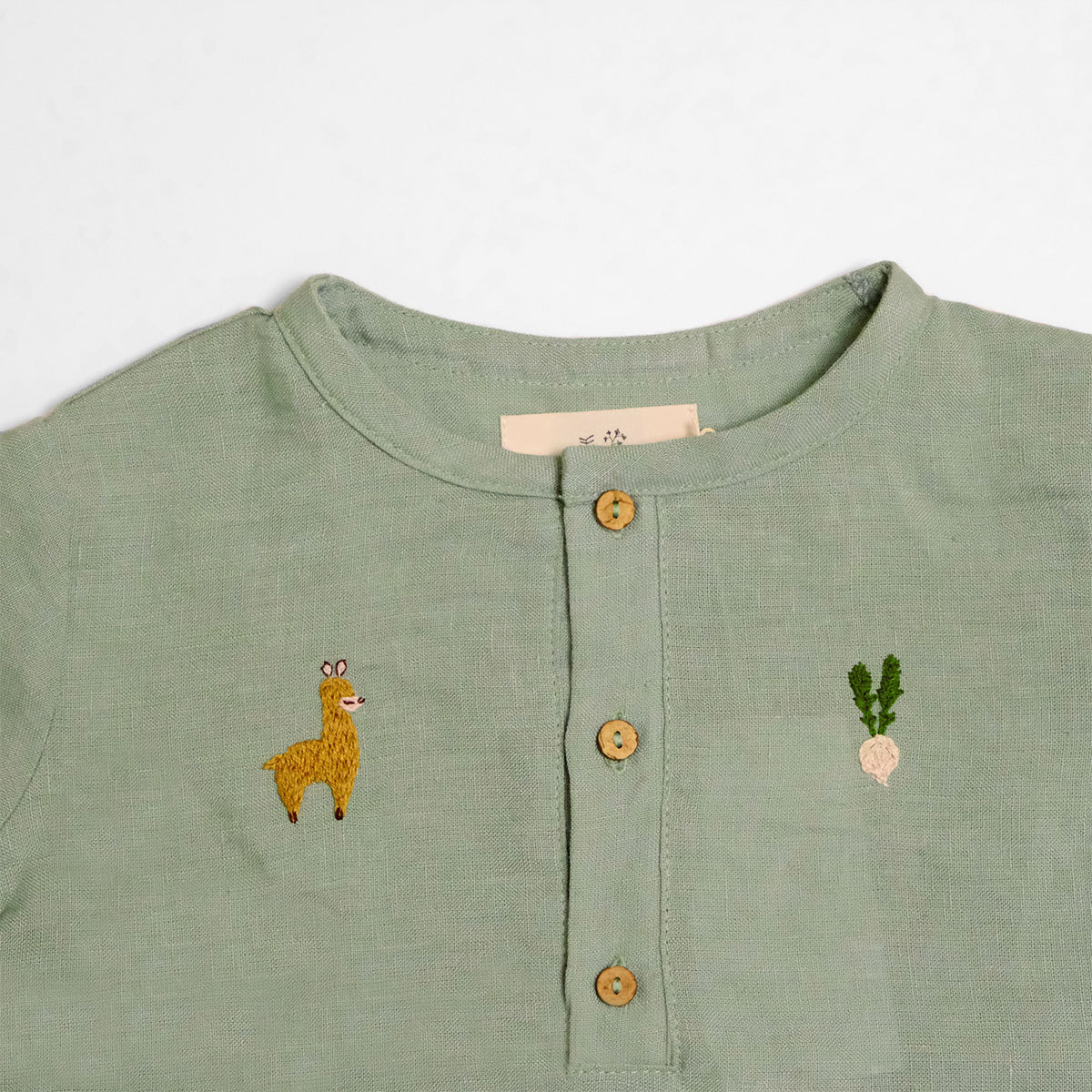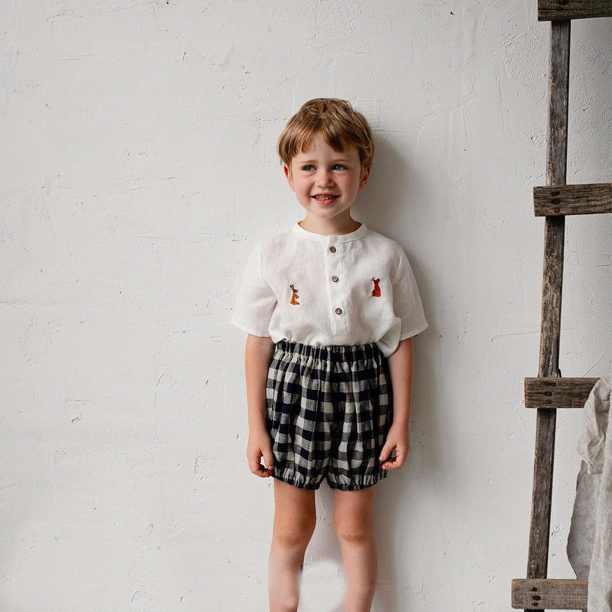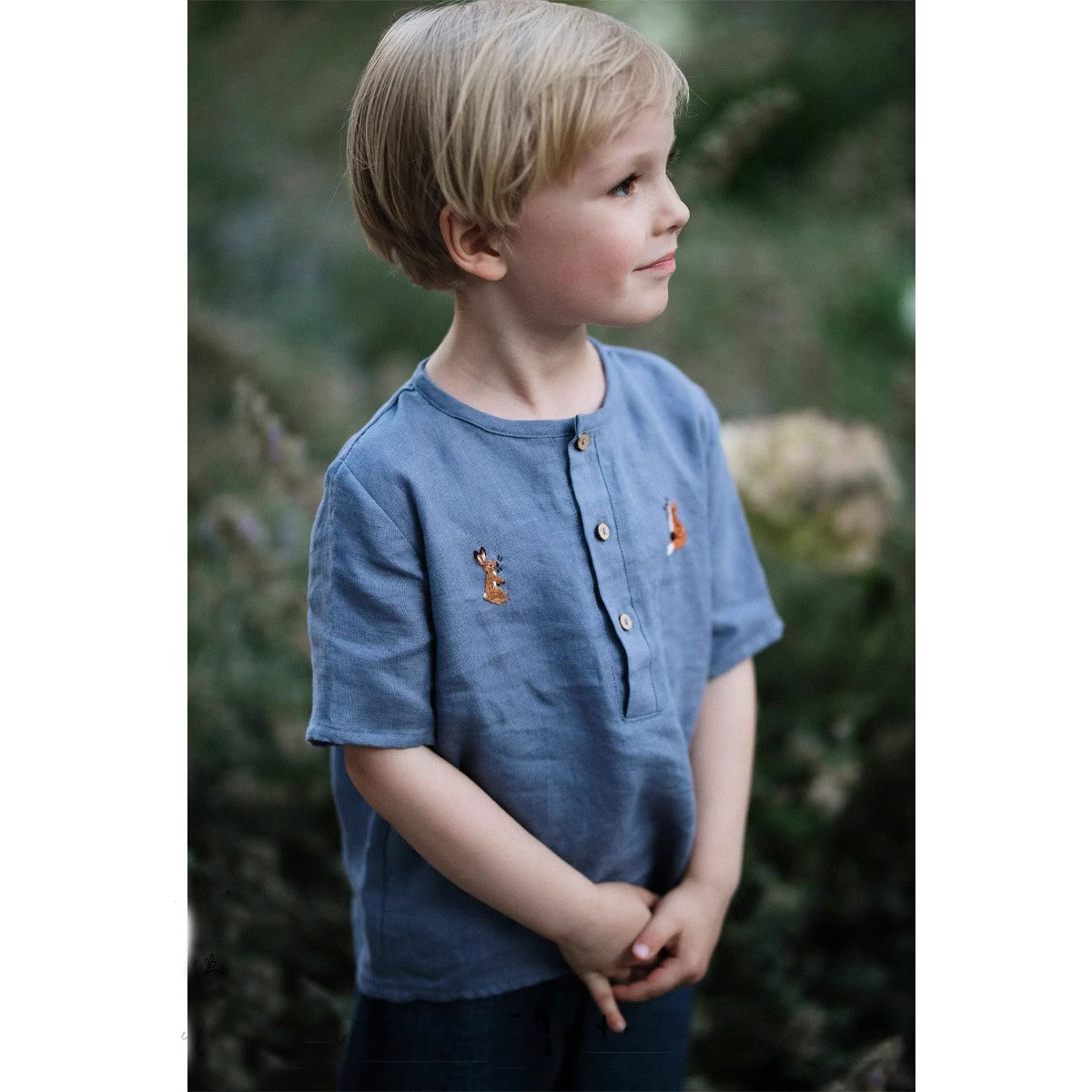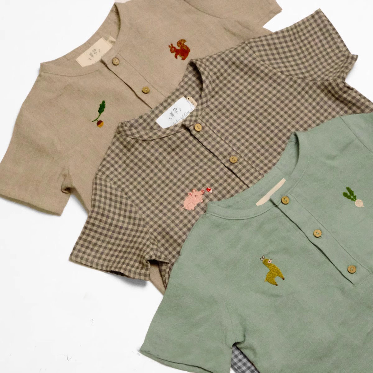 어린이용 면과 린넨 소재의 부드러운 반팔 상의, 피부 친화적인 2026년 북유럽 스타일 봄 여름 남녀 아기 동물 자수 티셔츠스토어 가기